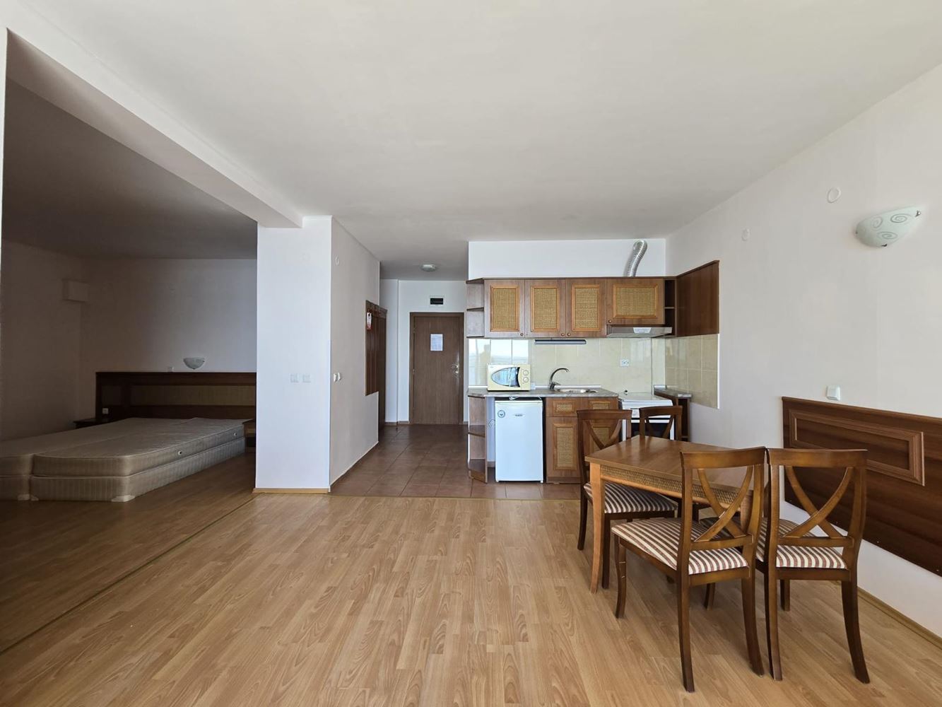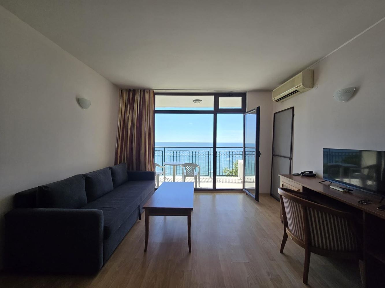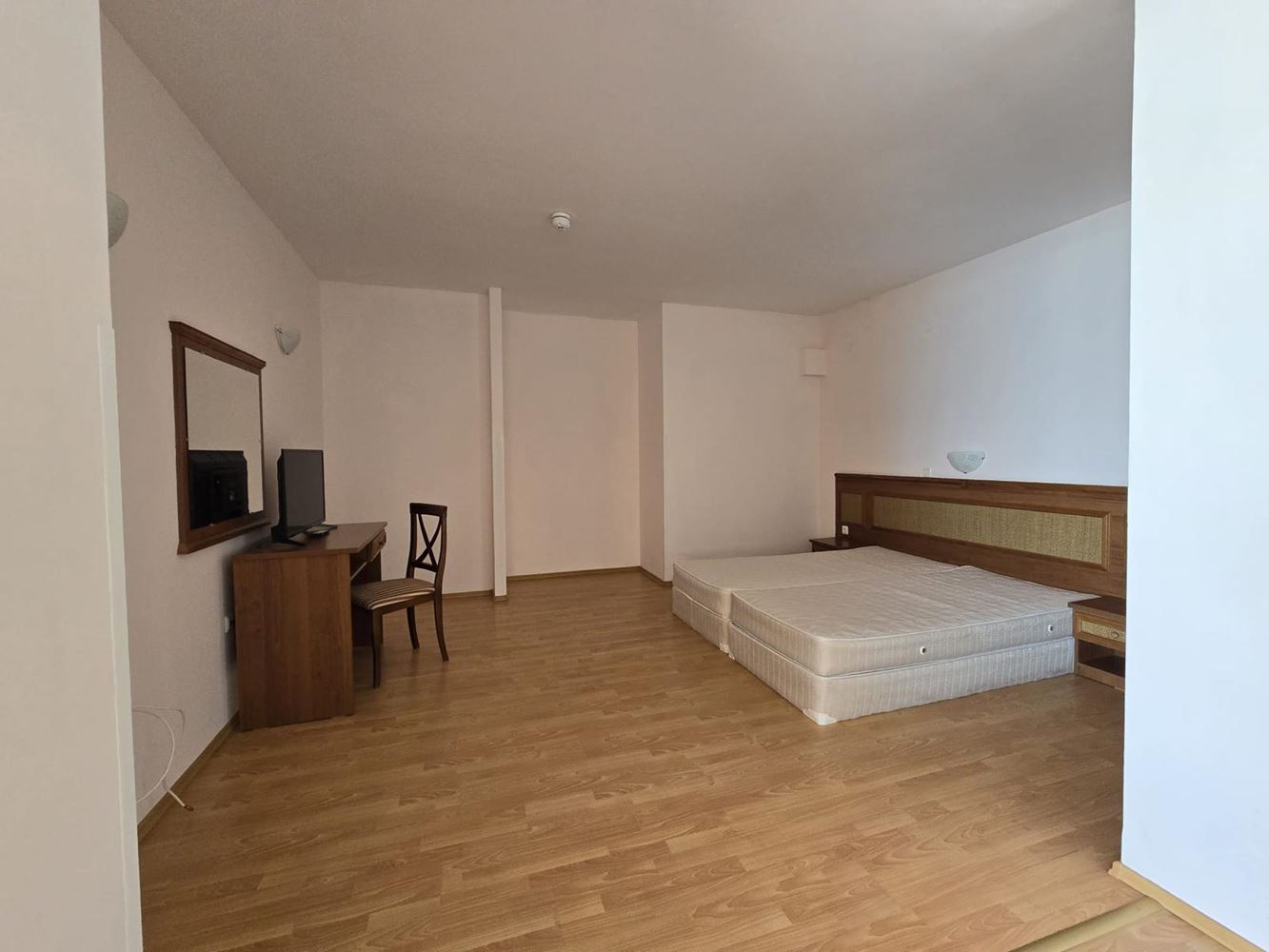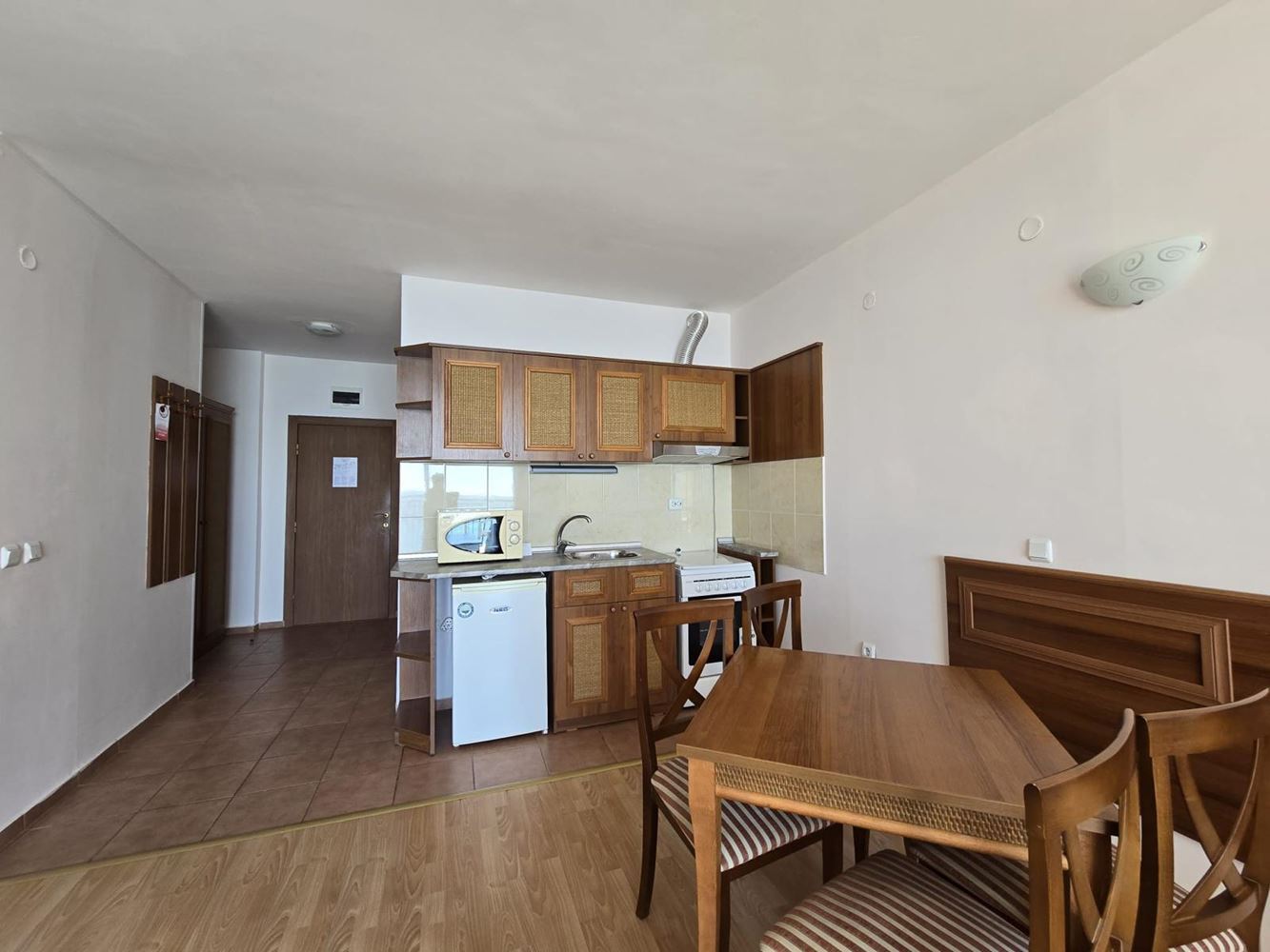 Spacious one bedroom apartment located in a four star aparthotel on the sea front in Sveti Vlas. The apartment is located on the fifth floor and occupies an area of 90 m², which provides space and comfort. Every room offers a stunning sea view that will create an unforgettable holiday atmosphere. The apartment consists of an entrance hall, spacious living room with kitchen, cozy bedroom and bathroom. In addition, there is a panoramic balcony where you can enjoy beautiful views and fresh sea air. The four-star complex is located at the foot of the Balkan Mountains, on Robinson Beach. The incredible combination of sea and mountain and the stylish interior make it a unique place for rest and relaxation. At the disposal of guests and residents is the reception, where safes are located and where you can store your valuables. The complex has a mini-market where you can stock up on various treats, drinks, cosmetics and basic supplies. There is secure parking for cars.