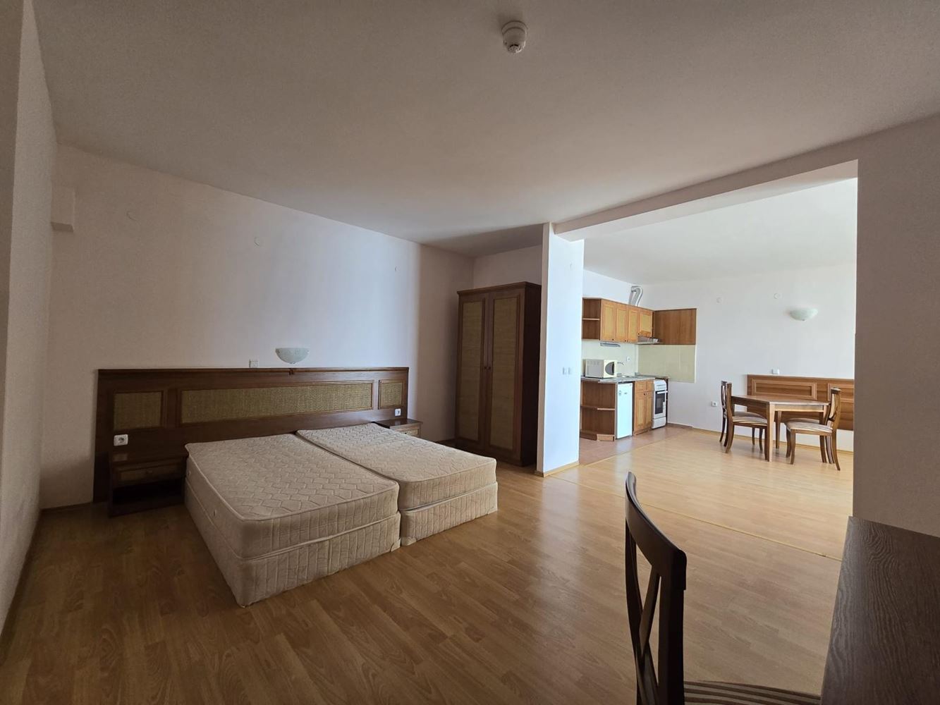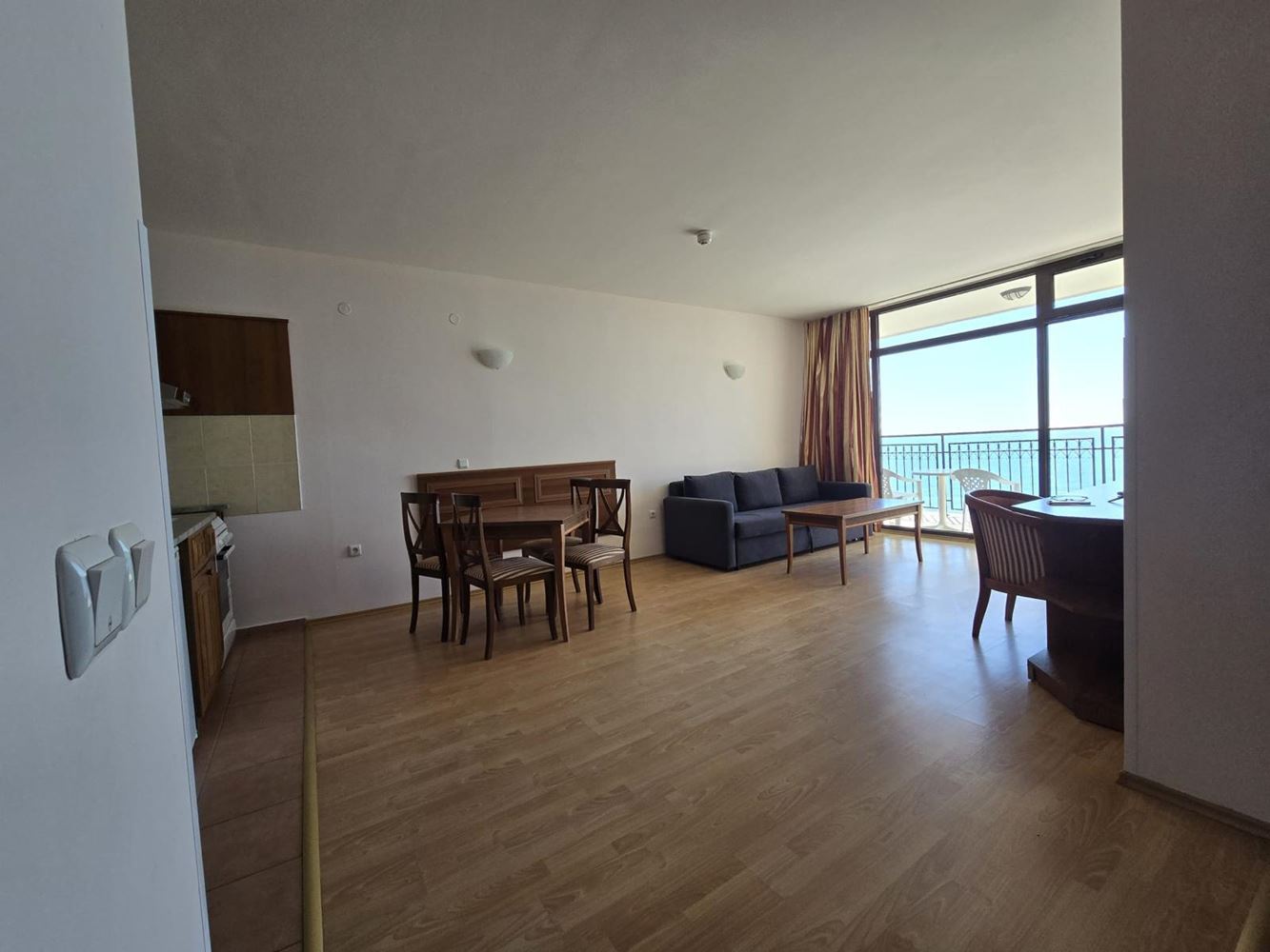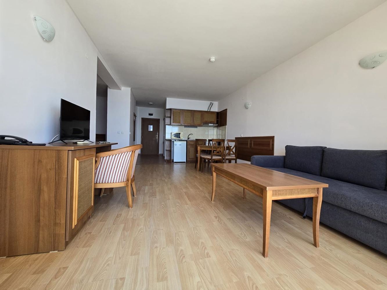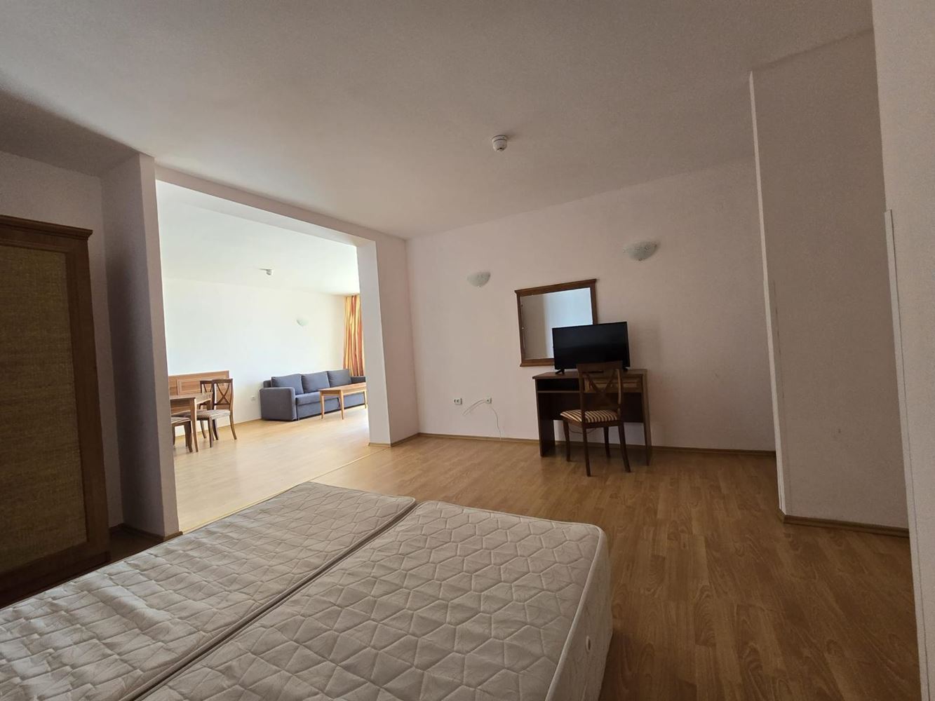 Spacious one bedroom apartment located in a four star aparthotel on the sea front in Sveti Vlas. The apartment is located on the fifth floor and occupies an area of 90 m², which provides space and comfort. Every room offers a stunning sea view that will create an unforgettable holiday atmosphere. The apartment consists of an entrance hall, spacious living room with kitchen, cozy bedroom and bathroom. In addition, there is a panoramic balcony where you can enjoy beautiful views and fresh sea air. The four-star complex is located at the foot of the Balkan Mountains, on Robinson Beach. The incredible combination of sea and mountain and the stylish interior make it a unique place for rest and relaxation. At the disposal of guests and residents is the reception, where safes are located and where you can store your valuables. The complex has a mini-market where you can stock up on various treats, drinks, cosmetics and basic supplies. There is secure parking for cars.