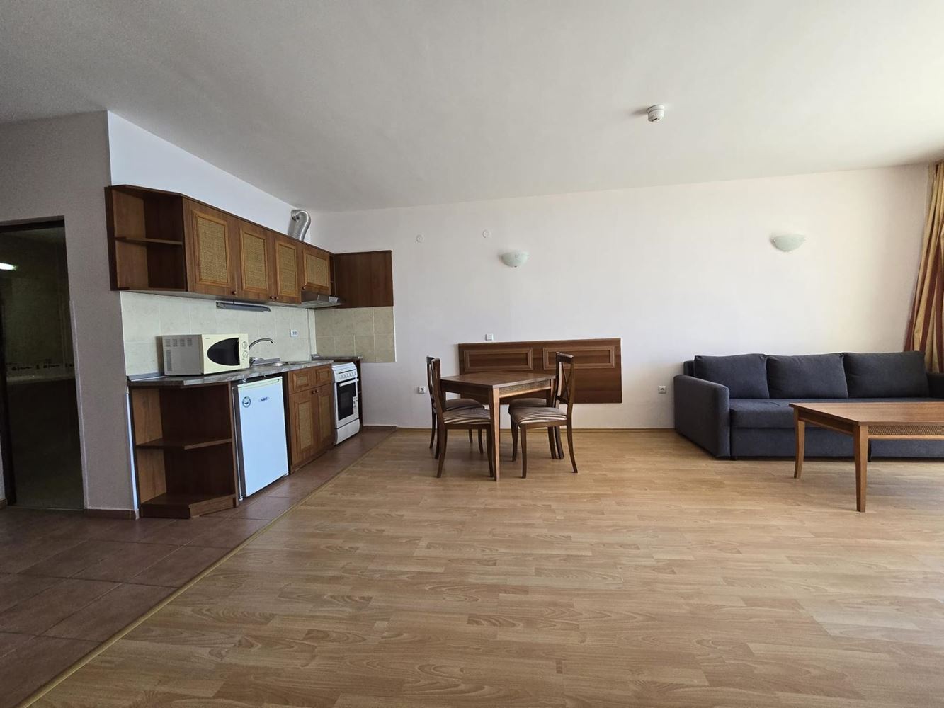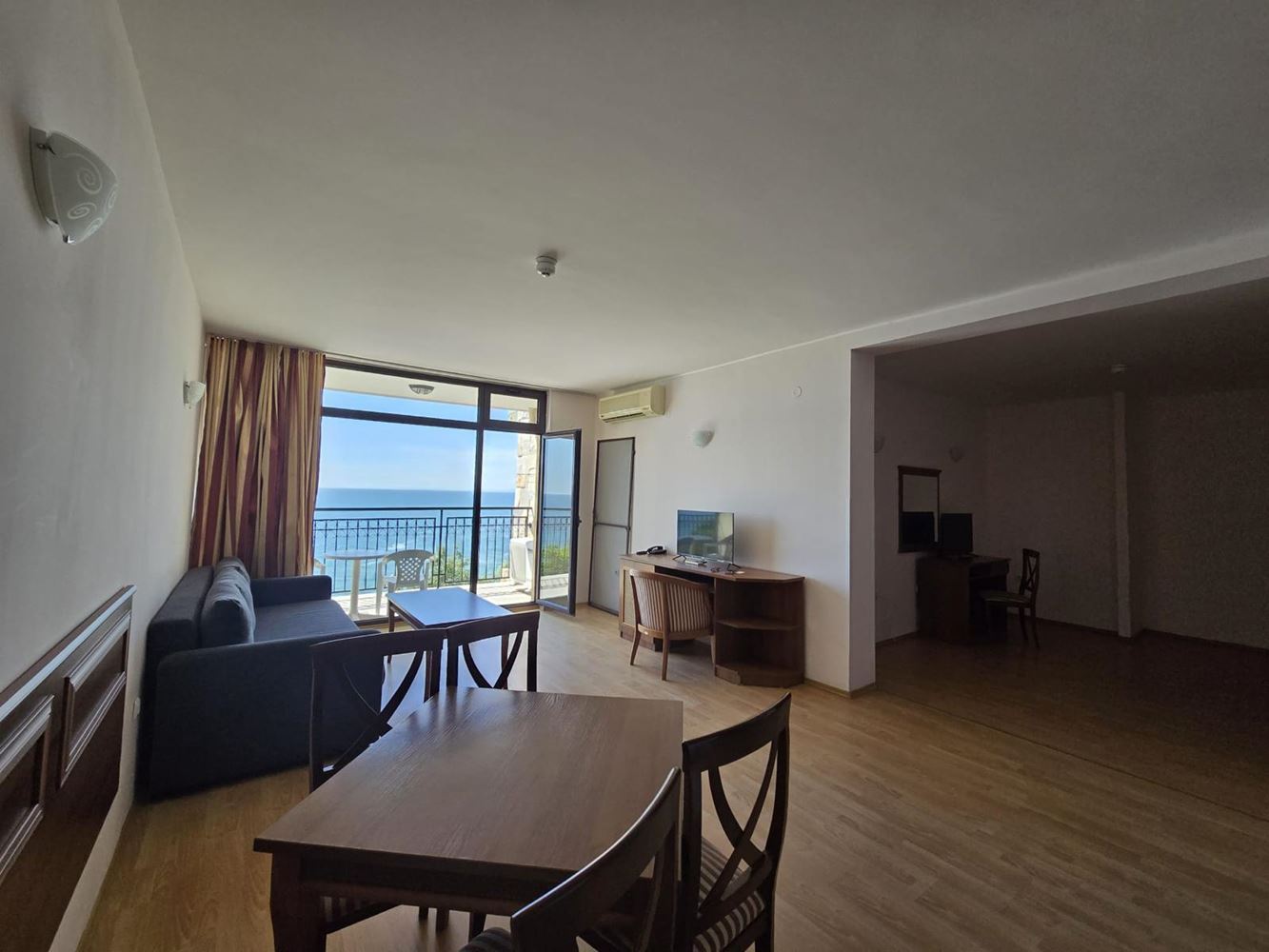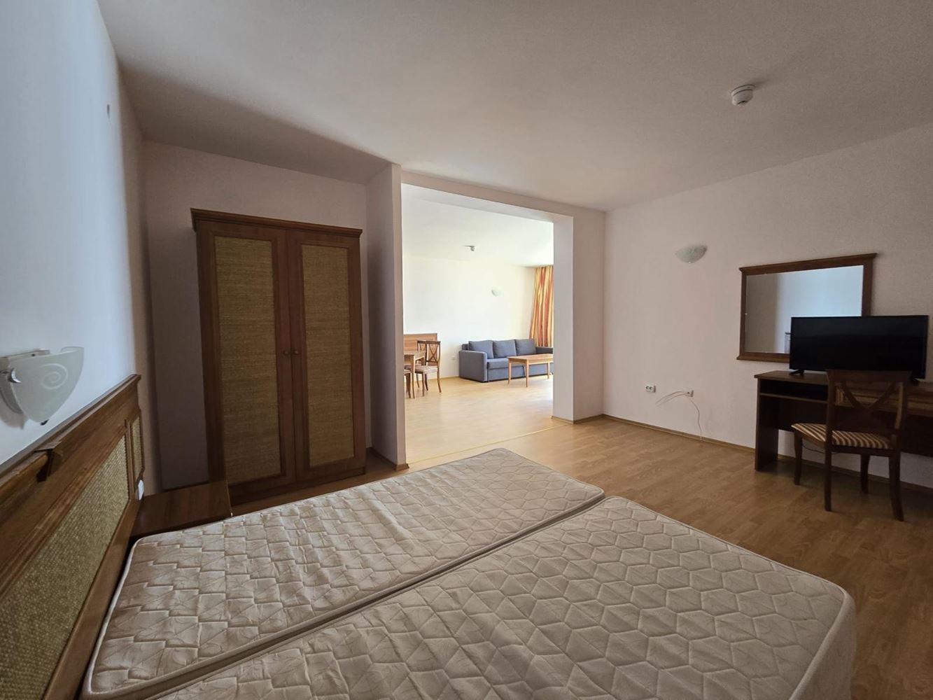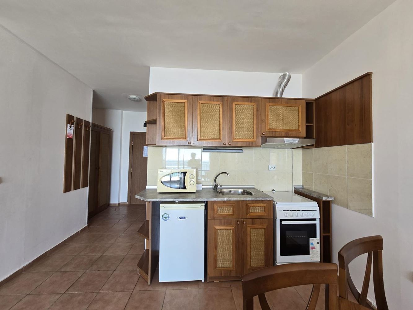 Spacious one bedroom apartment located in a four star aparthotel on the sea front in Sveti Vlas. The apartment is located on the fifth floor and occupies an area of 90 m², which provides space and comfort. Every room offers a stunning sea view that will create an unforgettable holiday atmosphere. The apartment consists of an entrance hall, spacious living room with kitchen, cozy bedroom and bathroom. In addition, there is a panoramic balcony where you can enjoy beautiful views and fresh sea air. The four-star complex is located at the foot of the Balkan Mountains, on Robinson Beach. The incredible combination of sea and mountain and the stylish interior make it a unique place for rest and relaxation. At the disposal of guests and residents is the reception, where safes are located and where you can store your valuables. The complex has a mini-market where you can stock up on various treats, drinks, cosmetics and basic supplies. There is secure parking for cars.