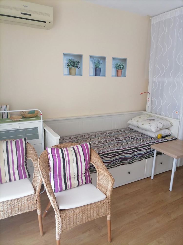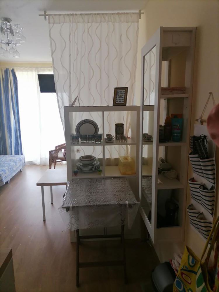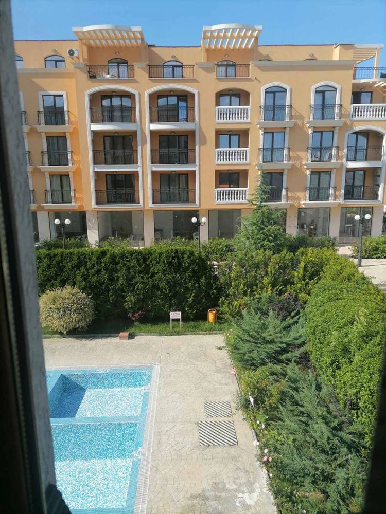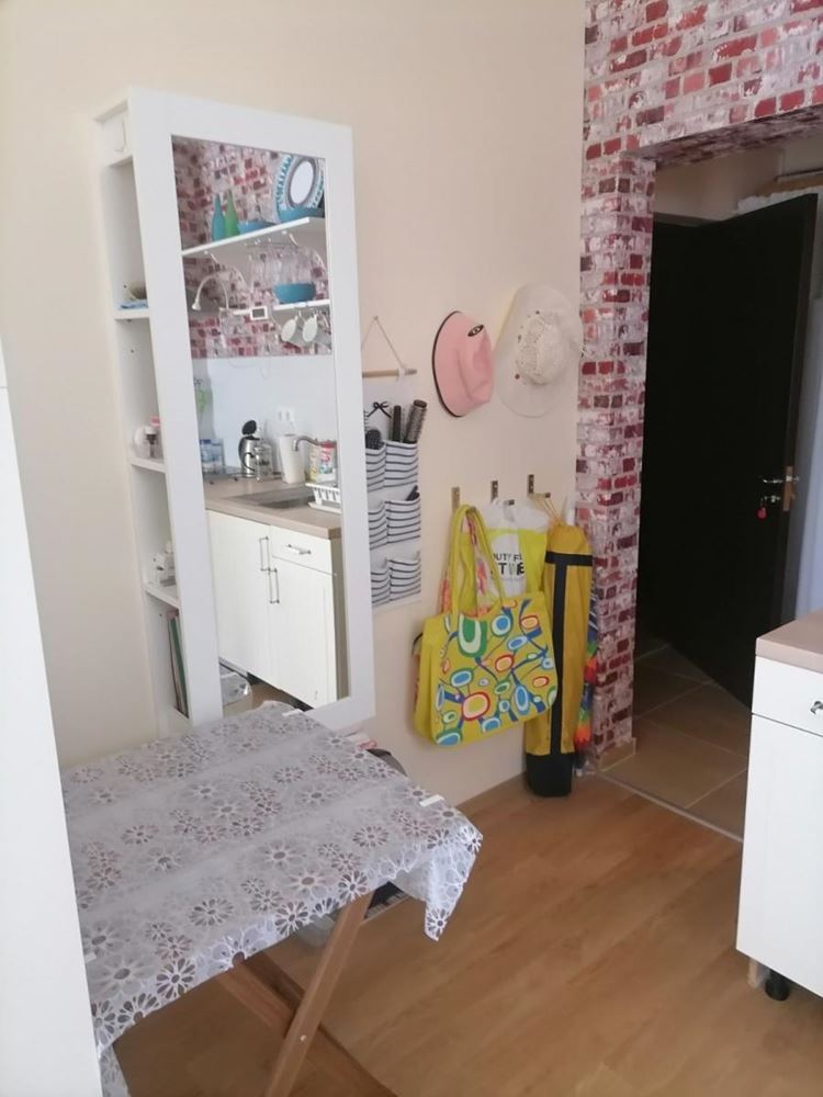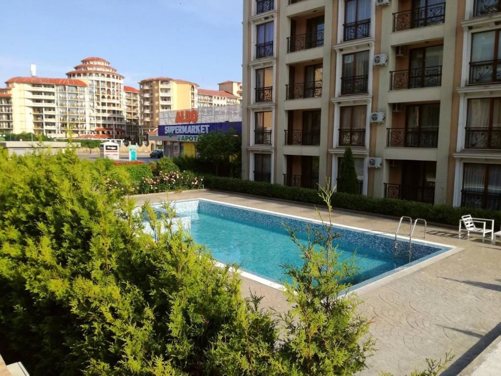 A studio flat in the charming resort of Elenite. The resort is located in a mountain gorge, covered in pine forests and transitioning to a kilometre-long sandy beach - all of which creates a unique climate, a unique combination of sea and mountain air currents. This is the southern coast, protected from cold winds and currents by the Balkan mountain range. Complex is on the second line of the beach, just 200 m away from the magnificent sandy beach, it takes five minutes walk along a pathway with blossoming roses. The flat of 37 m2 consists of living room with kitchen area and relaxation area, bathroom, hallway and balcony. It is equipped with everything you need.