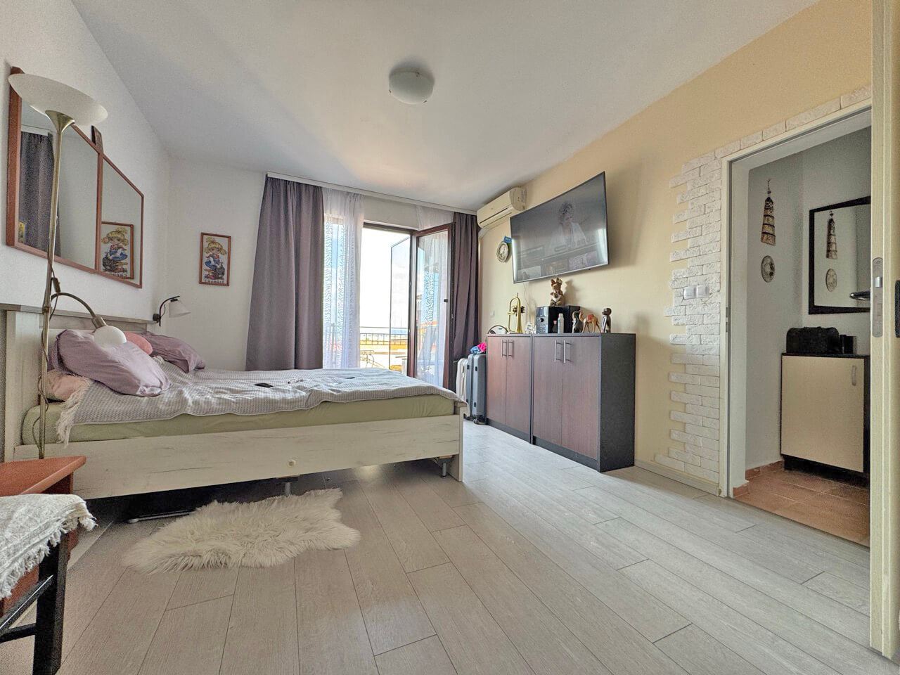 We present to you for sale a lovely studio located in the picturesque seaside town of Aheloy. With a total area of 42 m2, this property is ideal for both permanent living and seasonal holidays. The studio offers a functional layout with one spacious room that provides ample space for a comfortable living and sleeping area. It has a balcony that offers a magnificent view of the complex's swimming pool, an ideal spot for your morning coffee or evening relaxation in the fresh air. The bathroom is stylishly furnished and fully equipped.