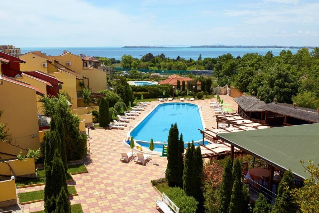 This beautiful one bedroom apartament with separate entrance, located in a picturesque complex in Sveti Vlas, provides the perfect combination of comfort and stunning views of the sea, park and Sunny Beach. With a total area of 75 m2 the apartament is wonderfully planned to provide convenience and functionality. The living room with fitted kitchen creates a spacious and open space, ideal for family gatherings and get-togethers with friends. The split bedroom provides a private and cosy place to relax. The bathroom is equipped with all the necessary amenities. The balcony offers breathtaking views of the sea, the park and Sunny Beach. This place will be the perfect place for morning coffee or evening relaxation while enjoying the beautiful views. The complex provides a variety of facilities including a swimming pool to refresh yourself on warm days, parking for the convenience of the owners, and a reception desk to provide additional services and information. Located in St Vlas, the apartament offers a quiet and secluded location while remaining close enough to the main resort sites and entertainment. This is the ideal accommodation for those looking for cosiness, beautiful views and modern amenities in a picturesque corner of Bulgaria.