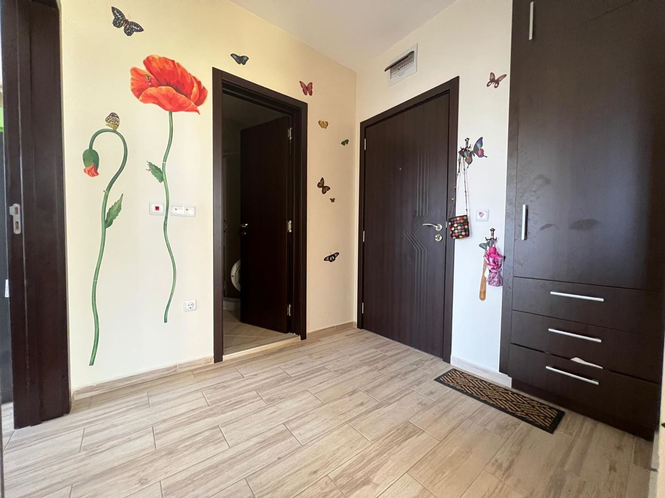 Cozy two-bedroom apartment in a luxury apartment complex located in the centre of Sunny Beach, 400 metres from the central beach. Nice flat with a total area of 70 m2 is located on the fifth residential floor. The building is equipped with a lift. The flat is sold furnished and equipped. The flat has an entrance hall, a living room with kitchenette and sitting area, two bedrooms, a bathroom with toilet, a balcony with a pleasant view of the city. The dwelling is ideal for permanent living or for summer vacations. The interior and exterior finish is tasteful and high quality. The comfort of living is also determined by the internal infrastructure elements and the landscaping and landscaping make a very pleasant impression. There are swimming pools, seating areas, benches and swings, decorative street lights, play and sports complexes, manicured lawns and walkways, palm trees and beautiful flower beds.