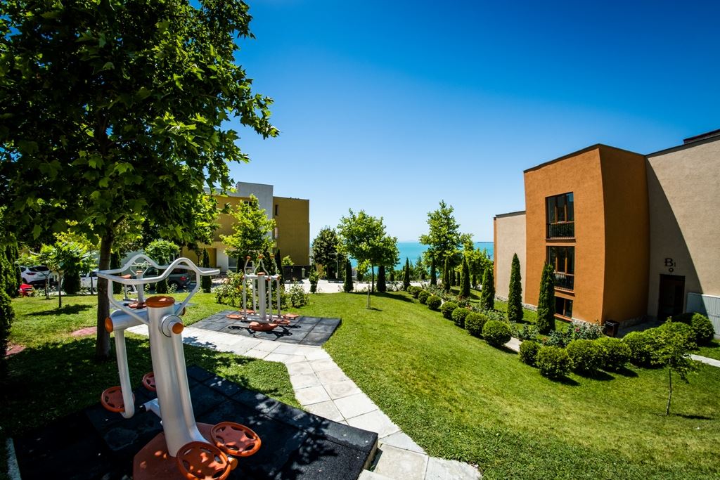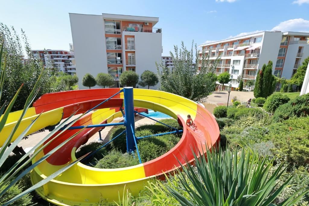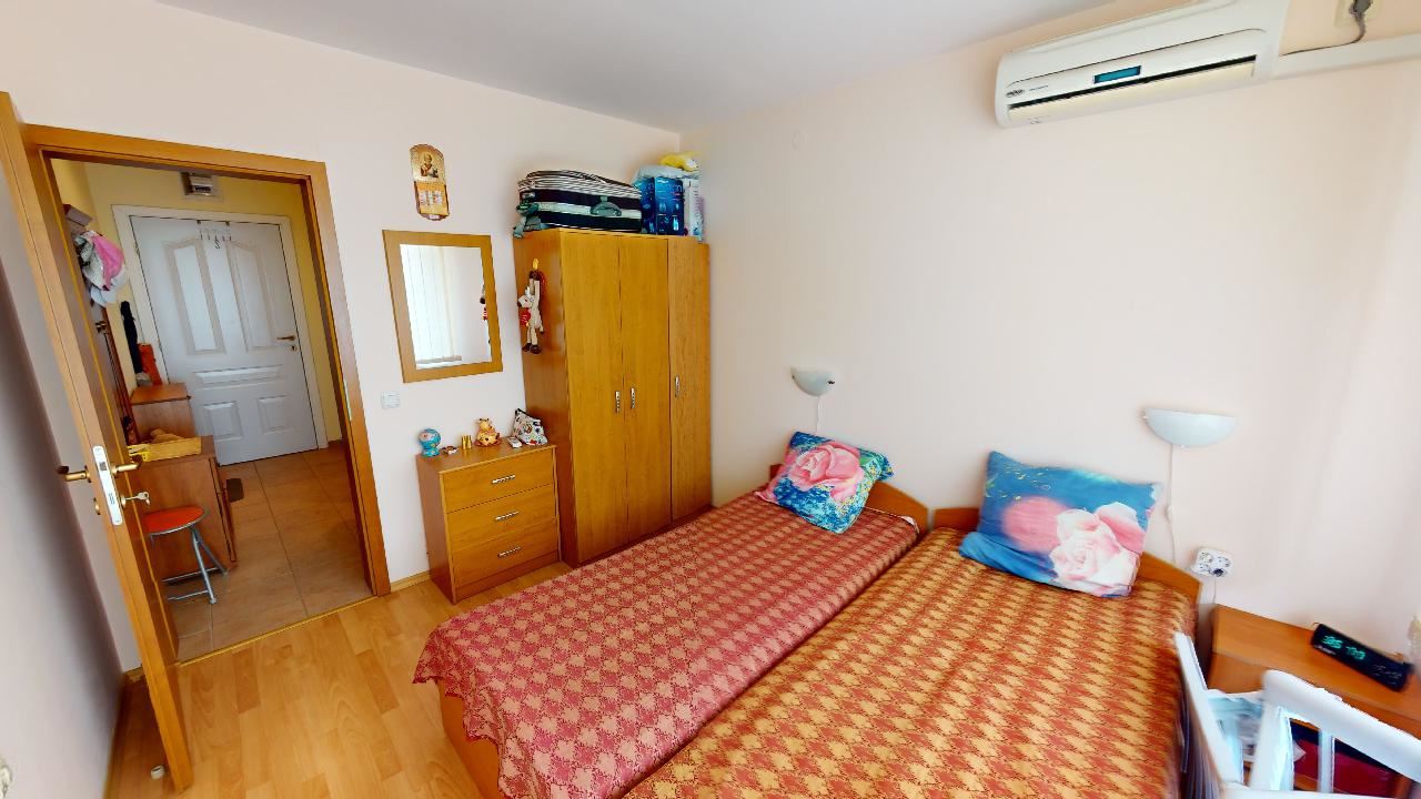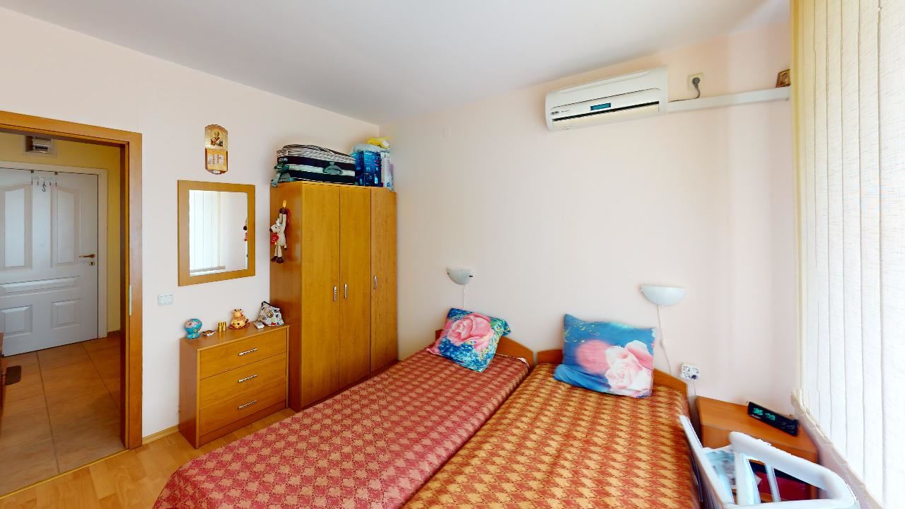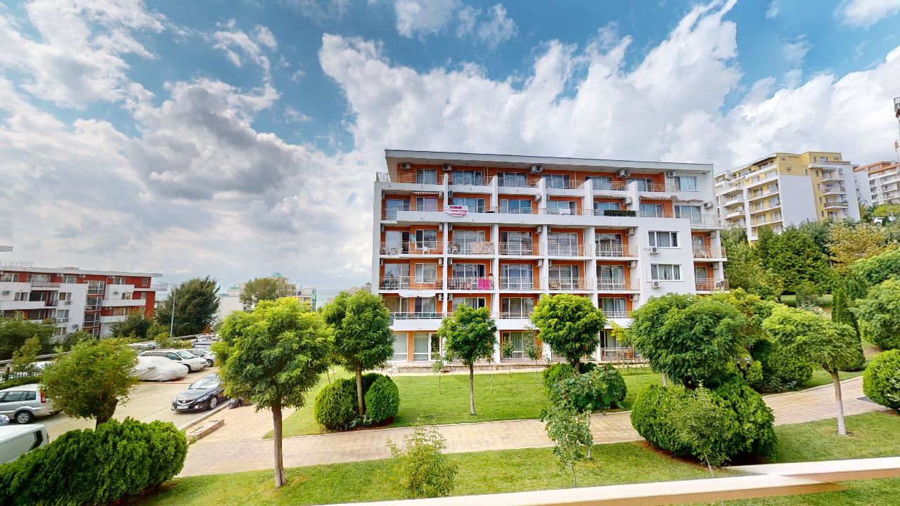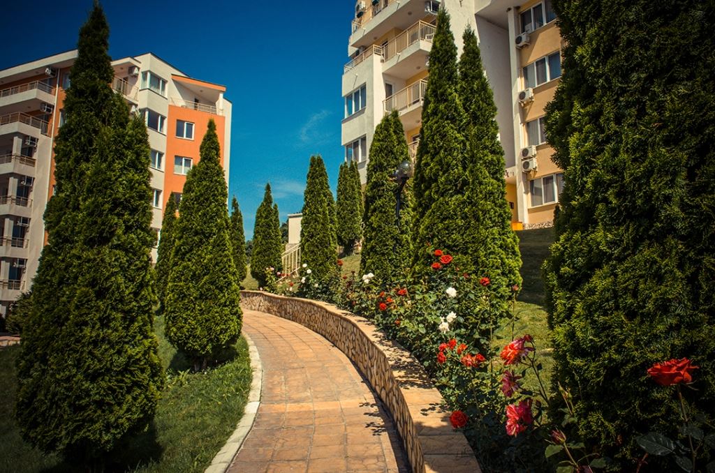 One bedroom apartment in a complex in Sveti Vlas, in one of the quiet and clean areas of the Bulgarian coast, is an excellent offer for those who are looking for accommodation in a resort with rich infrastructure. Sveti Vlas is known for its quietness and proximity to nature, which makes it attractive for people who appreciate a quiet lifestyle. At the same time, the proximity to the sea, only five minutes on foot, makes this place ideal for beach lovers. The complex offers a rich set of amenities, including swimming pools, water slides, playgrounds, restaurants, grocery stores, SPA-salon, mini golf, tennis court and billiards. This provides a variety of entertainment and amenities for residents. The presence of a private parking lot and a closed territory with constant security provides comfort and security for the residents. The apartment has an area of 68 m2 and is located on the second floor. Beautiful view to the landscaped area and the sea makes it especially attractive. The apartment is sold with all necessary furniture and appliances, which makes it easy to move in and ready to live in.