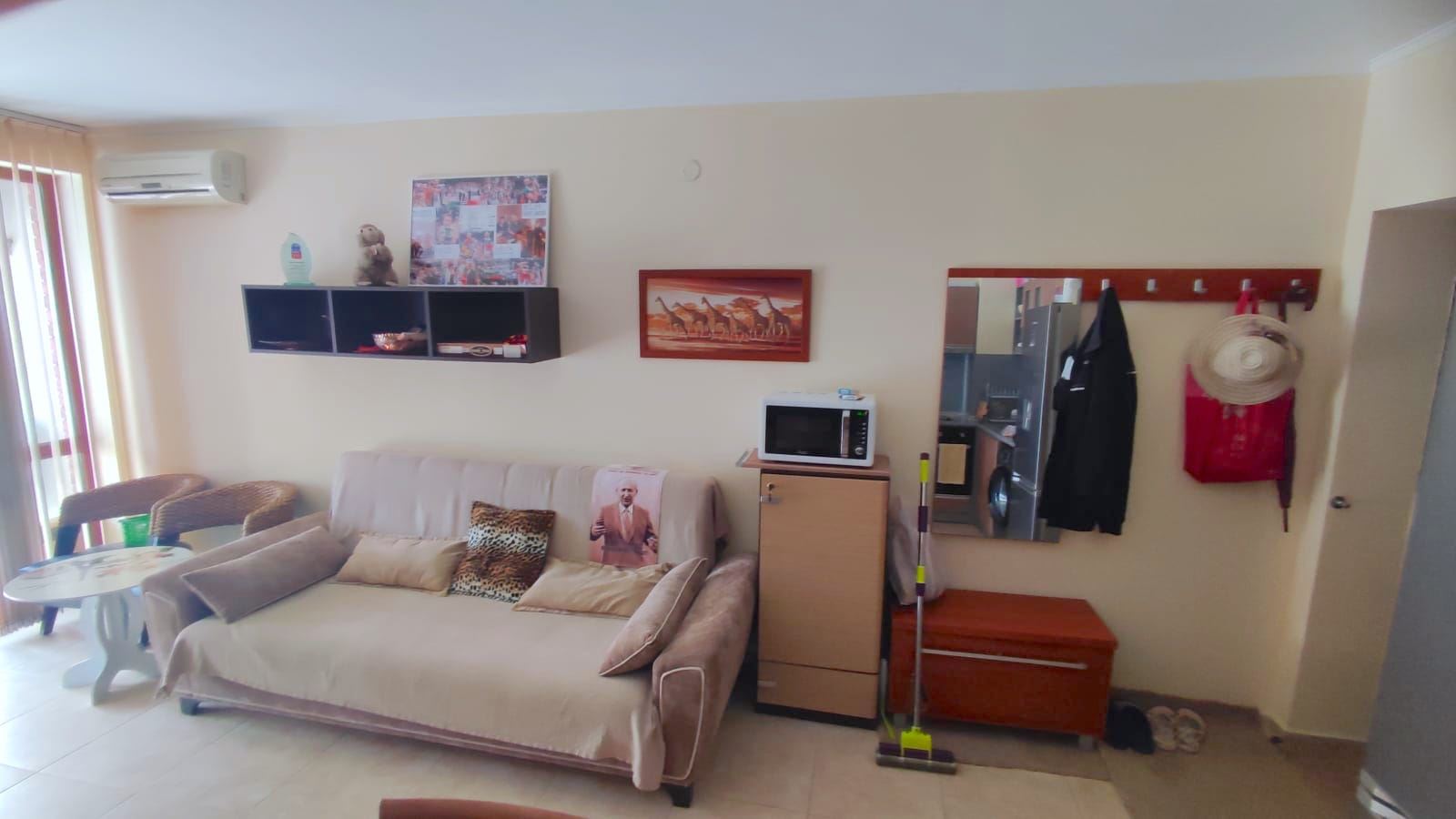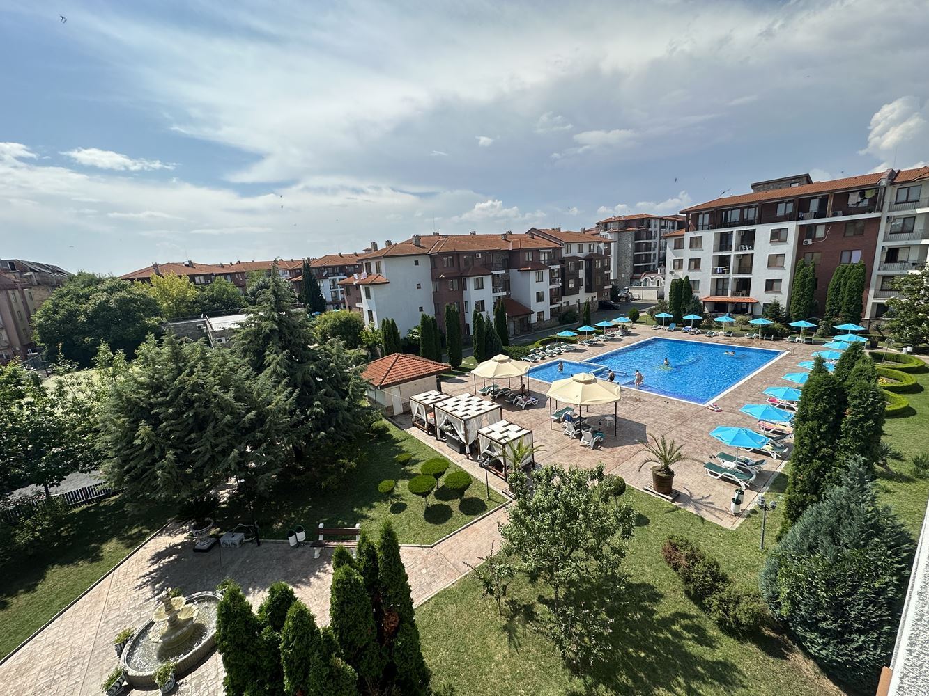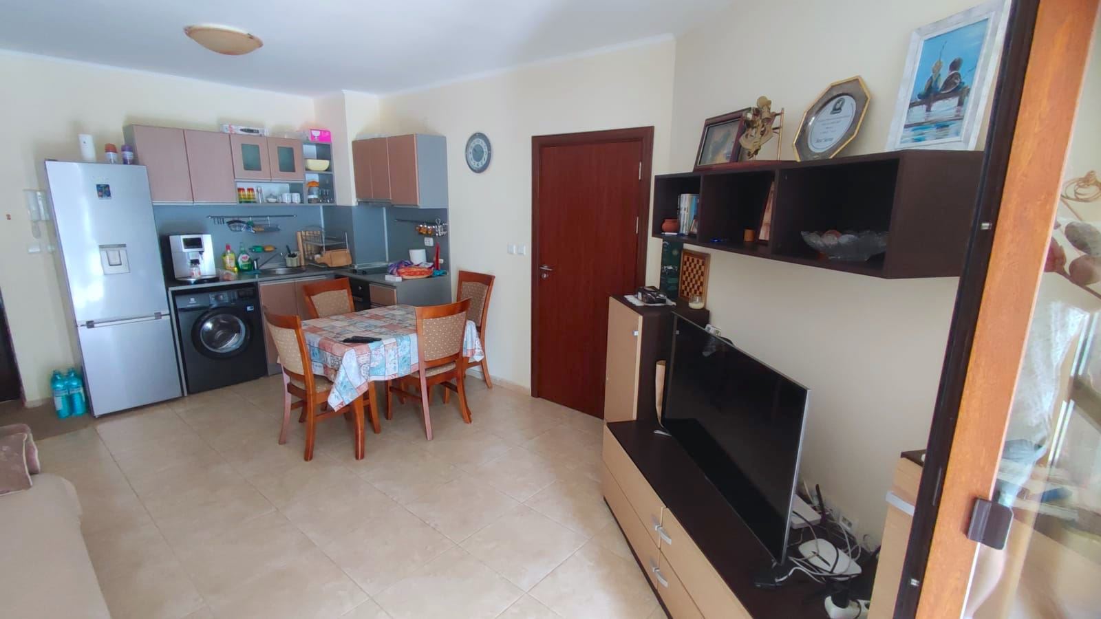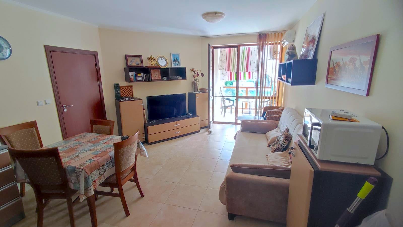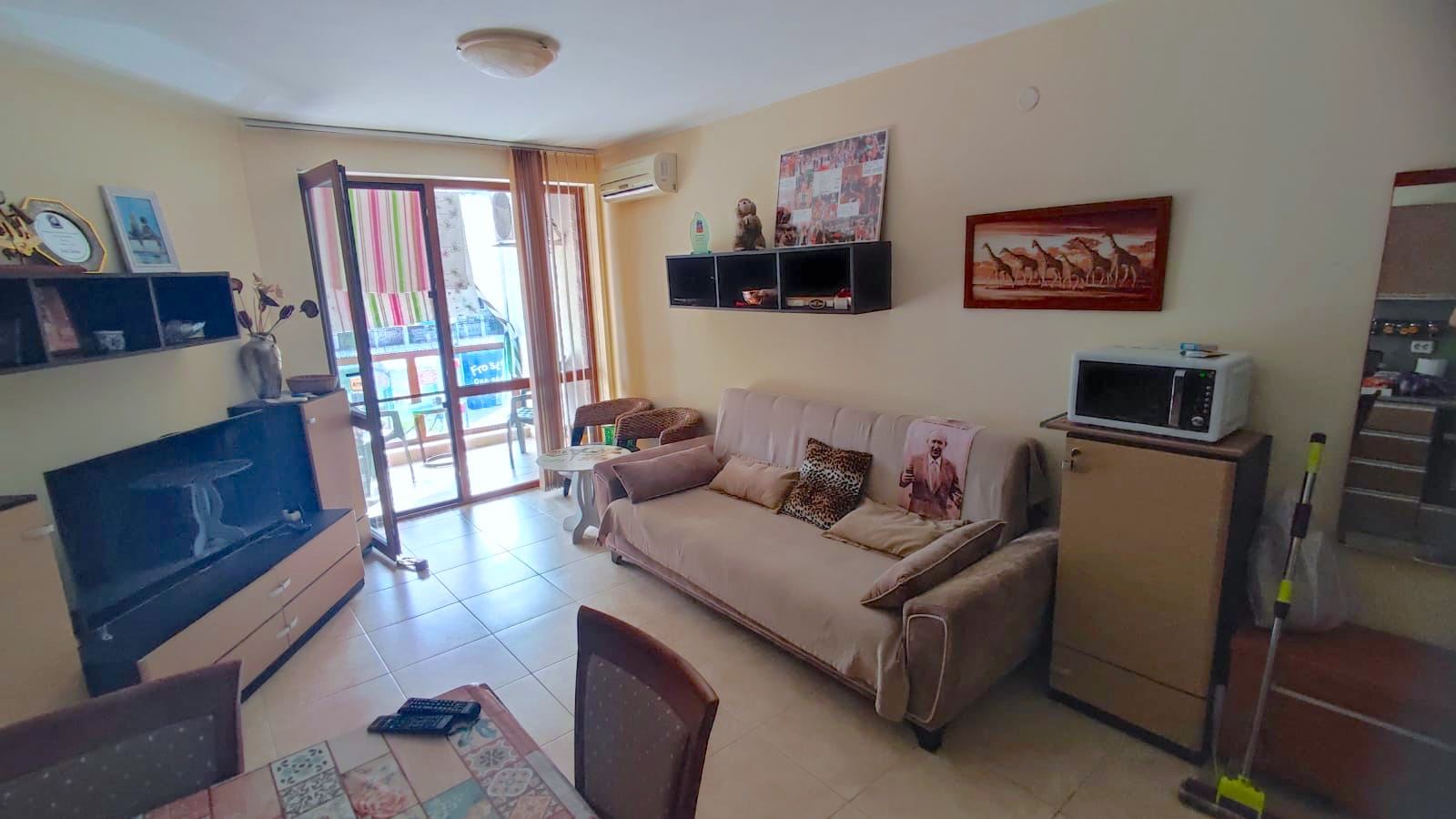 Two bedroom apartment 200 meters from the beach offers a quiet cozy life on the coast. The 80 m2 apartment is located on the second floor and has a comfortable living area where there is ample space for living. Fully furnished and equipped with modern furniture and appliances, making it ready to move in. The apartment is located in a large complex with a closed territory, which is located at the junction of two settlements - the towns of Nessebar and Ravda, in one of the beautiful places of the Black Sea coast. The complex consists of 9 buildings with separate territories and offers its residents a restaurant, cafe, SPA-center, fitness center, stores, seven swimming pools, many children's, playgrounds and sports grounds, well-maintained territory. The presence of a large free parking area is an important plus, especially in the summer season.