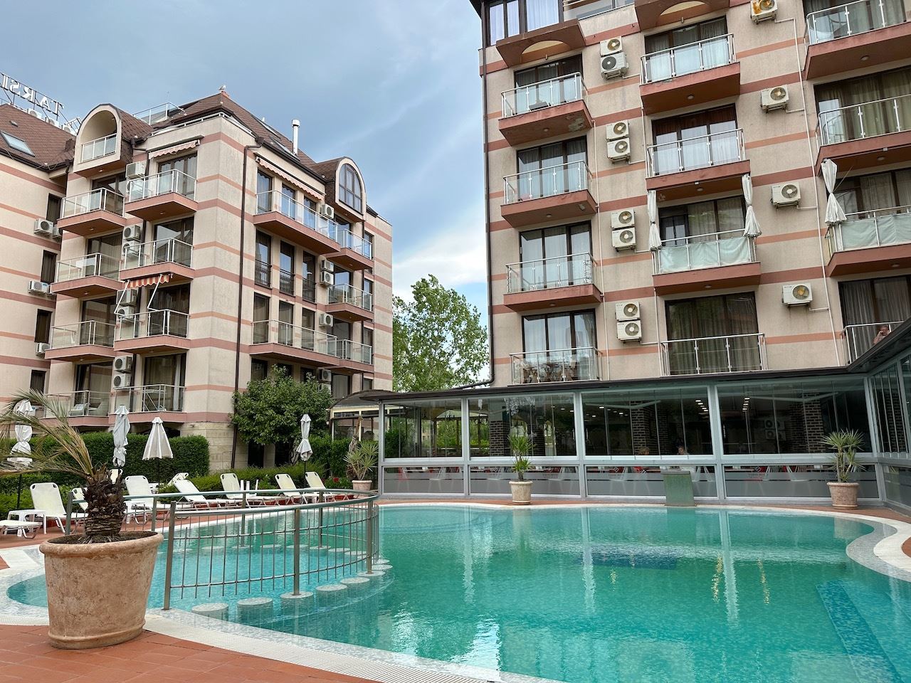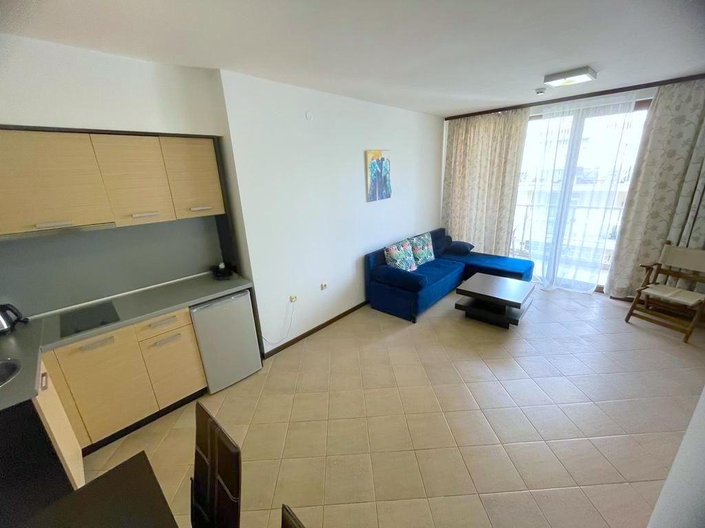 One bedroom apartment in a complex in Sunny Beach resort has many amenities and a unique location in its own park. The complex is located in its own park, which creates a pleasant and green atmosphere for living. The complex has underground parking, swimming pools for both adults and children, a lobby bar in the reception area of the hotel, stores, restaurant, fitness room, laundry with drying and ironing room, as well as a spa center with steam bath, Finnish sauna, Jacuzzi, massage rooms and relaxation rooms. This provides many options for an active and relaxing vacation. The apartment has an area of 67 m2, which provides ample space for comfortable living. It includes an entrance hall, a living room, one bedroom, a bathroom and a terrace. It is sold with furniture and appliances, making it ready to move in.