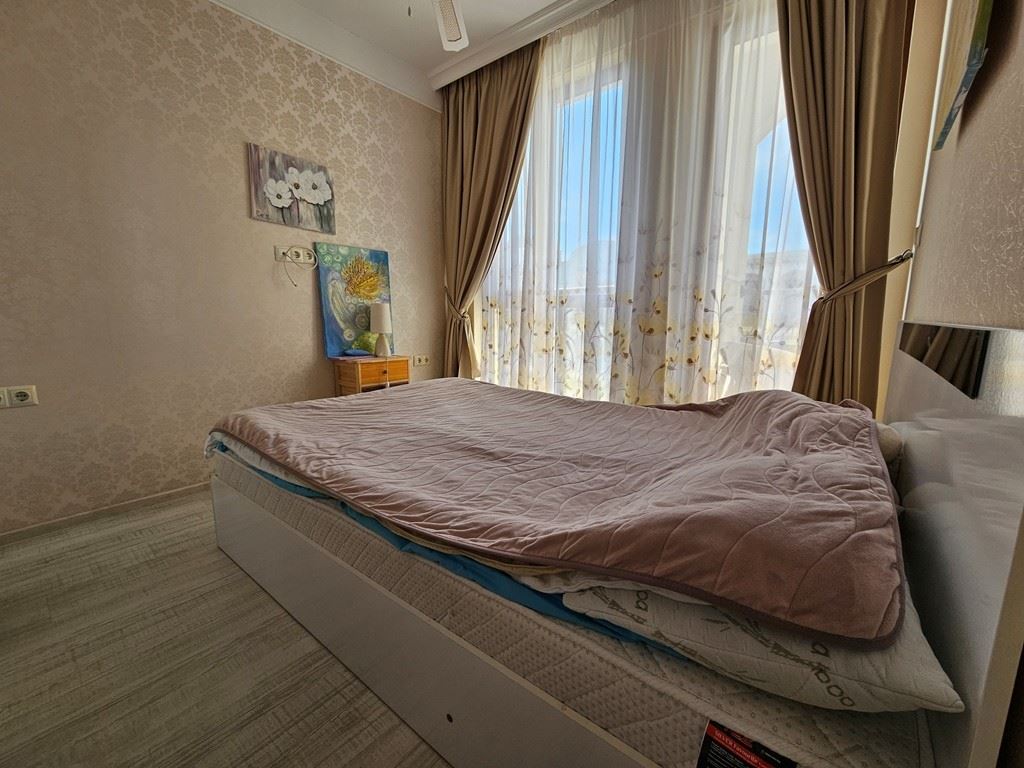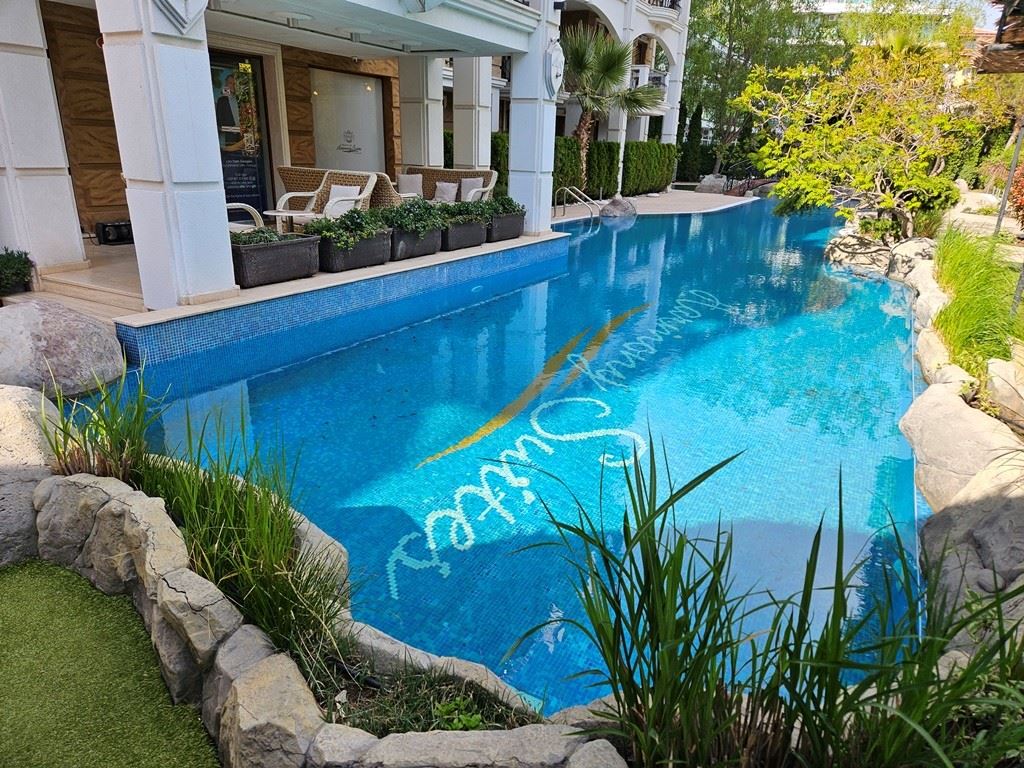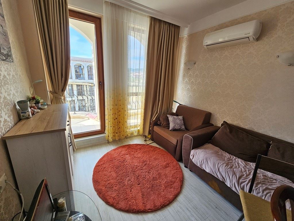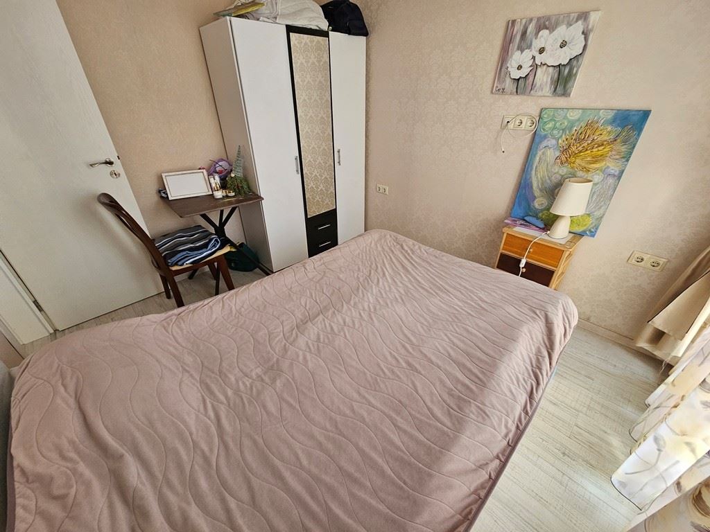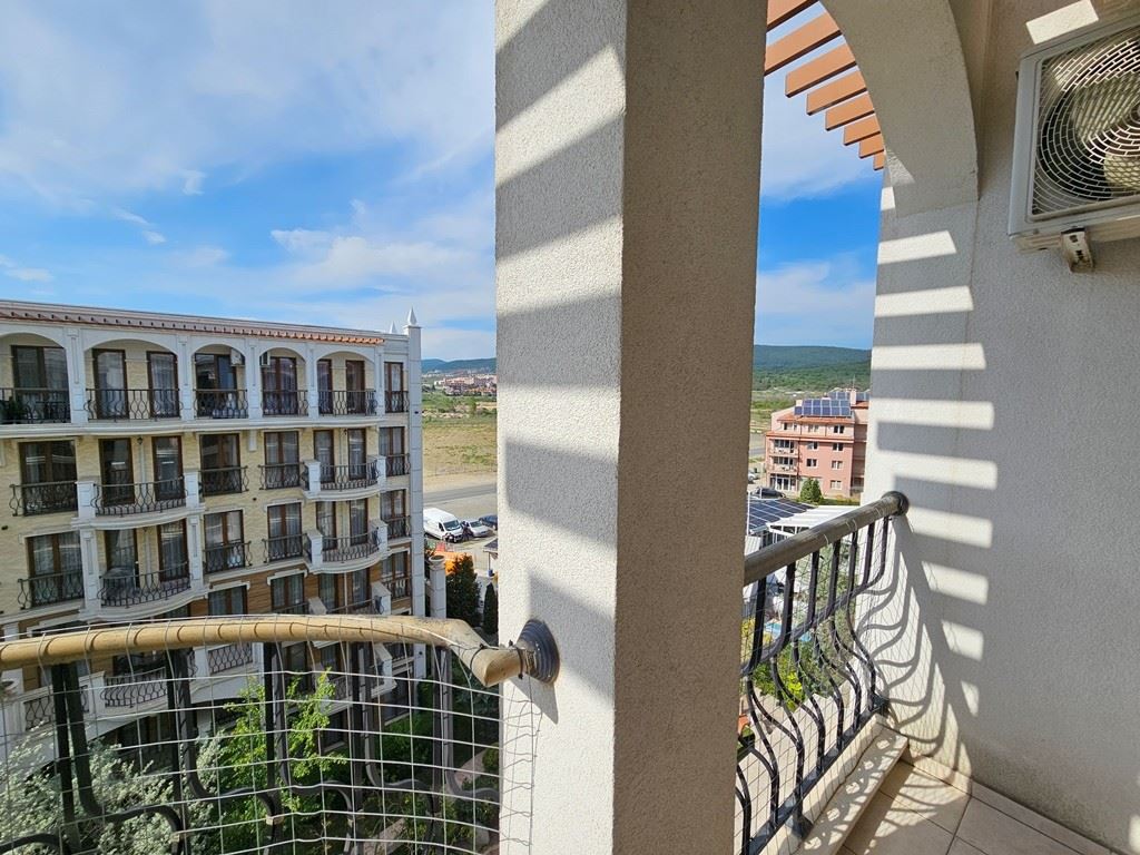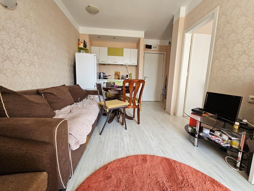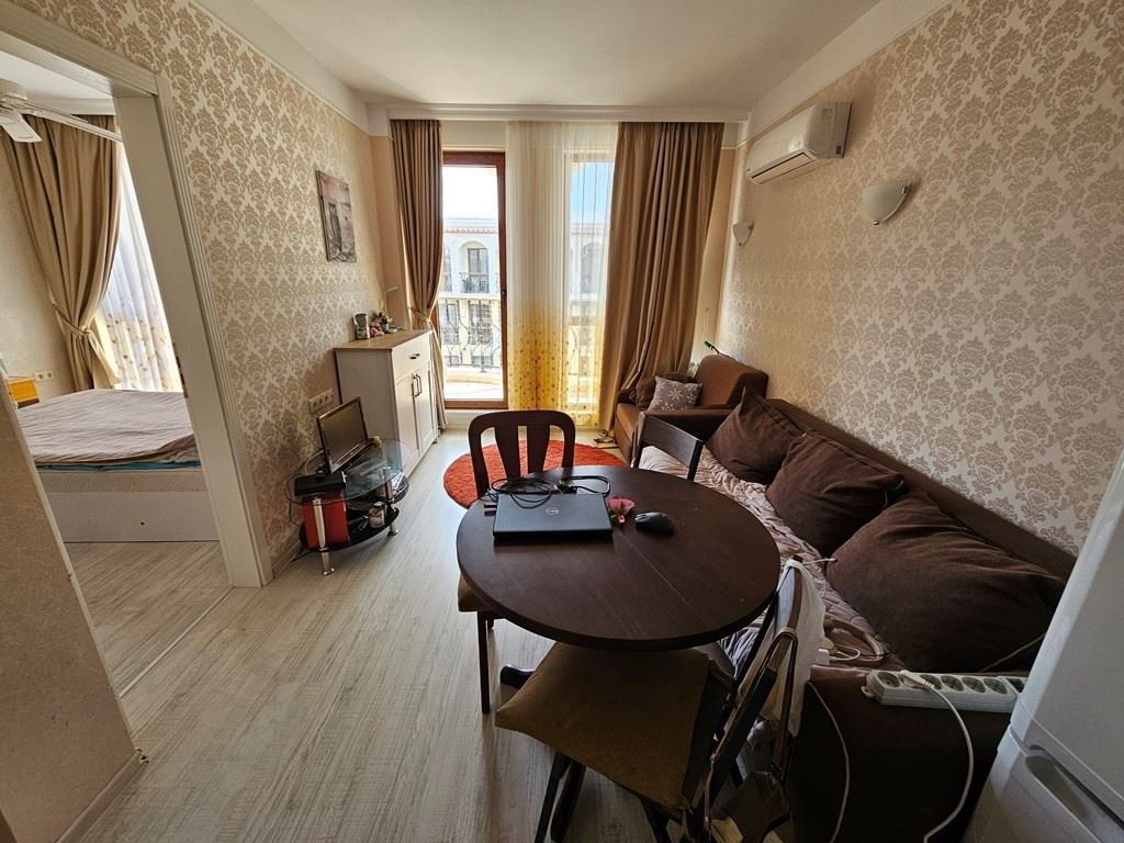 For sale one bedroom apartment in one of the most prestigious complexes in Sunny Beach. This exclusive property extends over an area of 45,50 m2 and is located on the sixth floor, providing stunning views of the elegant pool from its private balcony. The apartment has been designed with a refined aesthetic and is finished to the highest standard, coming fully furnished and equipped, ready for immediate occupation. The spacious living area is modern and creates a cosy atmosphere, combined with the convenience of the en-suite bedroom and functionally organised bathroom.