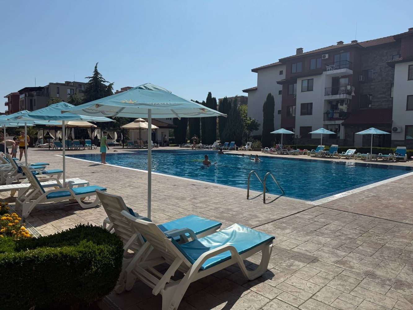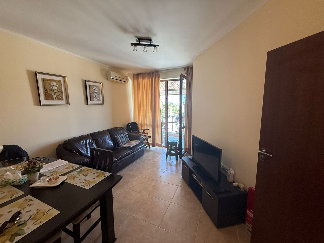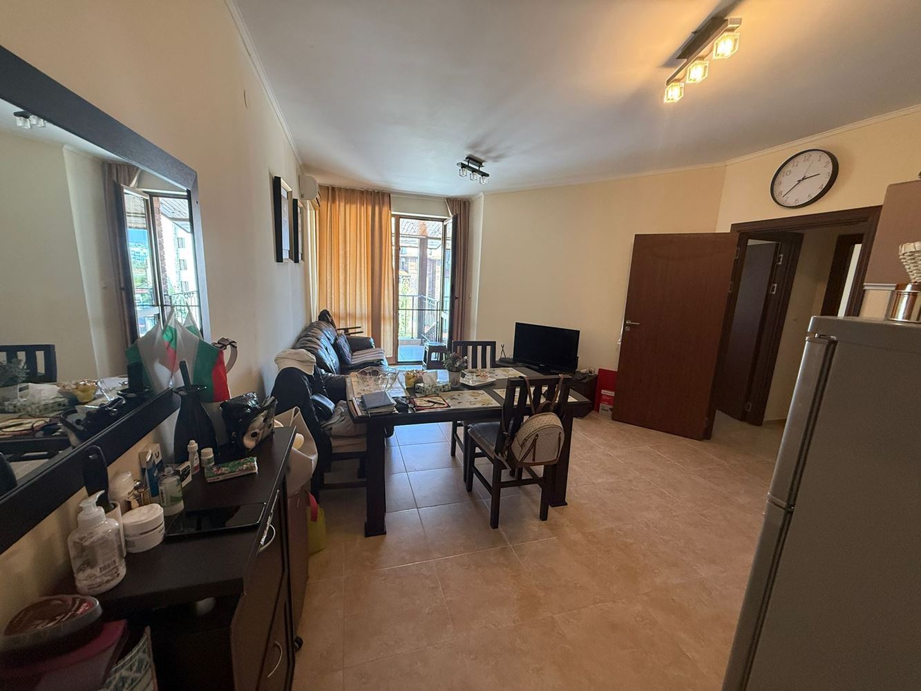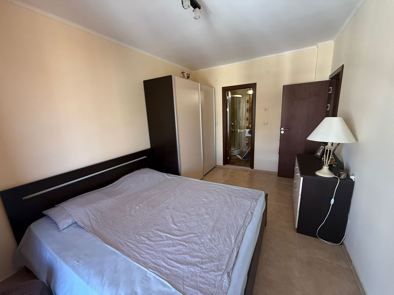 We present to your attention a two-bedroom apartment located in a great complex in a new area of Nessebar. This large and functional apartment is situated on the fifth floor and offers a total area of 77 sq.m. It consists of a spacious living room with kitchen and dining area, two cozy bedrooms, a fully equipped bathroom, and a balcony. The living room with kitchen and dining area is the ideal place for family celebrations, dinners, and gatherings with friends. It is filled with natural light thanks to the large windows and provides easy access to the balcony overlooking the pool.