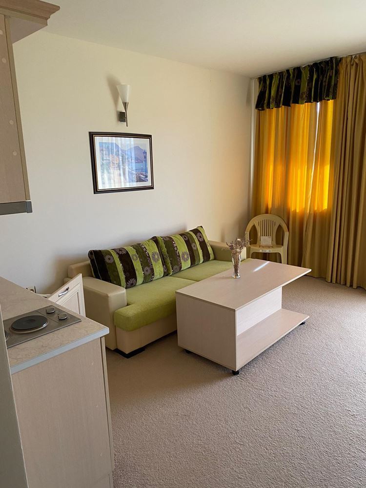 One bedroom apartment in a modern residential complex in the western part of Sunny Beach is the perfect combination of comfort and functionality. Located within walking distance of the resort center, as well as just a five-minute walk to the beach and close to the Nessebar city-museum, this apartment complex will be a great place to live. The apartment itself, located on the sixth floor, has a total area of 67 m2. The interior is furnished in a modern style using quality finishing materials and an emphasis on functionality. The spacious living room with kitchen and the cozy bedroom create an atmosphere of coziness and comfort. The apartment is fully furnished and all necessary appliances are included in the price.