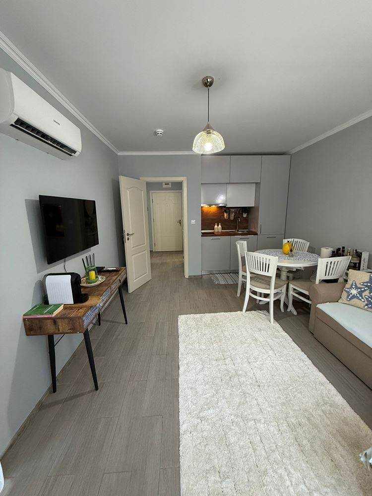 For sale: an exceptional one-bedroom apartment in the picturesque town of Nessebar, located literally on the first line by the sea. With an area of 60.42 m², this property offers the perfect combination of luxury, comfort, and a beautiful view of the complex’s landscaped grounds.