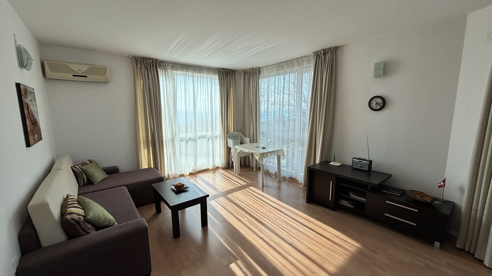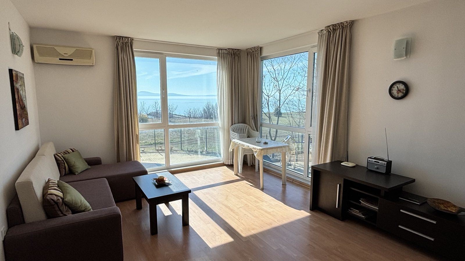 We present you a unique opportunity to own your dream home on the first line in one of the most prestigious areas of Burgas - Sarafovo. This two-bedroom apartment, located on the second floor, will impress you with its 89,06 m2 of functionally distributed area and wonderful sea views. The property has three rooms including two spacious bedrooms, ideal for relaxing after a long day. The bright living room is the perfect place for gatherings with friends or quiet family time, and the convenient kitchen is fully equipped for your culinary inspirations. One bathroom and one balcony complete the amenities of this home, with the balcony offering an amazing place to relax with amazing sea views.