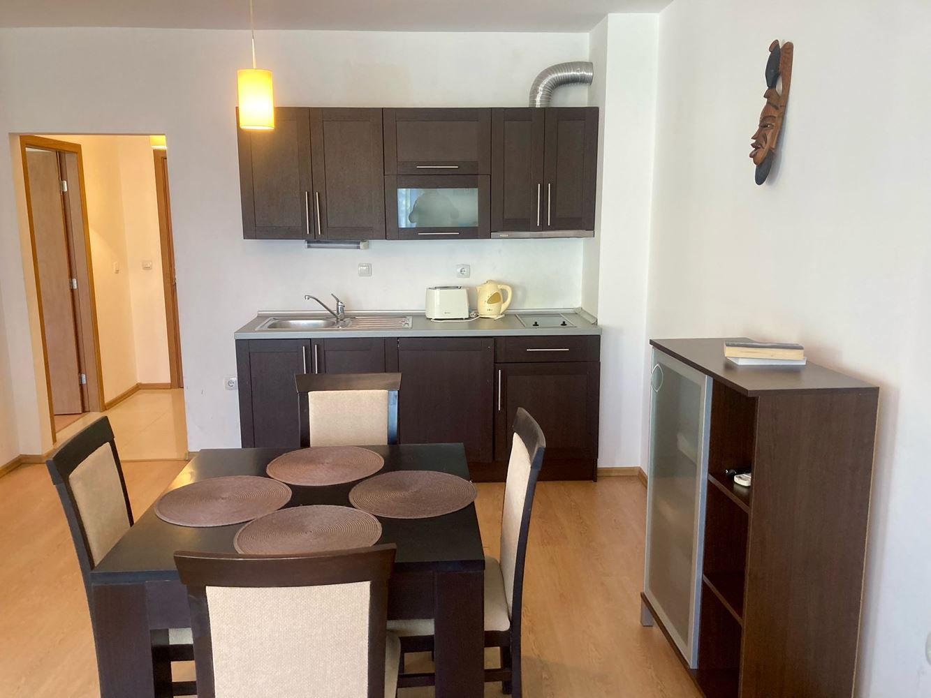 We offer for sale an exclusive one-bedroom apartment in one of the most desirable complexes of Sunny Beach. The property is located just 100 meters from the sea, offering partial sea views and a perfect location for cozy and comfortable living. The apartment has a total area of 75 m2 and consists of a spacious living room, one cozy bedroom, a fully equipped bathroom and a functional balcony where you can enjoy your morning coffee with a gentle sea breeze. The apartment is equipped with a modern elevator for the convenience of the residents. This home is being sold fully furnished and ready to move in immediately. The interior is stylishly decorated with everything you need to immediately feel at home.