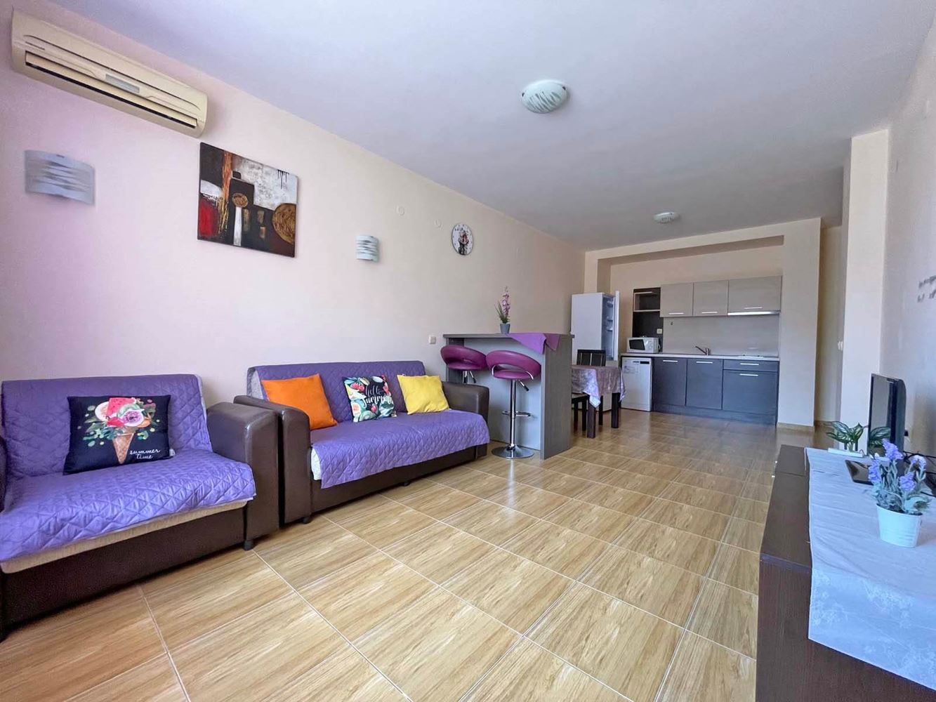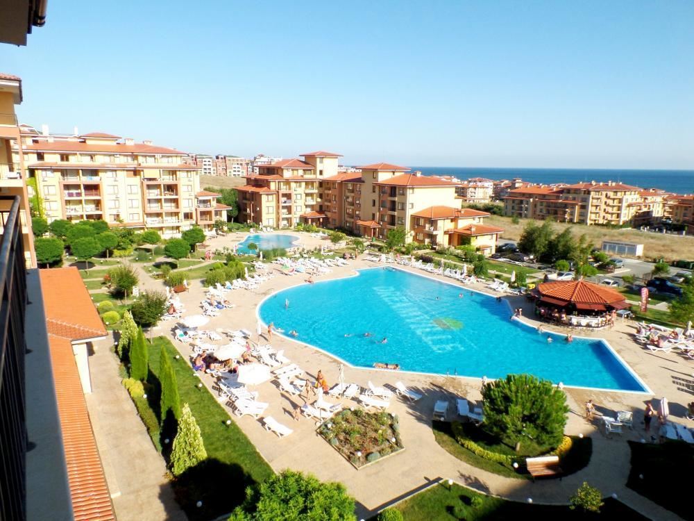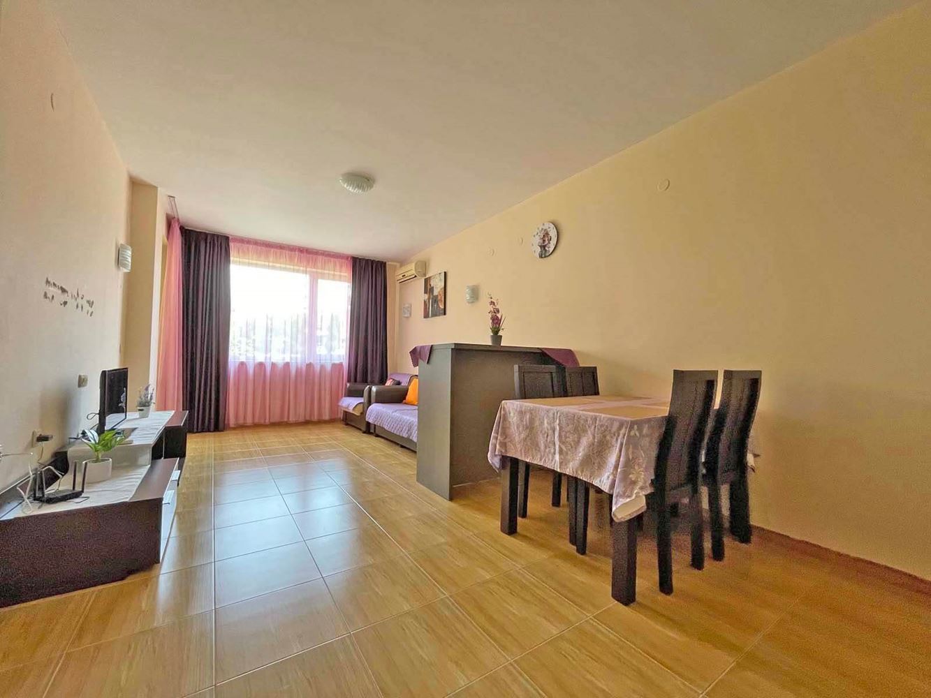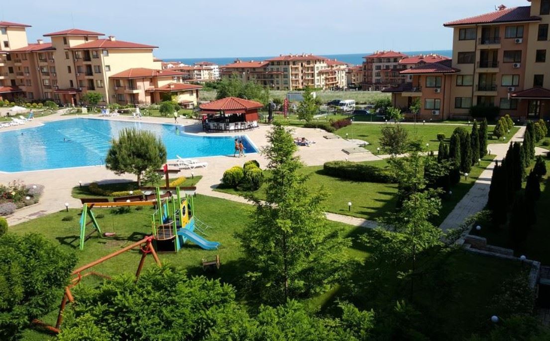 Spacious one bedroom apartment with pool view in one of the best complexes, which is located 300 meters from the sea. The 75 m2 apartment is located on a low first floor and has a charming view of the pool and landscaped courtyard. It is sold fully furnished and equipped. It consists of a living room with kitchen area, a separate bedroom, a sanitary unit and a balcony. The complex offers the following services: SPA center, lobby bar, pool bar, restaurant, children's room, internet room, shopping center, laundry, 24 hour security and maintenance, private access, green areas, parking. The complex is located in a quiet and peaceful neighborhood. Not far from the complex are the sea harbor and a beautiful forest, and 5 km away is the famous resort of Sunny Beach.