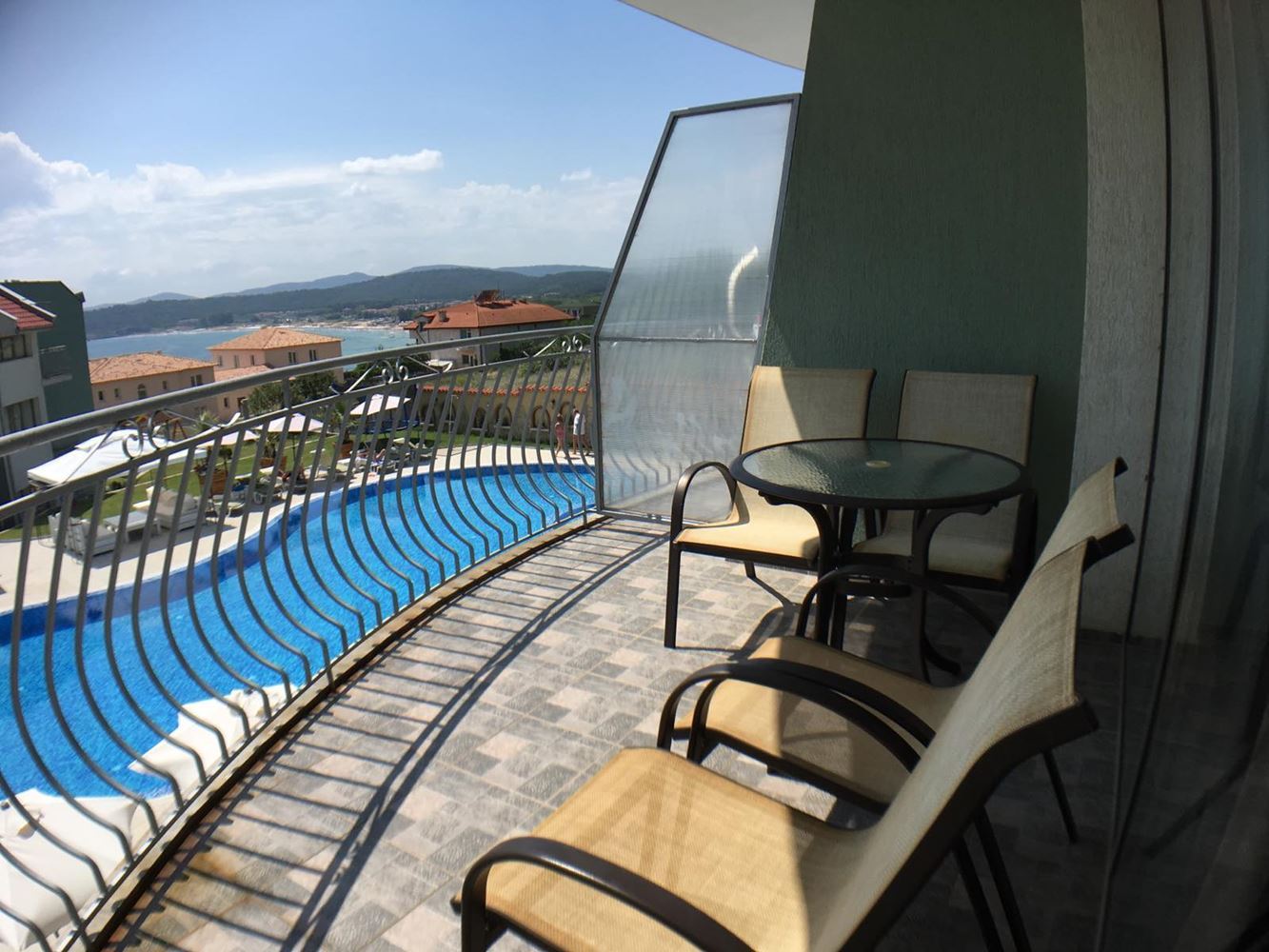 Spacious one-bedroom flat with sea view in a small complex consisting of detached houses, which are located 300 m from the coastline in the town of Sozopol. The flat is located on the third floor and it consists of an entrance hall, living room with kitchen and rest area, a spacious separate bedroom, a bathroom with WC and a balcony. The complex is built with top quality materials. There is swimming pool, parking and security. The landscaping of the yard and the surrounding area will make you feel comfortable and enjoy your time in this paradise. The clean sea, sandy beaches and magnificent views make the complex ideal not only for a comfortable holiday, but also for permanent residence, as well as a profitable and safe investment.