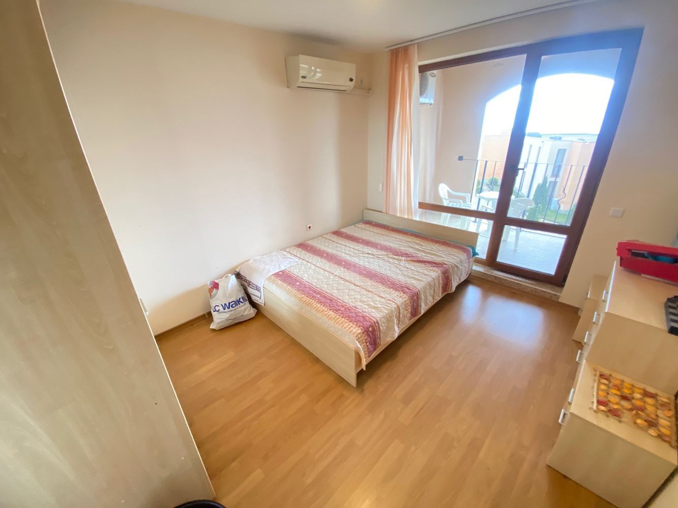 Two-bedroom apartment with sea view for sale in a gated complex in Sveti Vlas. The flat is 70 m2 and is located on the first floor and consists of a living room with kitchen and dining area, bedroom, bathroom with WC and a terrace overlooking the sea and the complex. The apartment has all the essentials and is sold furnished and with white goods. The complex is ideal for investment and for permanent living all year round. The residential complex is located in a picturesque area on the second coast line, about 200 meters from the sea and the beach. As the buildings are built on a hill, it offers amazing views of the bay of Sunny Beach and the ancient Nessebar, the forest and the mountains. The complex also offers several swimming pools for adults and children, including jacuzzi and pools with artificial waves; a mini golf course and practice golf; two tennis courts, with lighting and the possibility of playing mini football; billiards; guarded parking.
