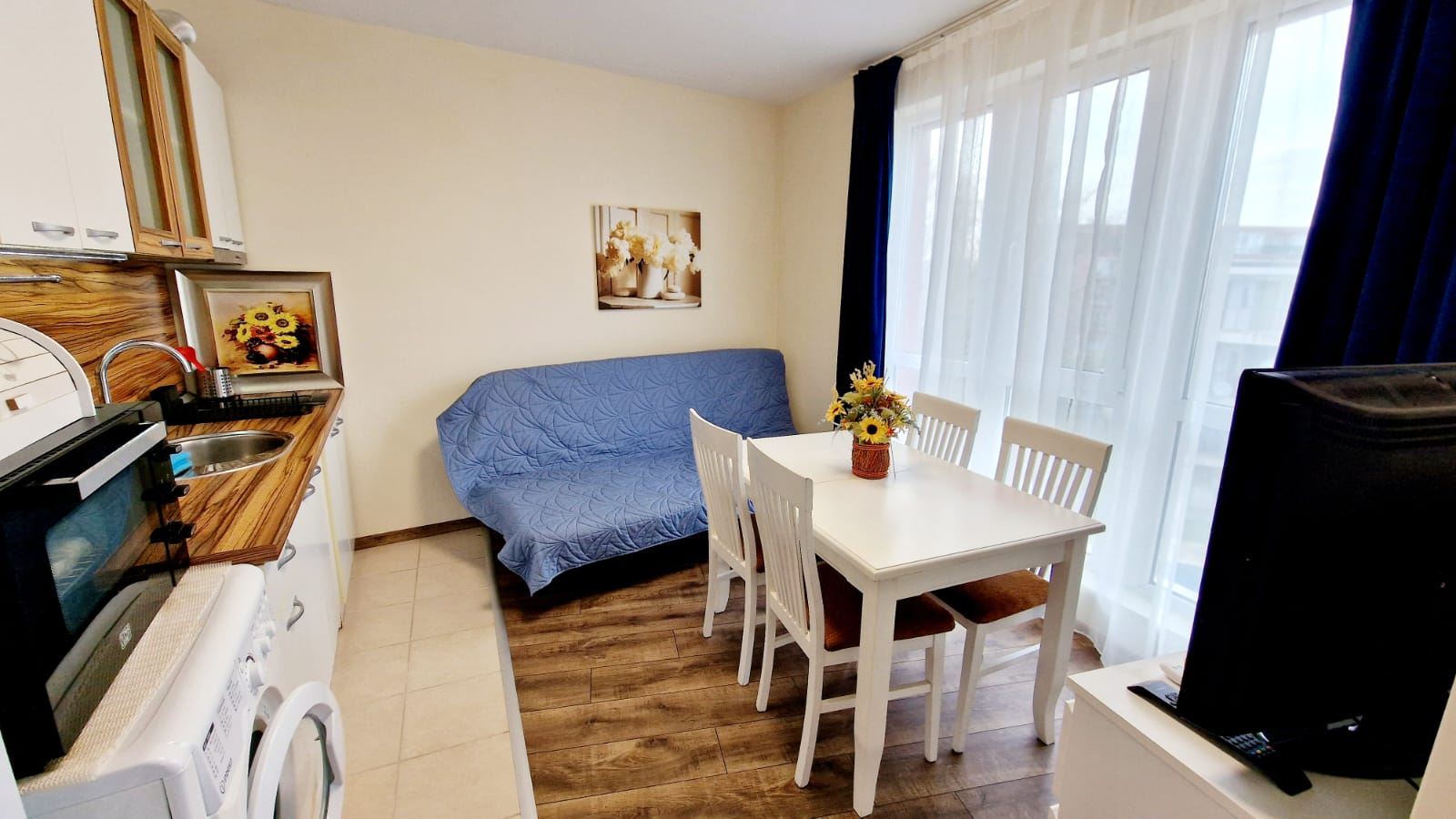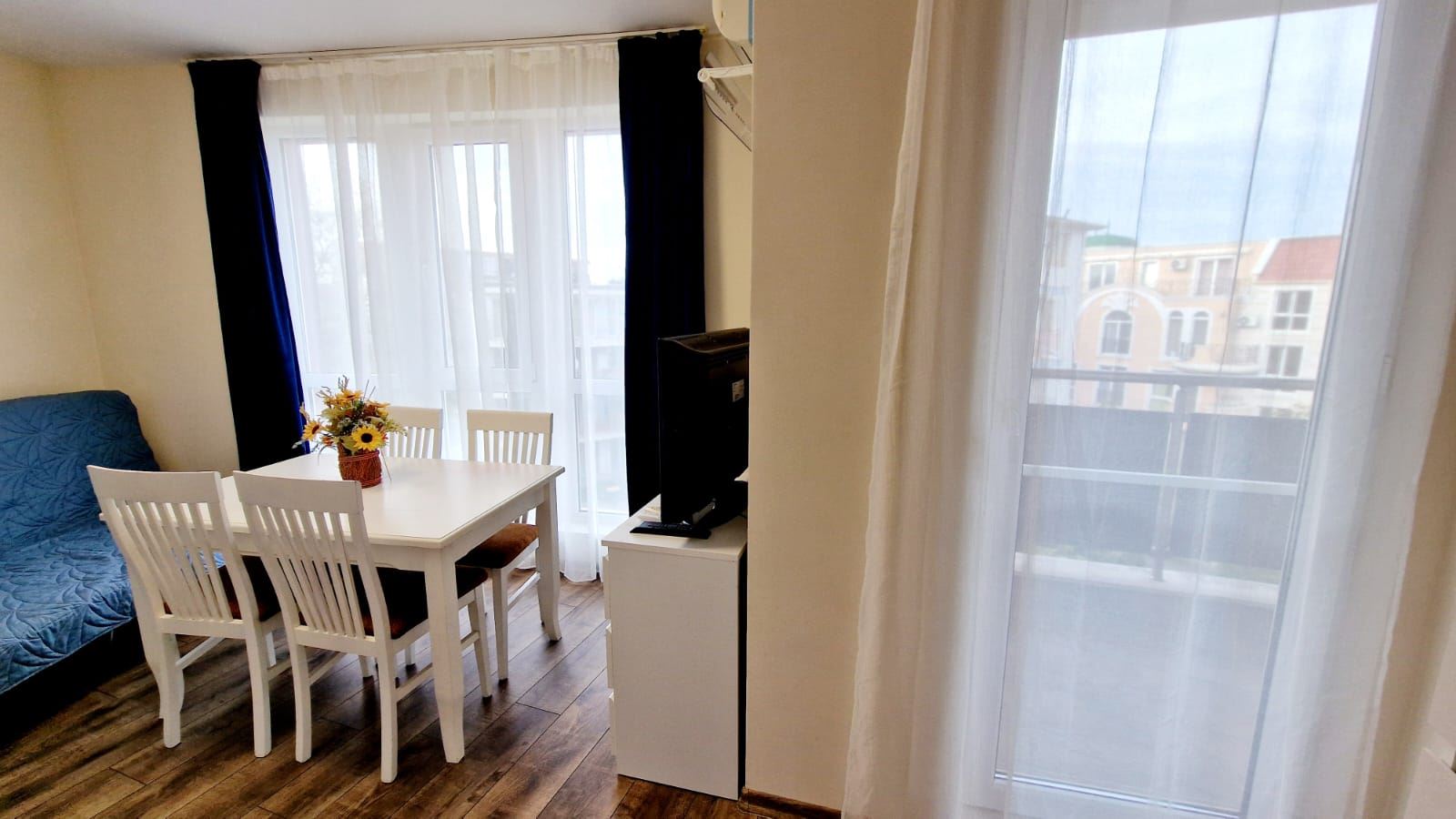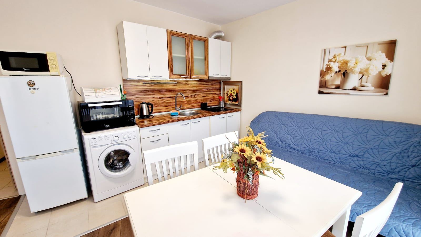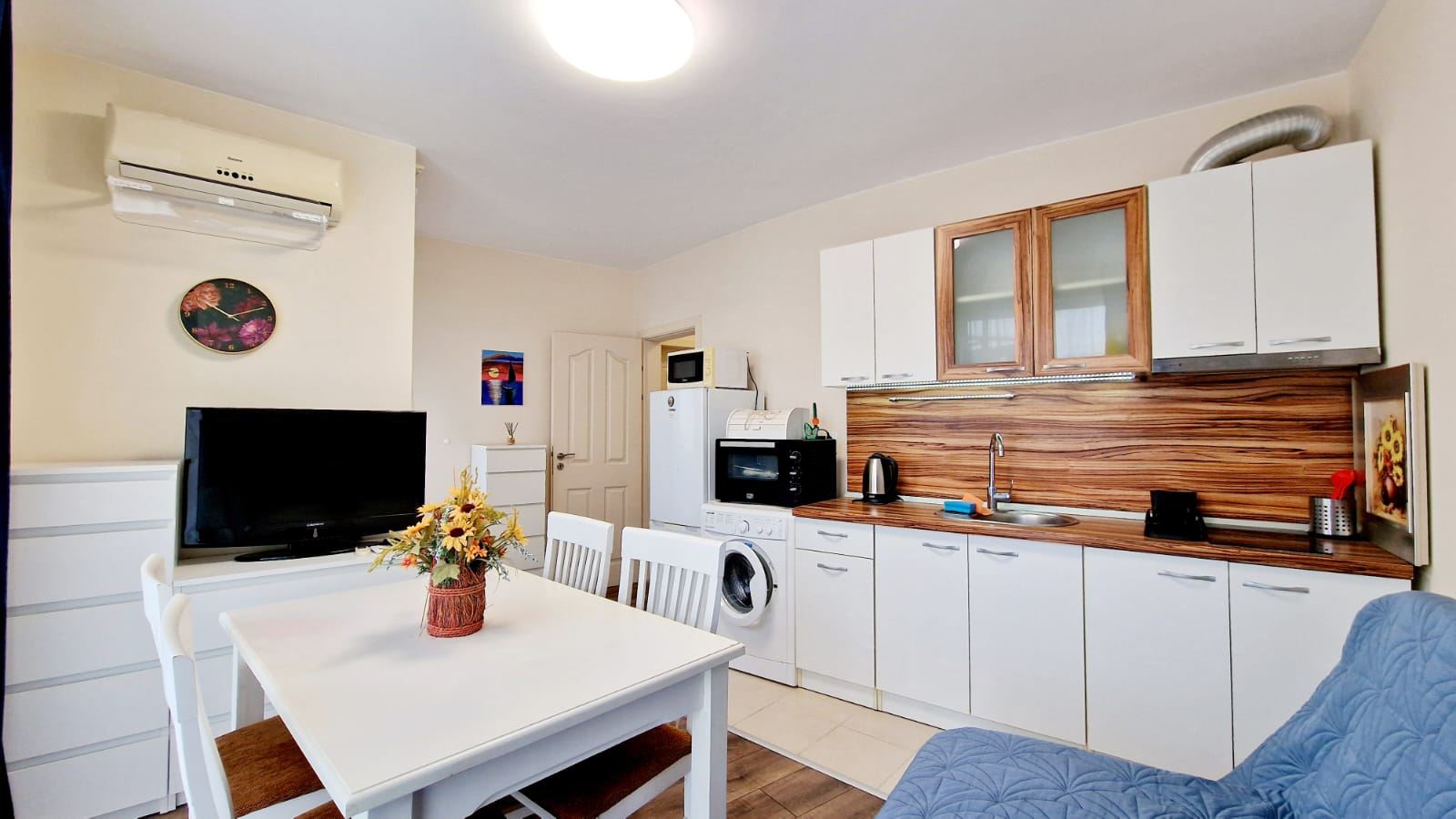 We present to you a wonderful one bedroom apartment located on the fourth floor in the picturesque resort village of Ravda. With a total area of 50 m2, this property is perfect for those looking for comfort and convenience on the beach. The apartment has two spacious rooms, including a cozy bedroom, ideal for your moments of relaxation and recreation. Equipped with one modern bathroom, the property offers all the amenities you need. From the balcony, you can enjoy the fresh sea air and sip your favourite drink while looking out over the beautiful surroundings.