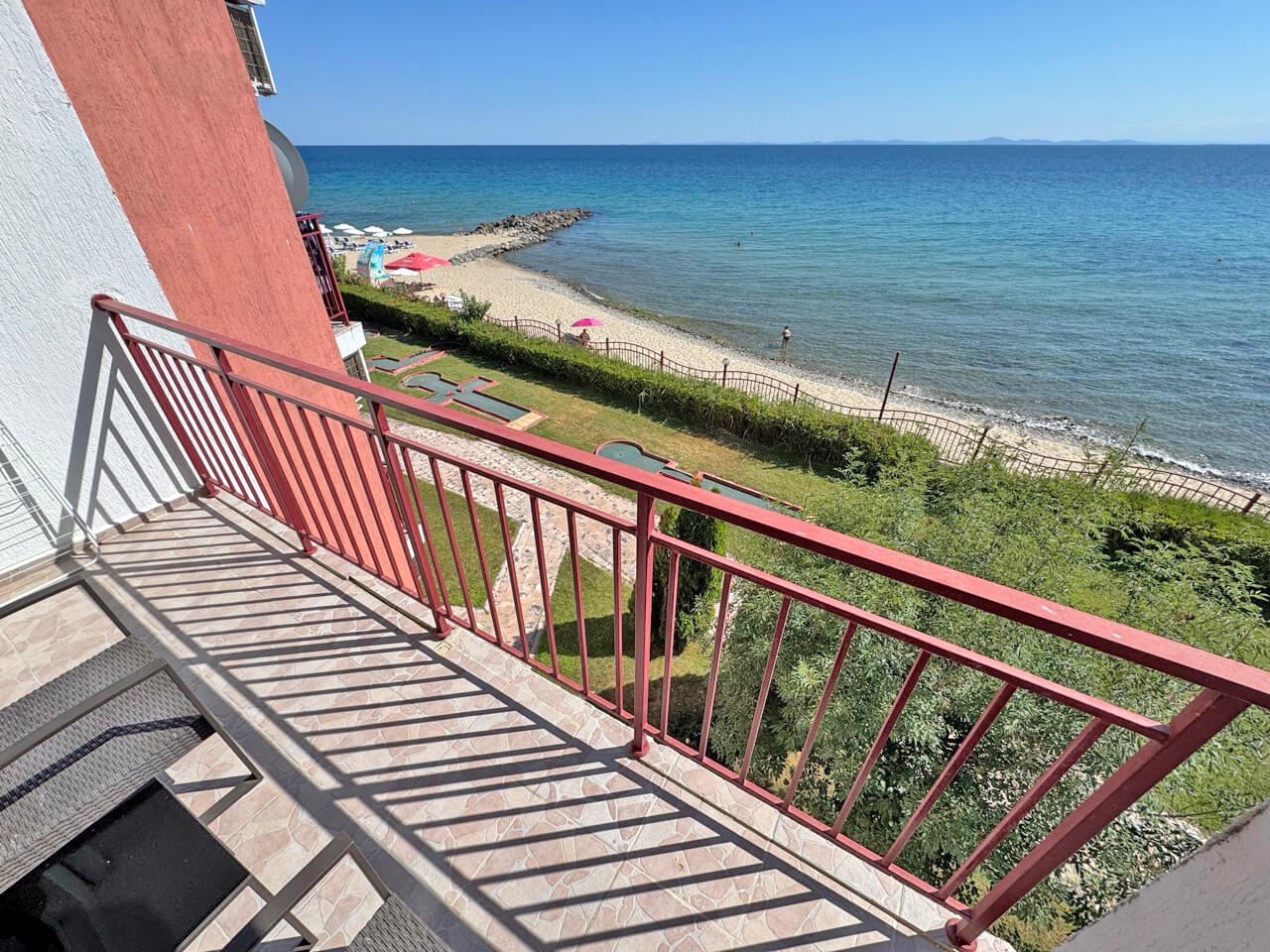 The complex in which the apartment is located is on the beachfront and has a private beach, ideally equipped for both adults and children. Here you can enjoy the sea and the sun, spend your days on the beach and create unforgettable memories. The infrastructure of the complex amazes with its variety. For lovers of active lifestyle there is a football field and a tennis court. For children there are several playgrounds. The restaurants and cafés guarantee a variety of culinary experiences. The swimming pools, sauna and gym will help you keep fit and relax.