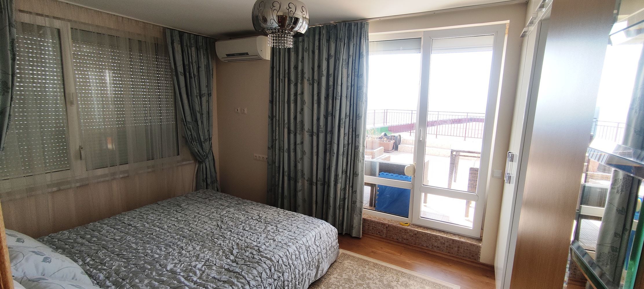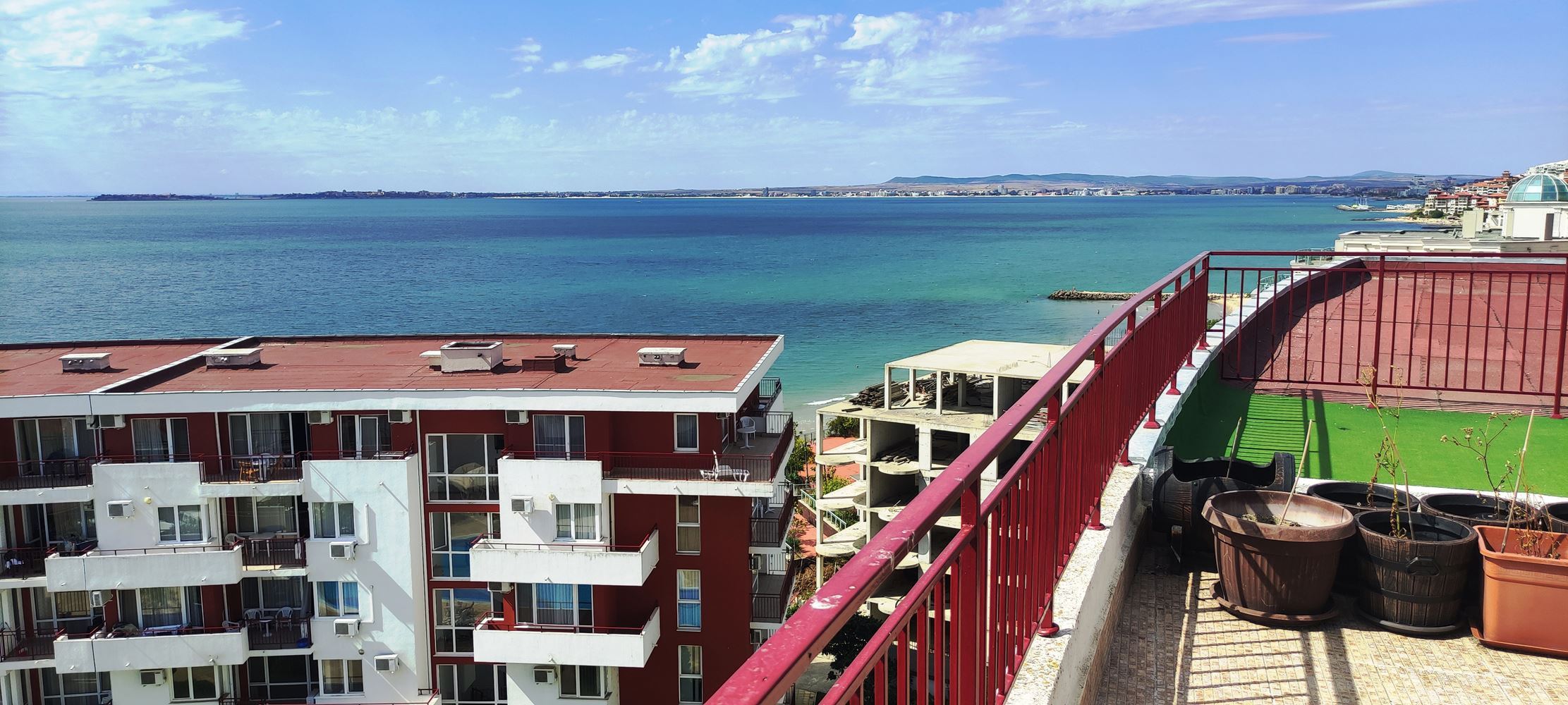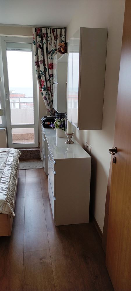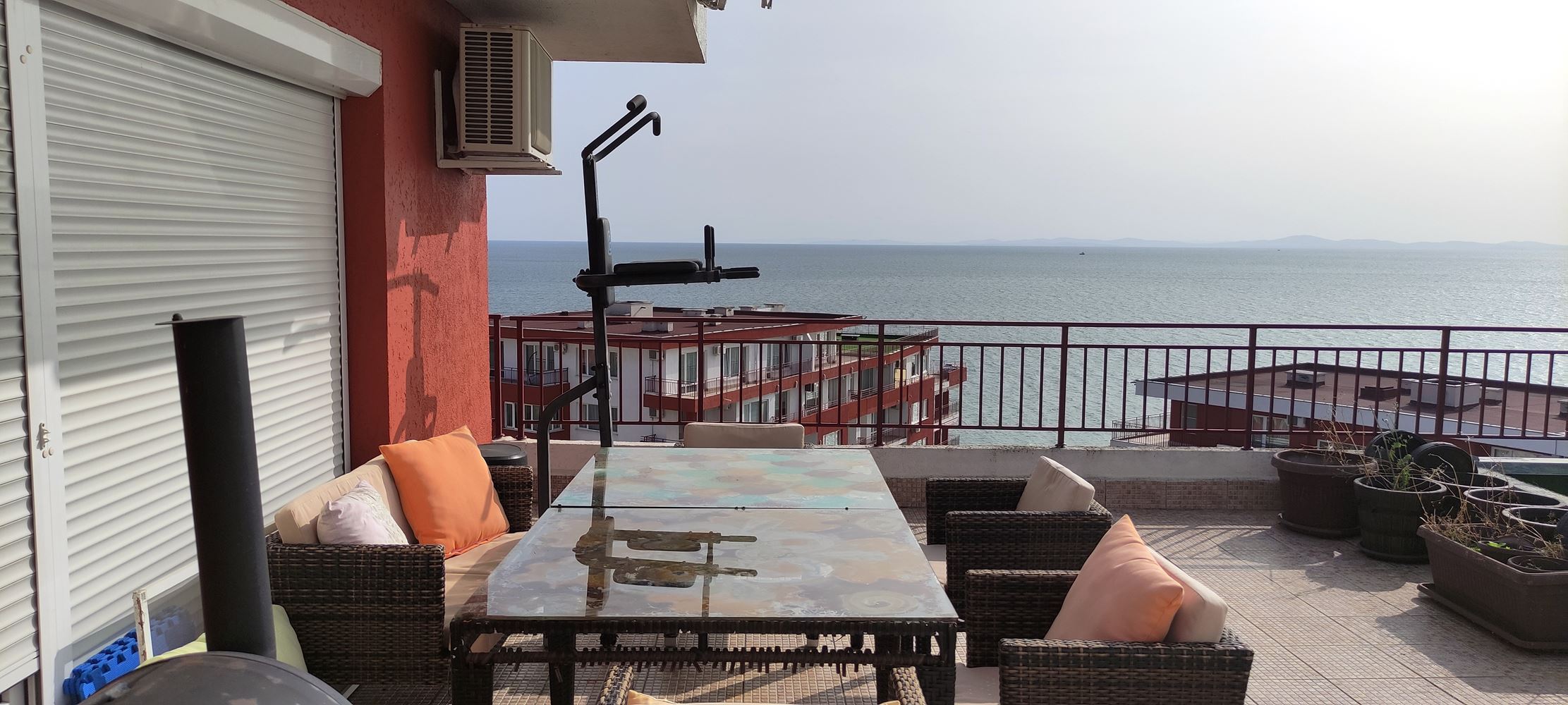 We present to you an exclusive two bedroom apartment in the town of. An exclusive one-bedroom apartment in Sveti Vlas, offering unbeatable direct sea views. This apartment, with a total area of 144 m², combines spatial comfort and contemporary luxury to offer you a dream place to live. The apartment has three spacious rooms, including 2 stylishly furnished bedrooms, which provide comfort and convenience. Two modern bathrooms designed with attention to detail. An expansive 30m² balcony, perfect for relaxing and enjoying the panoramic sea views. The apartment is furnished with bespoke furniture and high quality exclusive appliances. Roller blinds on every window and an electric awning add extra comfort. Mitsubishi hyperinverter air conditioners are installed to regulate the temperature, providing economical heating in winter and cooling in summer.