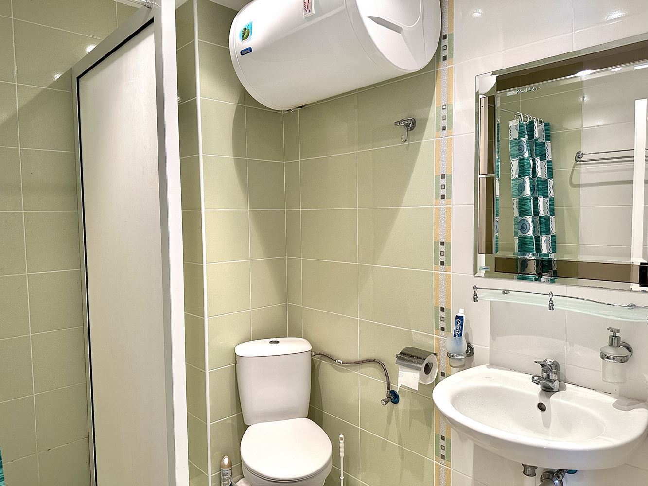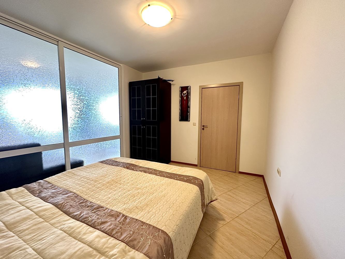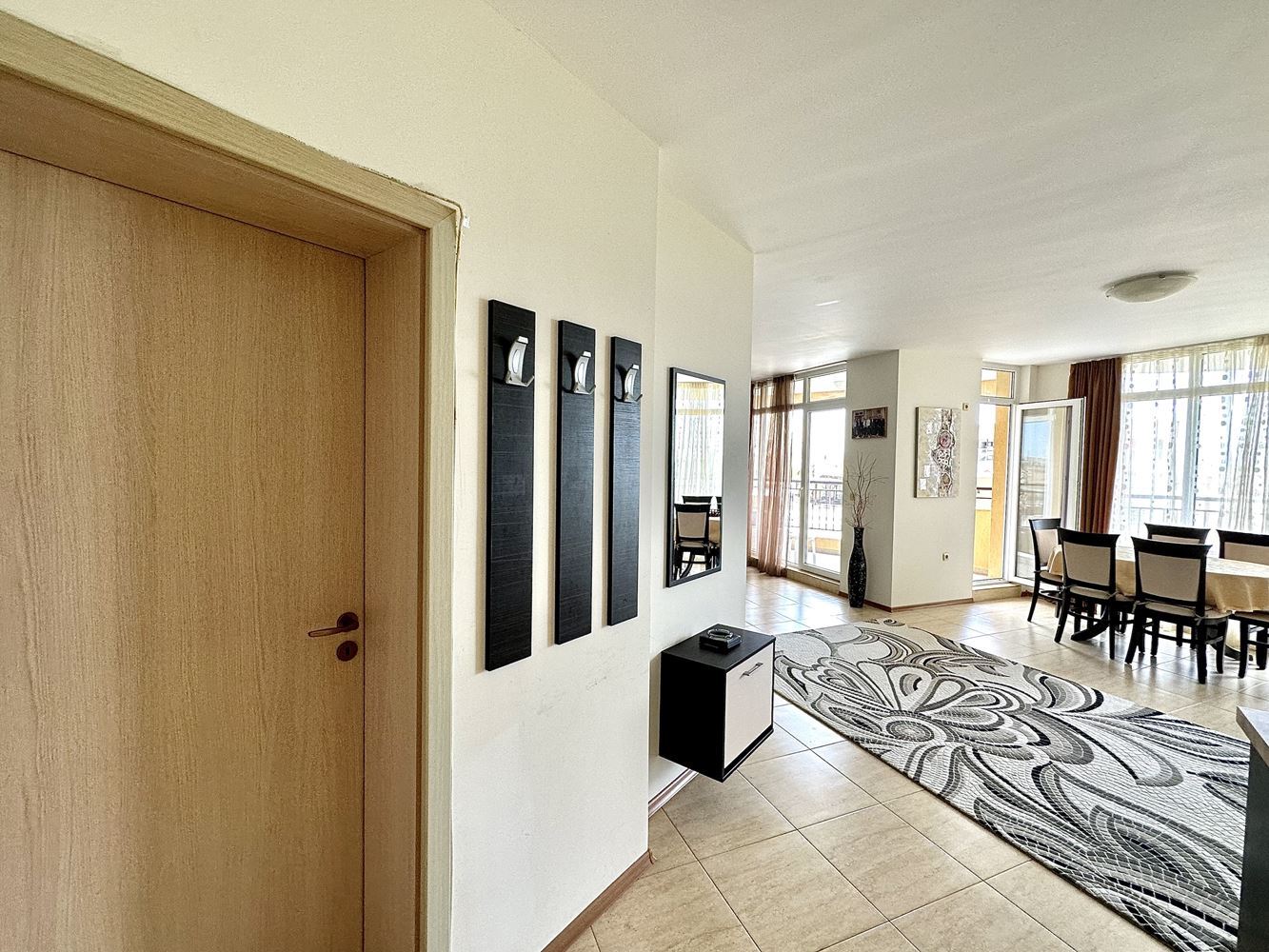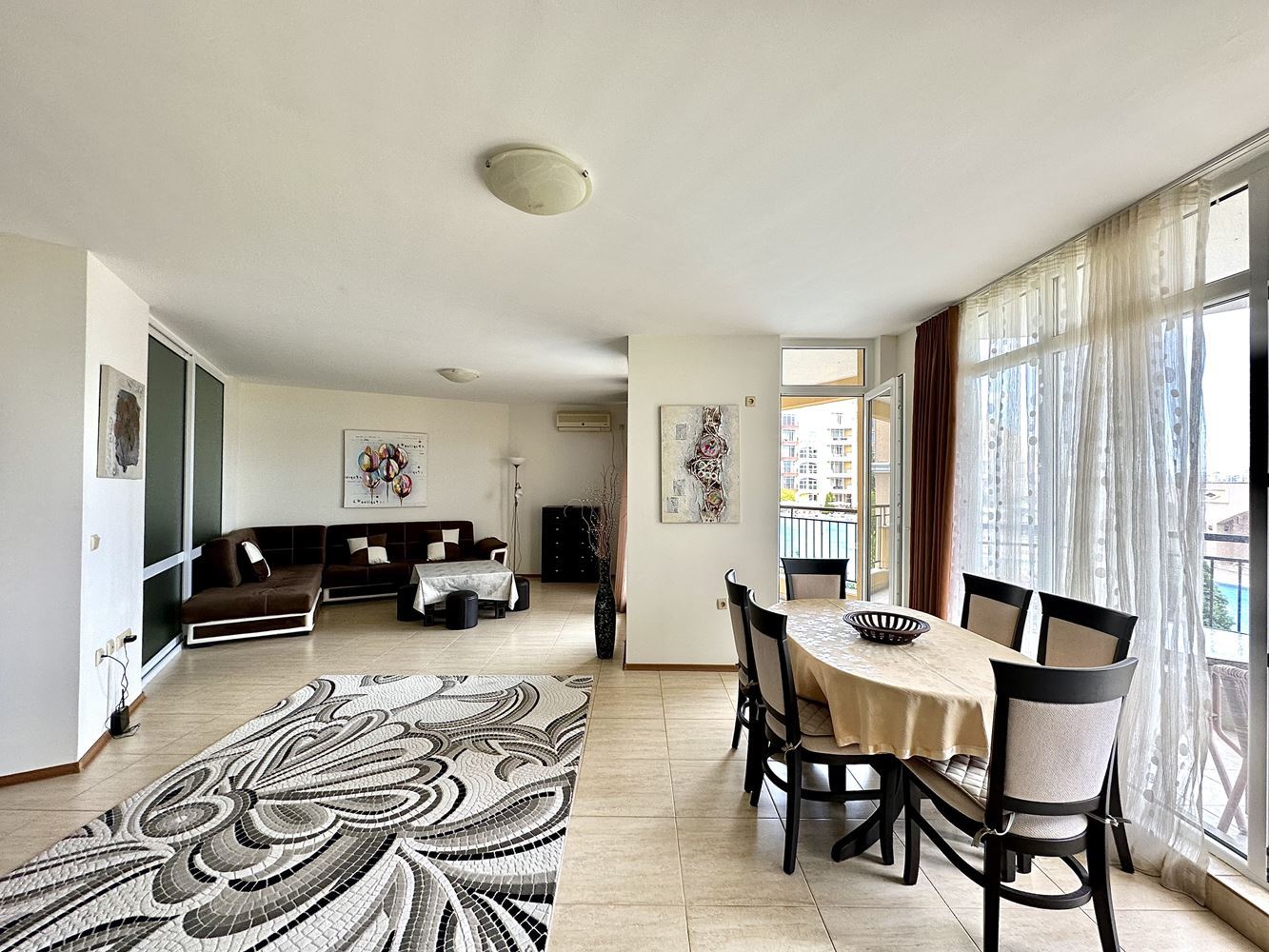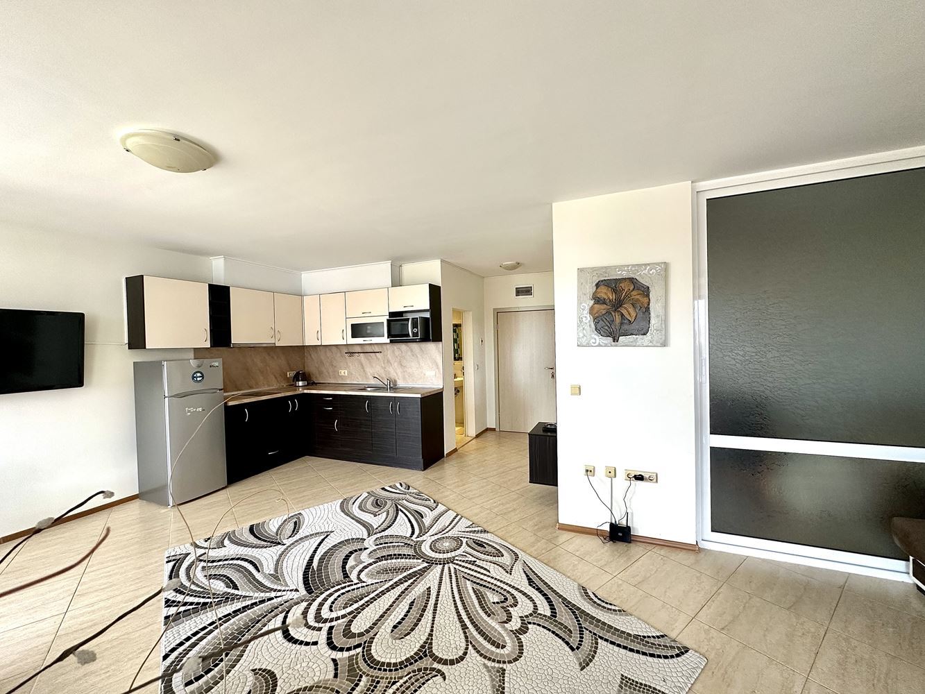 Spacious 94 m2 one bedroom apartment in an incredible beachfront complex in Aheloy. Second floor, there is an elevator. The balcony has a beautiful sea view, well maintained courtyard and swimming pool. The apartment consists of an entrance hall, a large living room with kitchenette, a bedroom, a large bathroom with WC and two balconies. It is offered for sale with quality equipment, furniture and appliances. The complex offers a wide and full comfortable list of services for both adults and children, ranging from animation programs and ending with the rental of conference rooms and cars - there is everything here. Clean and well-maintained beach - right outside the gates of the territory.