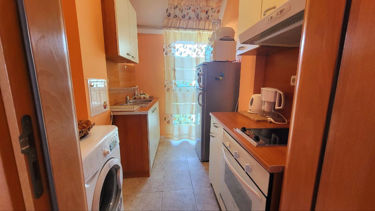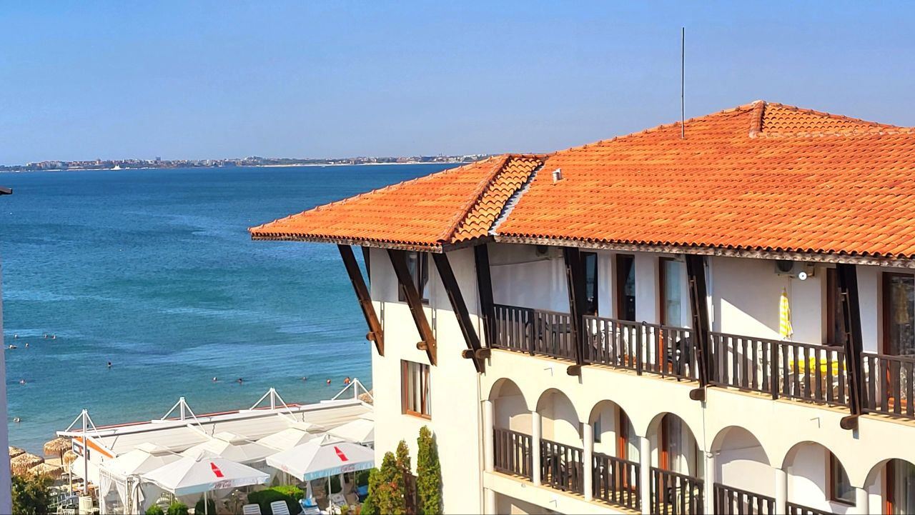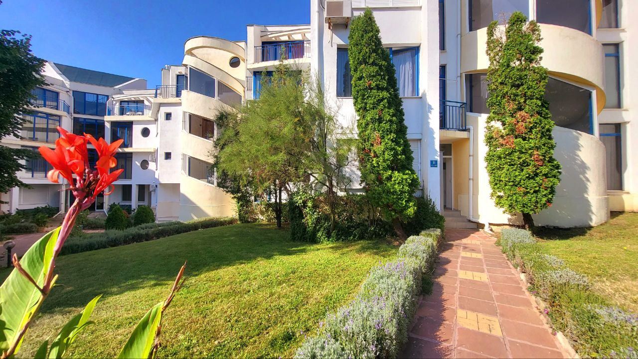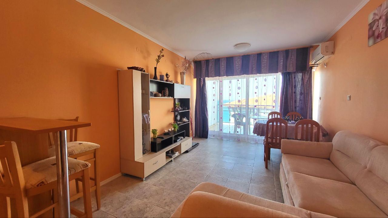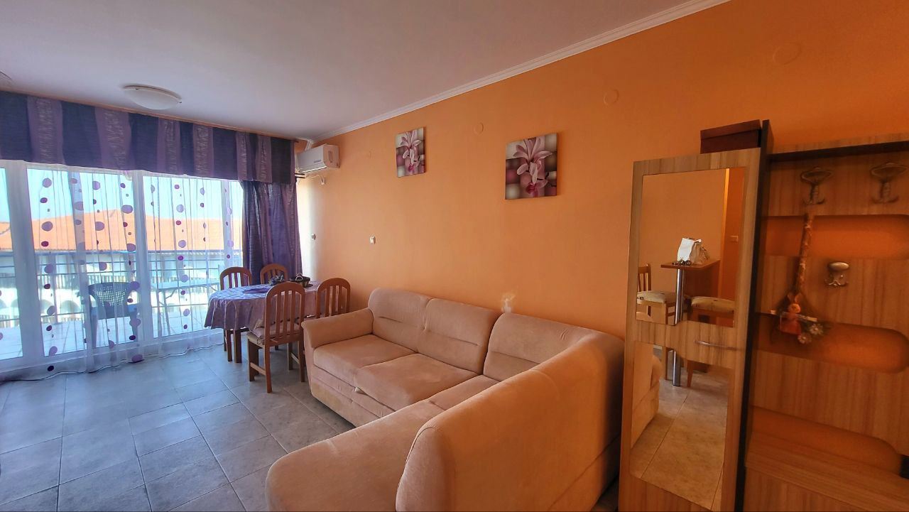Two-bedroom cozy apartment with sea view in an interesting sea complex on the first line from the beach, located in the heart of the resort Sveti Vlas. The apartment with total area of 87 m2 is located on the fourth top floor of a building without elevator. From the balcony there is a beautiful view to the sea, the landscaped area with swimming pool and the town. The apartment is sold with furniture and appliances. Services of the complex include outdoor swimming pool, recreation areas, landscaping, security, parking, restaurant. The complex is suitable for vacation, residence or for renting.