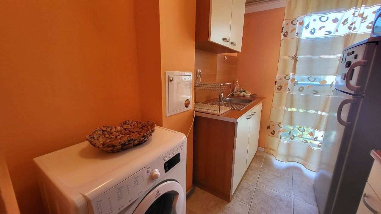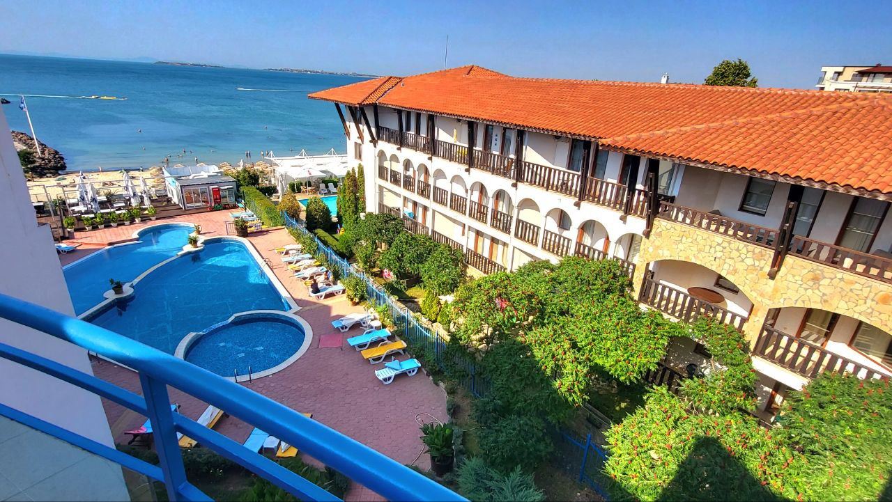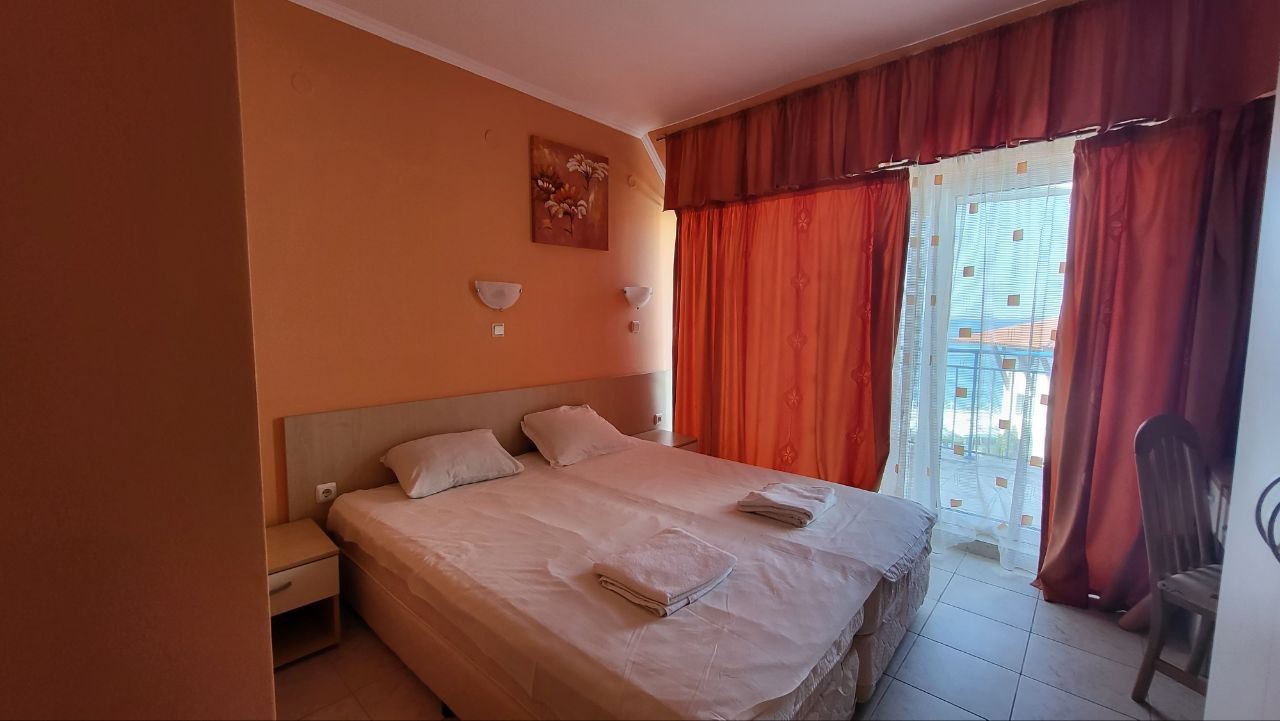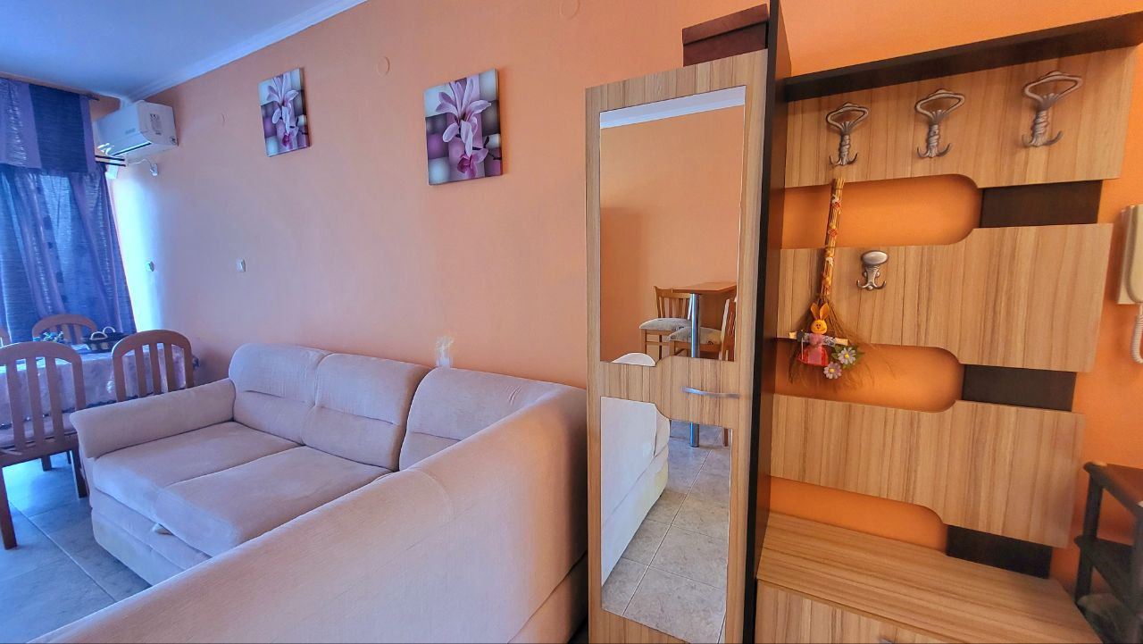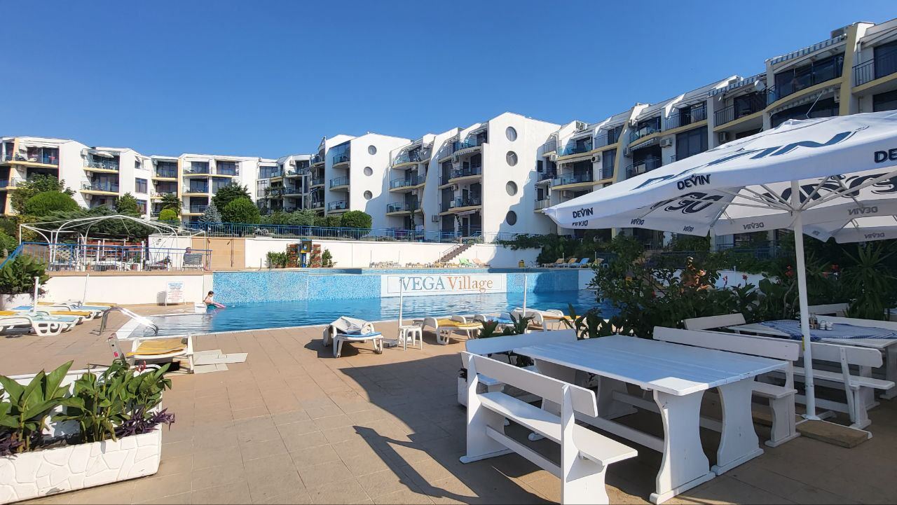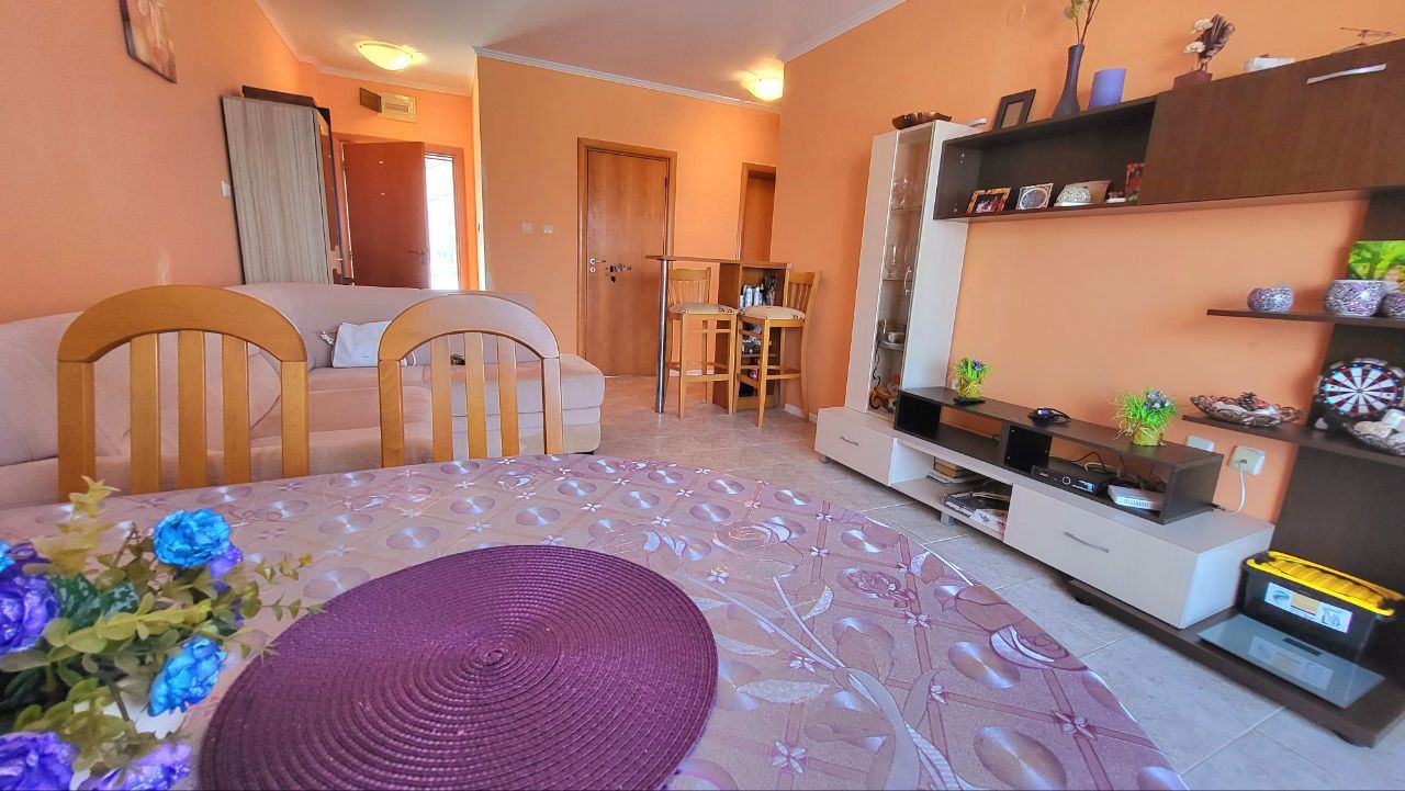 Two-bedroom cozy apartment with sea view in an interesting sea complex on the first line from the beach, located in the heart of the resort Sveti Vlas. The apartment with total area of 87 m2 is located on the fourth top floor of a building without elevator. From the balcony there is a beautiful view to the sea, the landscaped area with swimming pool and the town. The apartment is sold with furniture and appliances. Services of the complex include outdoor swimming pool, recreation areas, landscaping, security, parking, restaurant. The complex is suitable for vacation, residence or for renting.