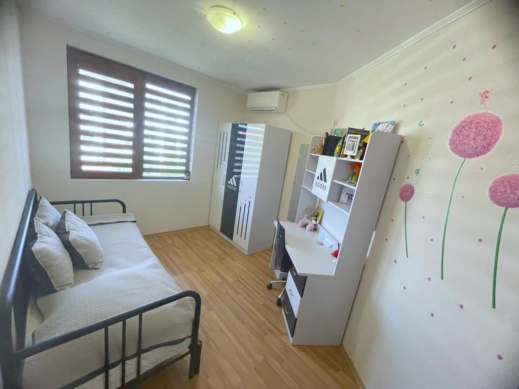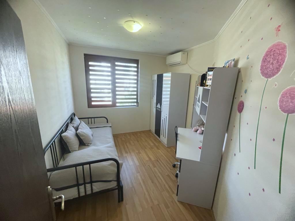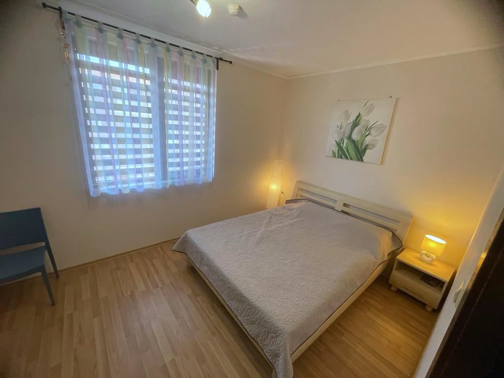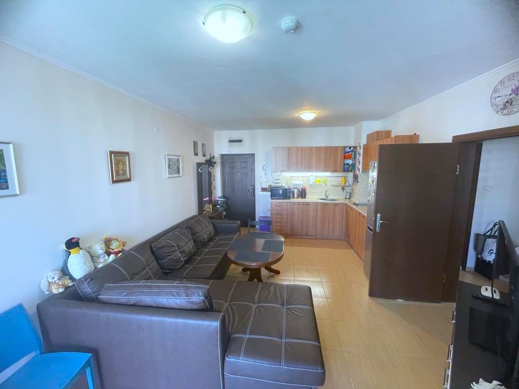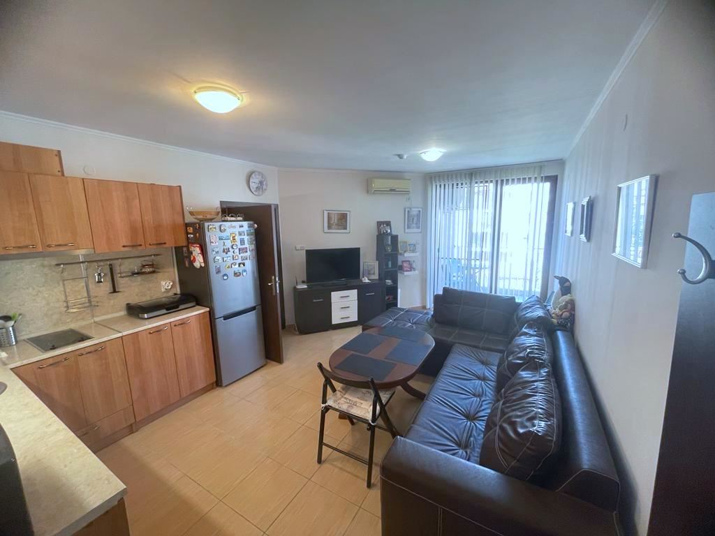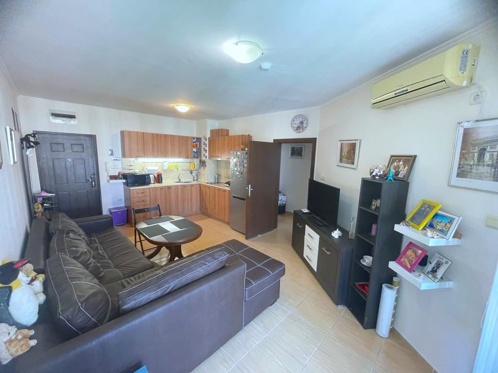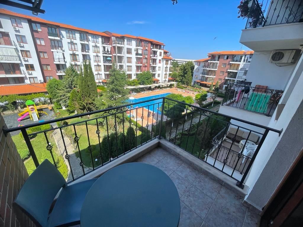 Two bedroom apartment with furniture in a complex, which is located on the second line of the sea in the town of Nessebar. The apartment of 88 m2 is located on the fourth floor and consists of an entrance hall, living room with kitchenette, two bedrooms, two bathrooms with toilet and a terrace overlooking the pool. The cozy apartment is sold with a complete set of furniture and appliances. The beautiful complex offers residents a territory with several swimming pools, restaurants, store, gym, church, tennis court, cafes, parking lots, security. The complex is located only 300 meters from the sea and offers a wide range of services.