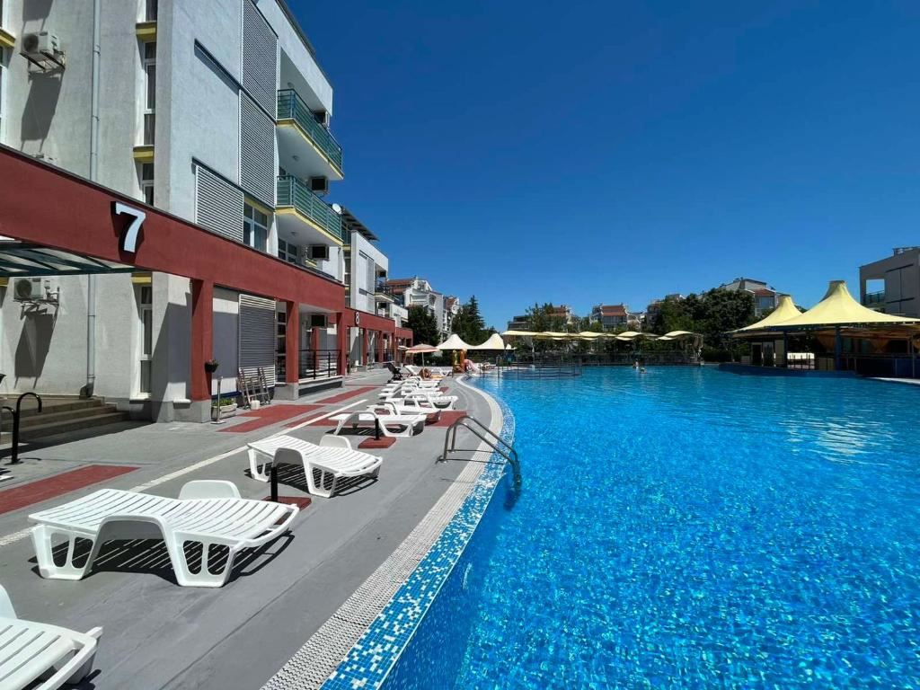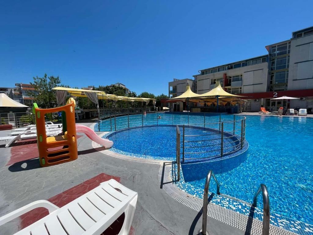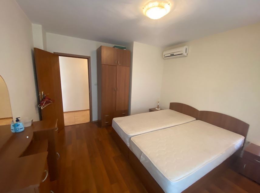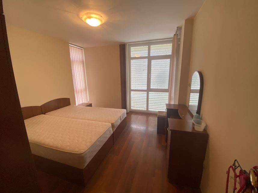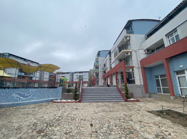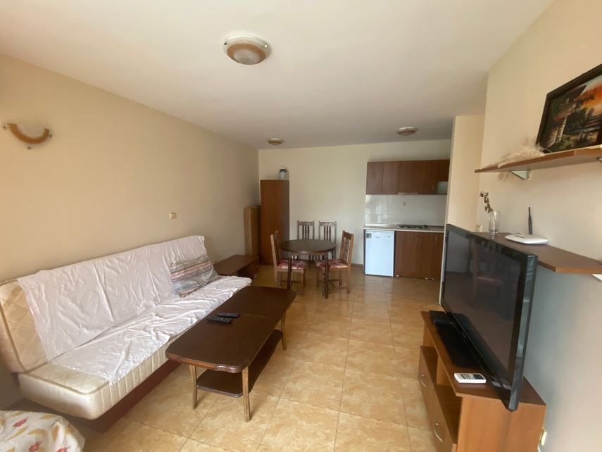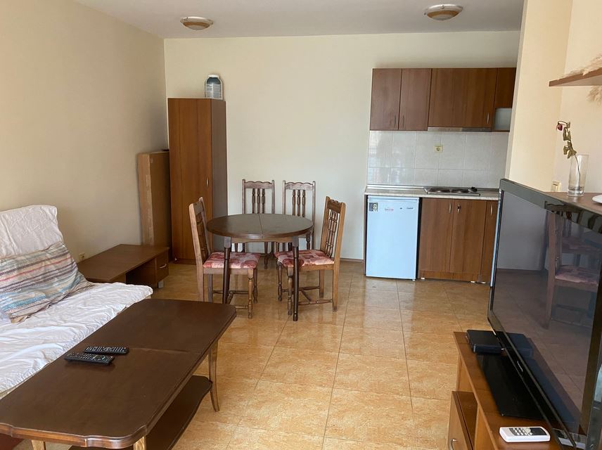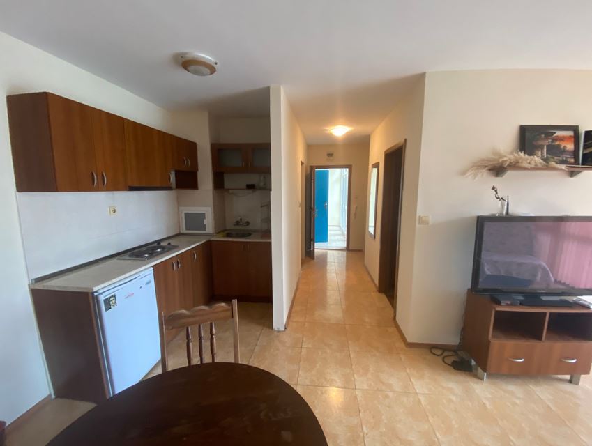 Attractive one bedroom apartament with full furniture and appliances is located in a secure complex in the beautiful resort of Sunny Beach. The accommodation totals 63.42m2 and is located on the ground floor of the building, providing easy access and convenience. The apartament includes a spacious entrance hall leading to the living room, where a comfortable kitchen is separate. This open plan layout creates a cosy and functional area for family gatherings and hosting guests. The bedroom provides a secluded place to relax and the bathroom is modernly decorated and equipped with everything you need. There is a terrace where you can enjoy the fresh air and the view of the green area of the complex. The complex itself offers extensive leisure facilities, including a large swimming pool with children's section, designed to meet the needs of the whole family. The landscaped grounds create a cosy atmosphere for strolling and relaxing. Located in a quiet and green part of Sunny Beach, just 300 metres from the beach, this complex provides the perfect combination of peace and proximity to the main resort areas. In addition, the historic town of Nessebar is only a five-minute drive away, adding a cultural dimension to this unique location.