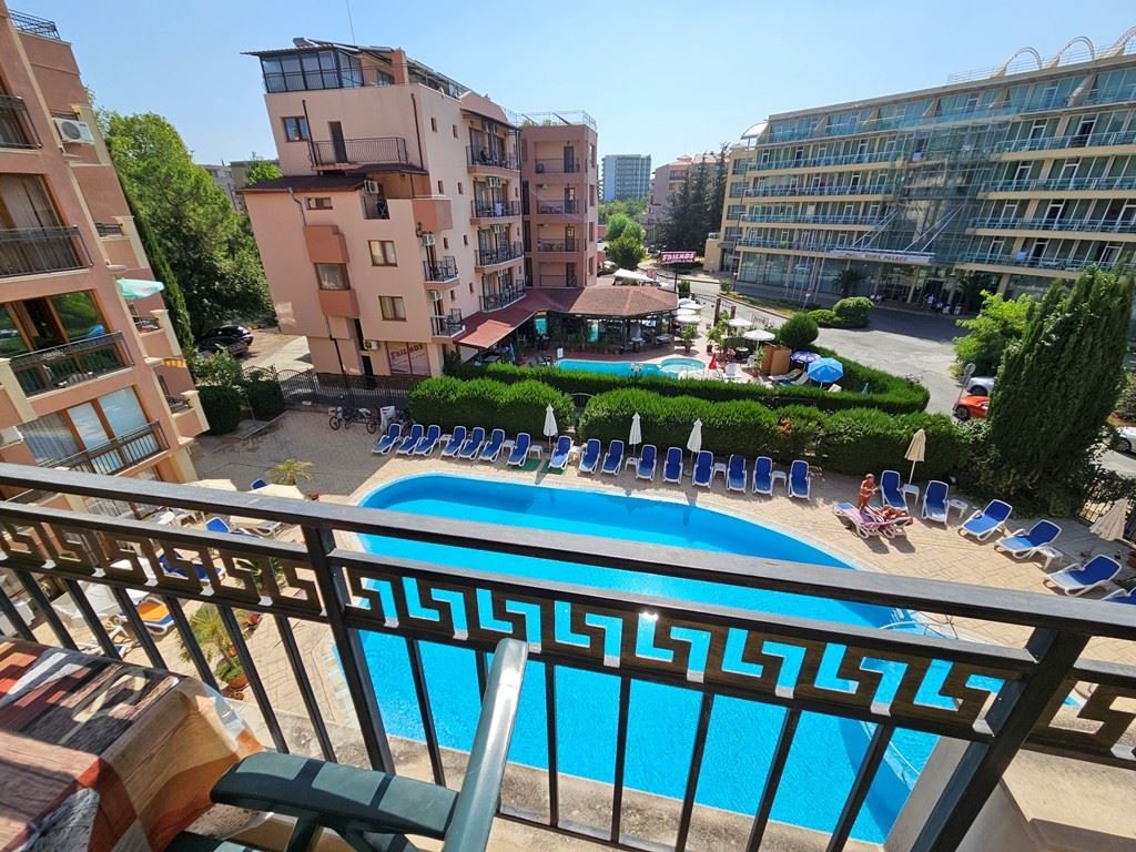 The apartment extends over a total area of 92 m² and offers a functional distribution of rooms. It consists of a spacious living room, two cozy bedrooms, one well-equipped bathroom and two balconies from which you can enjoy the fresh sea breeze and the landscapes of the complex.