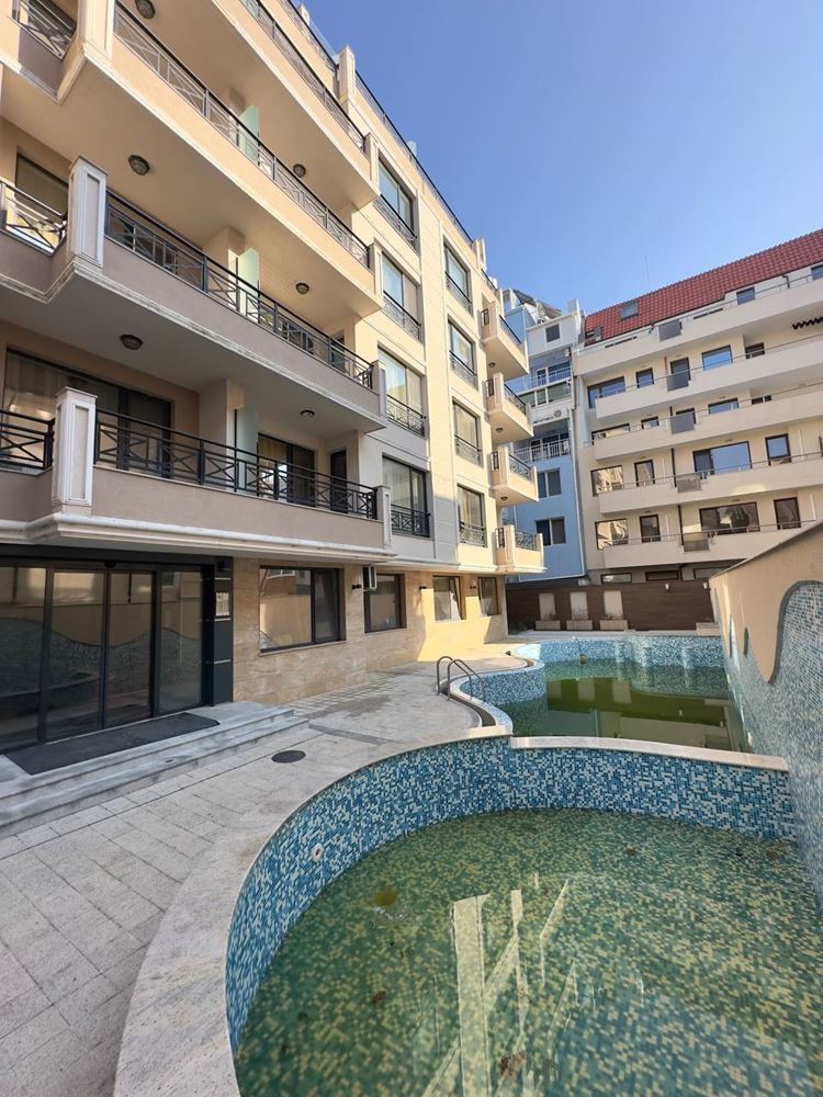 We present you a cozy one-bedroom apartment, located in the attractive town of Pomorie, offering excellent conditions for comfort and relaxation. With a total area of 61,30 m², this apartment combines functionality and style in one. The apartment has two spacious rooms - a comfortable private bedroom and a bright living room. The rooms offer panoramic sea views that will enchant you every day. The apartment is located on the third floor and is accessible with the help of a modern elevator. The layout includes a bathroom and a balcony from which you can enjoy the sea breeze. The complex also offers an indoor swimming pool which is available to residents all year round.