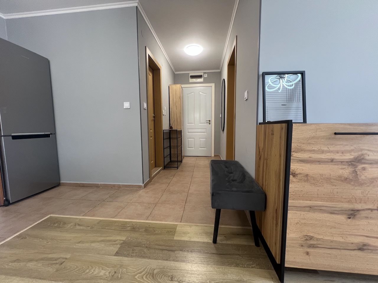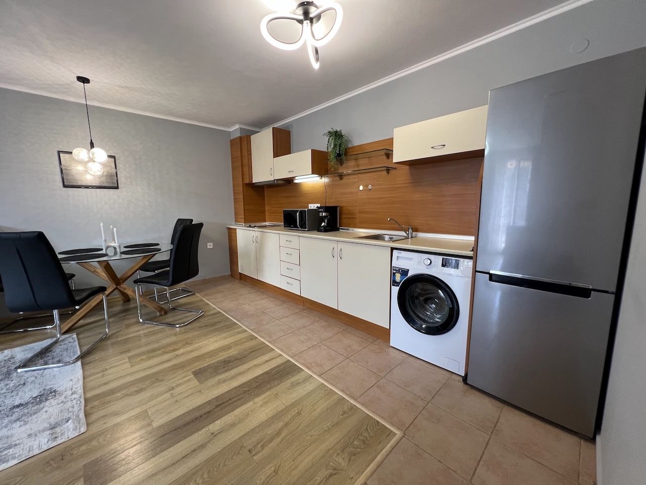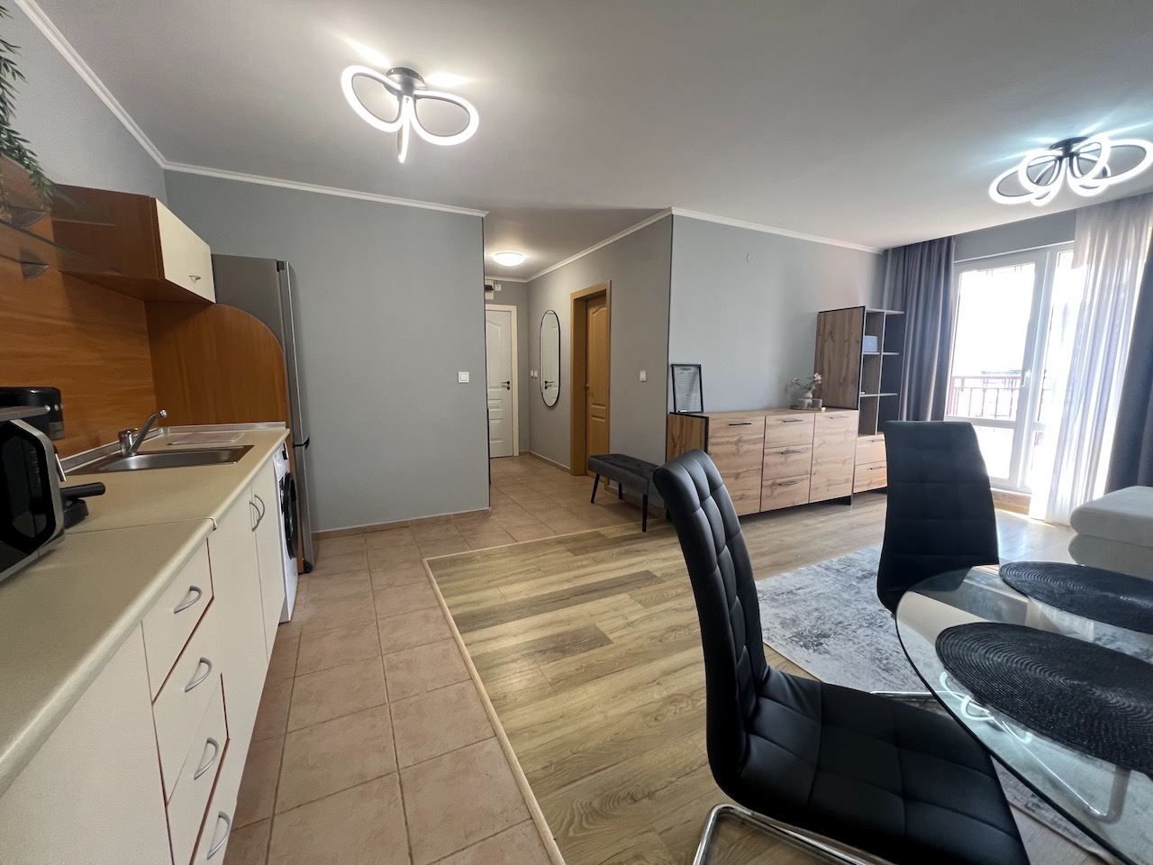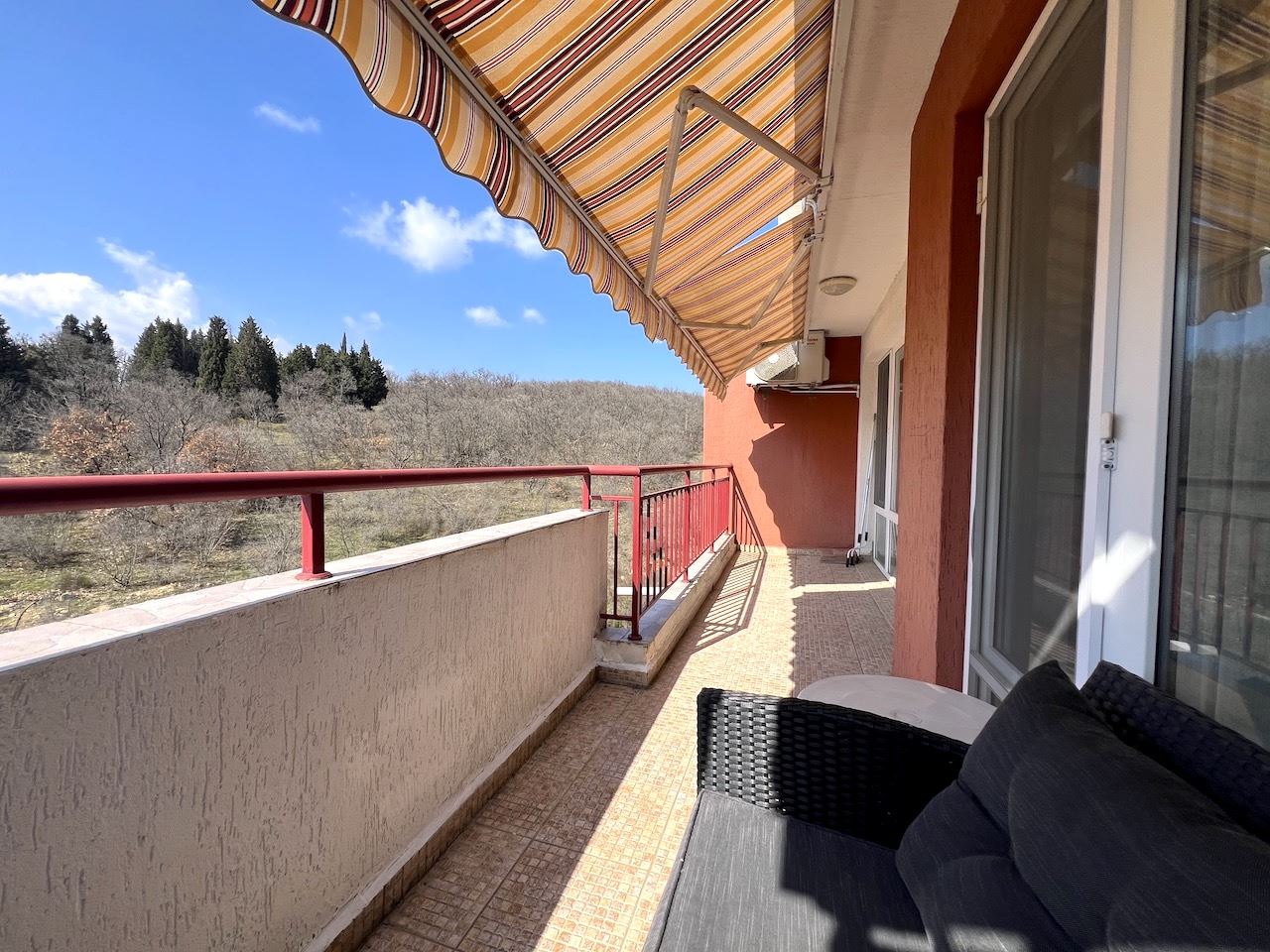We present a cozy apartment with one bedroom, with a total area of 71.33 m² and a living area of 66.39 m², located on the fourth floor (not the top floor) in a prestigious complex in Sveti Vlas. The property impresses with an incredible view of the sea and the mountains, which will accompany every day, creating an atmosphere of tranquility and relaxation. The apartment is furnished with new furniture and modern appliances, ready for immediate move-in or seasonal rental.