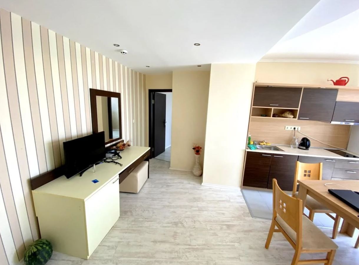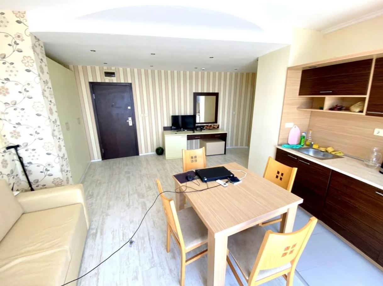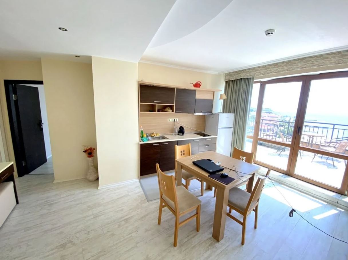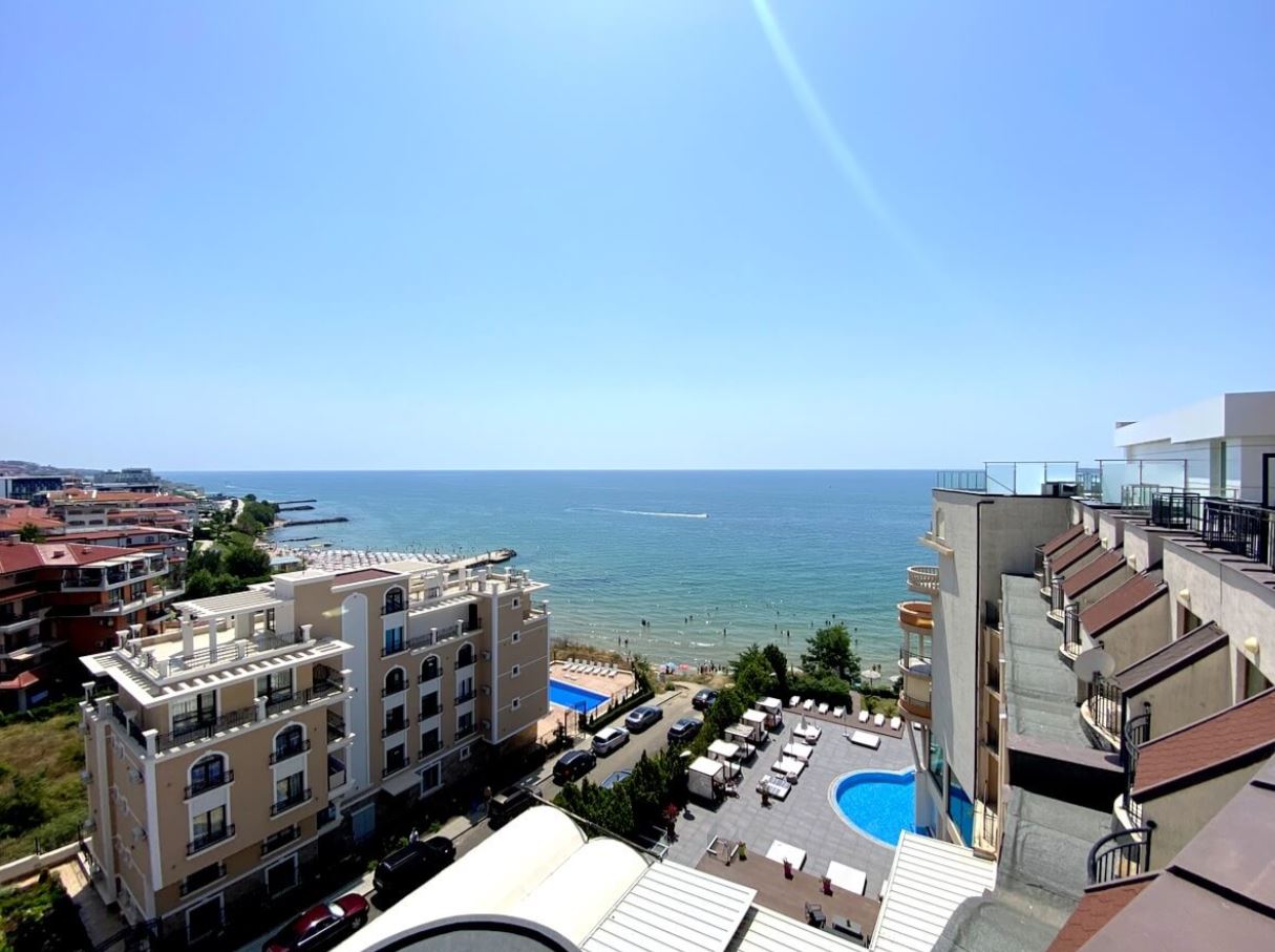 We present you a unique opportunity to become the owner of a modern one-bedroom apartment located on the top floor with an incredible sea view. This property with a total area of 111 m2 offers the perfect balance between comfort and luxury. The apartment consists of an entrance hall, a spacious living room with a kitchenette, a cosy bedroom, a bathroom with a toilet, equipped with a shower and a bathtub, and a balcony where you can enjoy inspiring sunrises and sunsets. Fully furnished with high-quality furniture and equipped with all necessary amenities, this apartment is ready to welcome its new owners.
