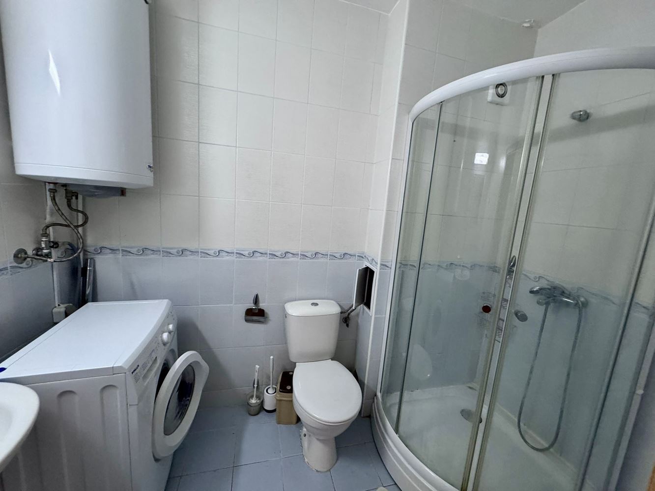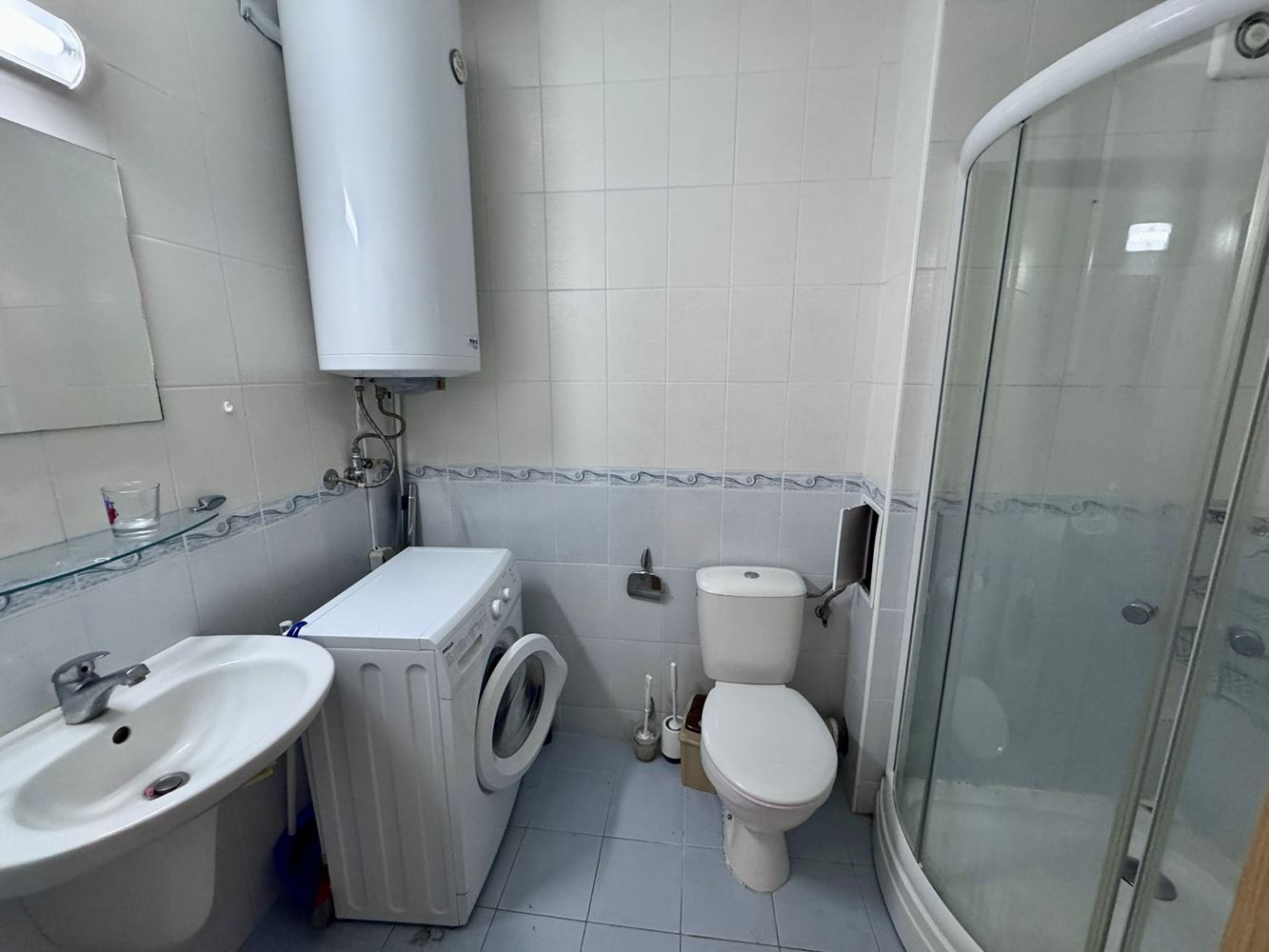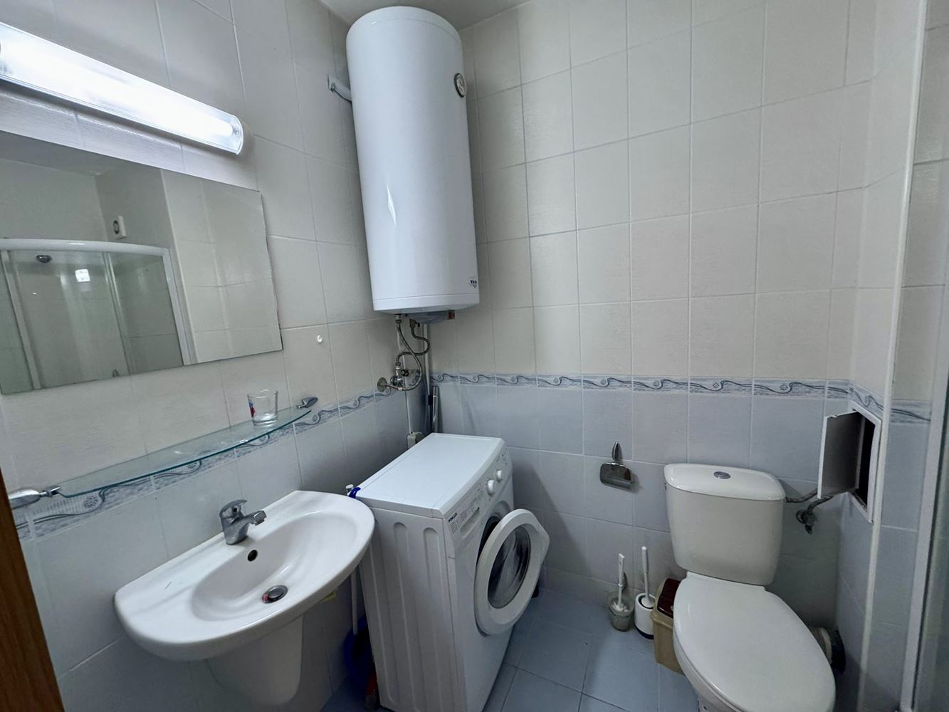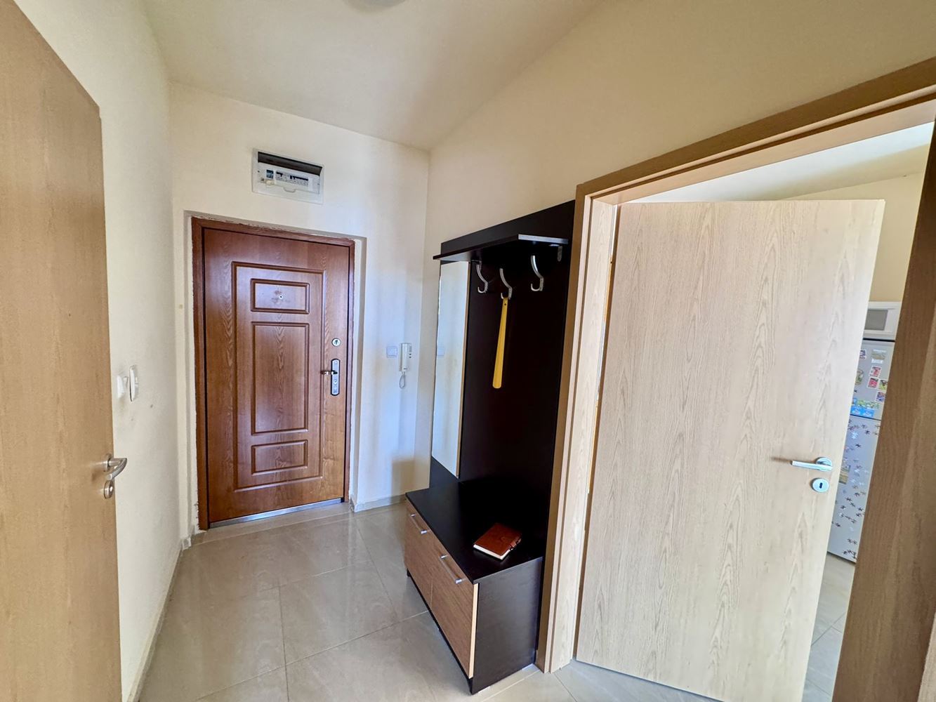 A separate corridor leads to a spacious bedroom with access to the same terrace, providing private outdoor access and maximum convenience. The bathroom is fully equipped with everything needed for comfortable daily living.