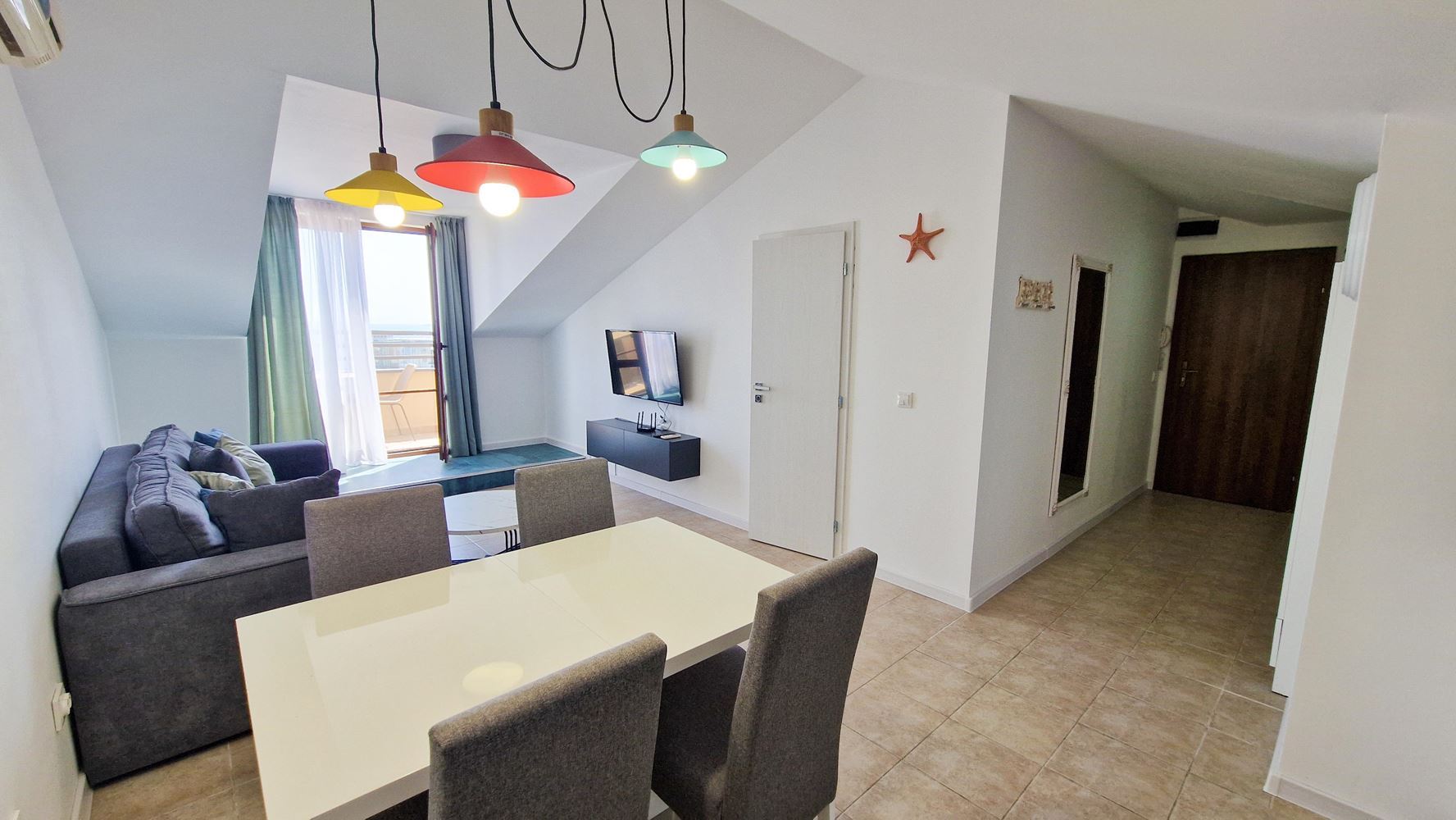 The location is extremely convenient—just a 5-minute walk from the beach and 8 minutes from the famous Marina Dinevi yacht port. There are many shops nearby, about a 7-8 minute walk away, providing easy access to everything you need for your daily life.