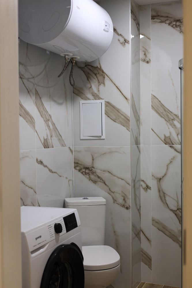 We present for sale a fully furnished studio with an impressive sea view, located in a modern complex in the town of Sveti Vlas, only 100 meters from the shore. The property is ideal both for personal use and as an investment for rental purposes. The apartment has a total area of 40.50 m² and is located on the third floor, easily accessible thanks to the elevator in the building. The functional layout includes a bright open-plan living/sleeping area, a bathroom with toilet, and a cozy balcony offering a view of the sea. The studio is sold fully furnished and equipped with new furniture and electrical appliances – ready for immediate occupancy or renting without any additional investment. The interior is finished in light tones that highlight the natural light and create a sense of space and comfort.