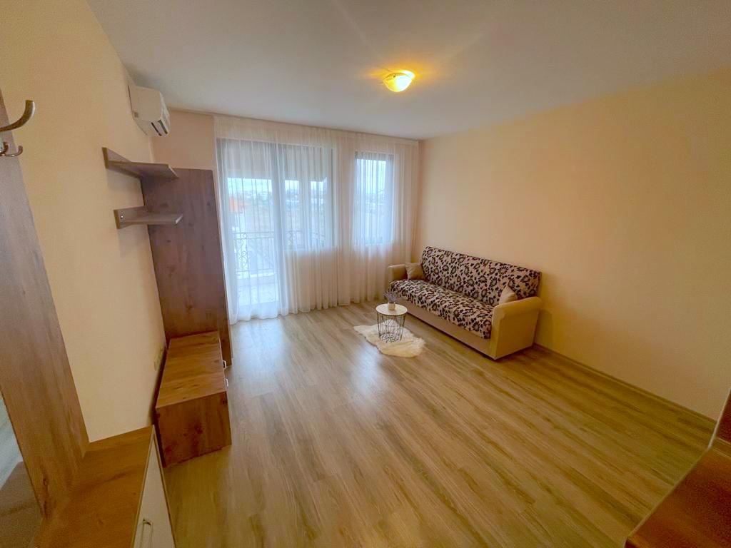 Beautiful studio overlooking the sea, 300 meters from the beach. The 35 m2 apartment is located on the sixth floor and offers a comfortable living space. The apartment is located in a large gated complex, which is located at the junction of the two settlements - Nessebar and Ravda, in one of the most beautiful places on the Black Sea coast. The complex consists of 9 buildings with separate areas, and offers its residents a restaurant, cafe, SPA center, fitness center, stores, seven pools, lots of children's, play and sports grounds, beautiful surroundings. A large free parking area deserves special attention, which is a rarity, especially in the summer season.