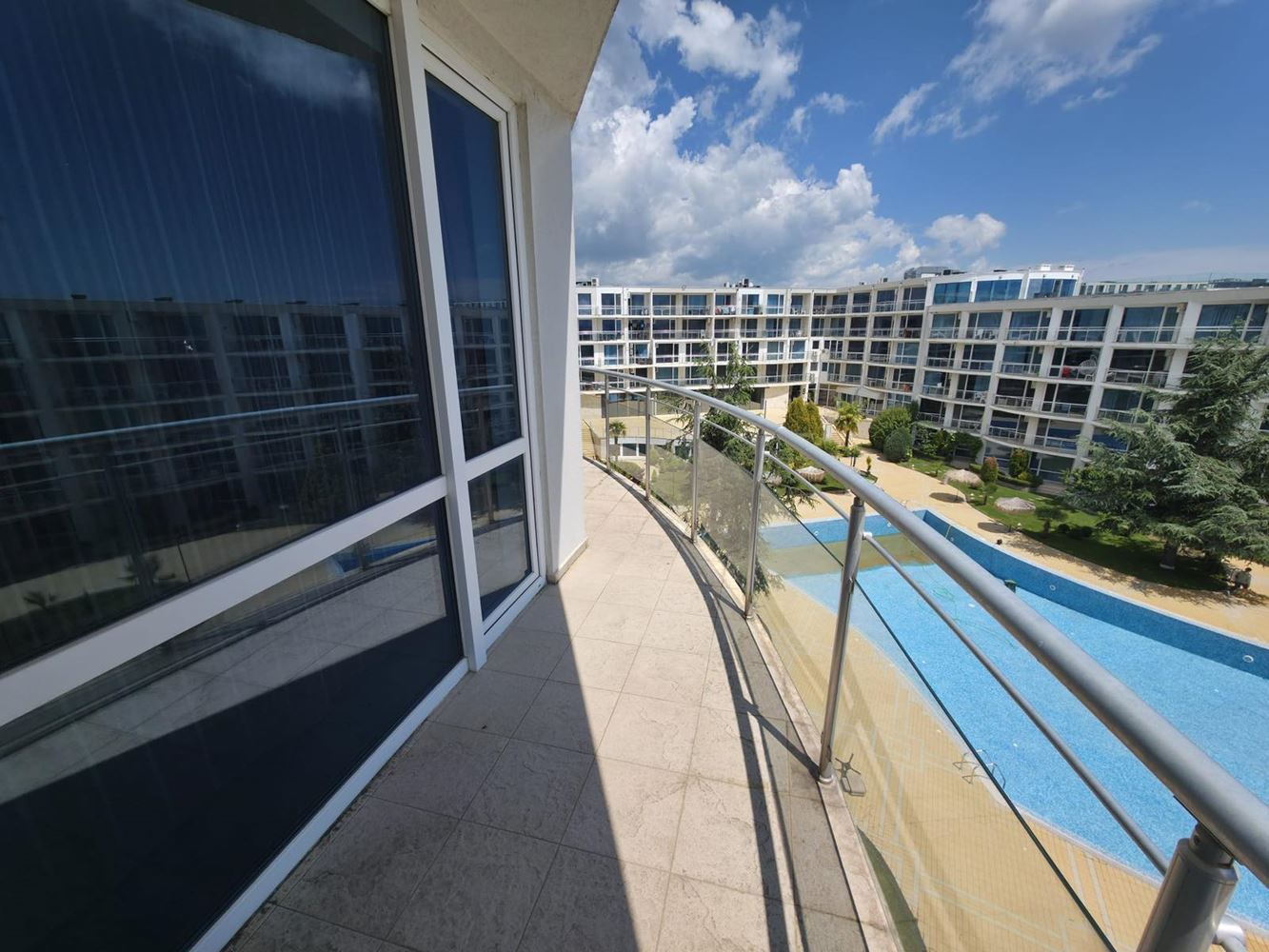 We present to your attention a bright and cozy one-bedroom apartment in the prestigious Sarafovo district, Burgas. The property extends over an area of 70 m2, located on the fifth floor in a modern gated complex. The apartment offers a comfortable layout: functional corridor, spacious bathroom with toilet, bright living room with kitchenette, spacious and comfortable bedroom and a large balcony, opening an exceptional view of the pool and sea.