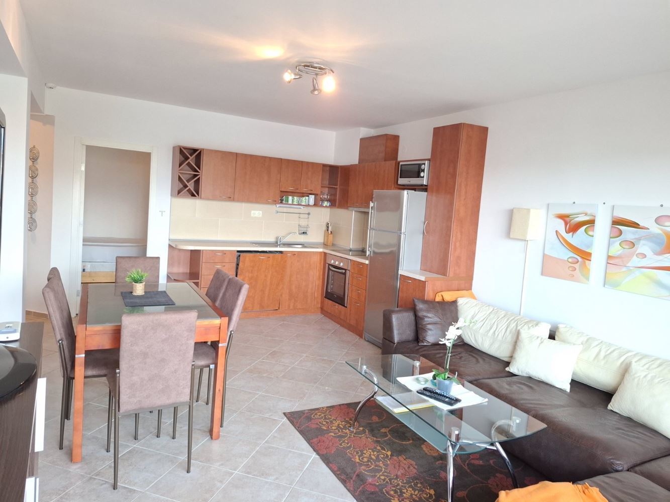 The apartment offers a functional layout: entrance hall, spacious living room with a separate kitchen and dining area, two cozy bedrooms, bathroom with toilet, and a large terrace – an ideal spot for morning coffee or relaxing outdoors. The apartment is sold fully furnished and equipped, allowing immediate move-in without additional investment.