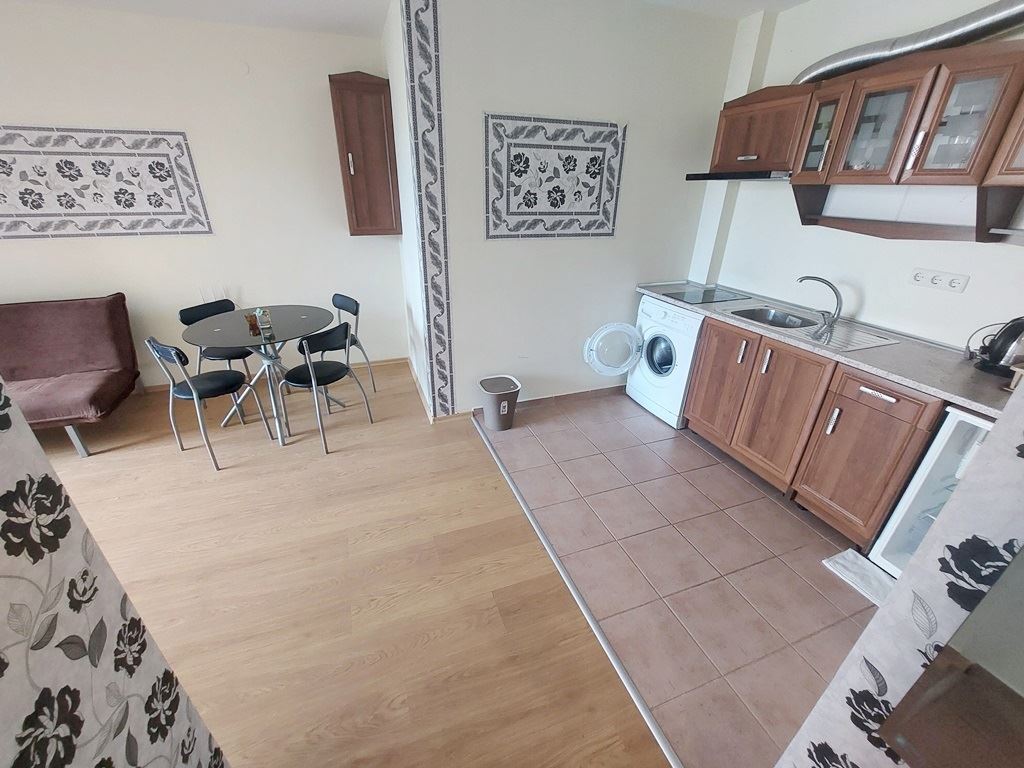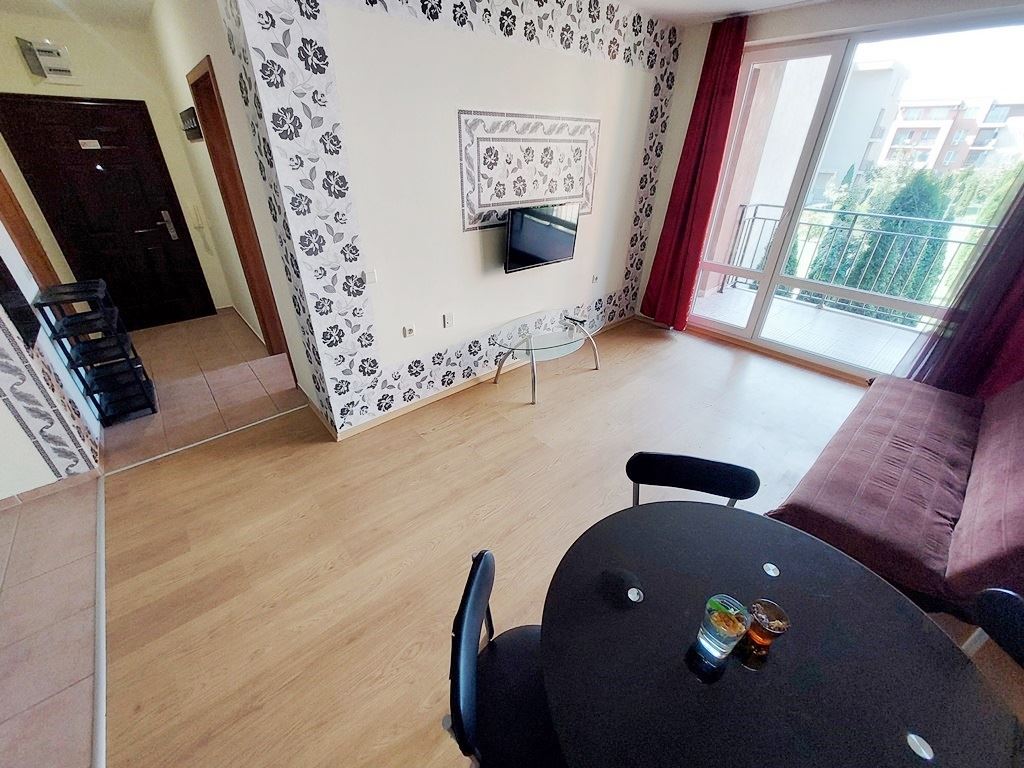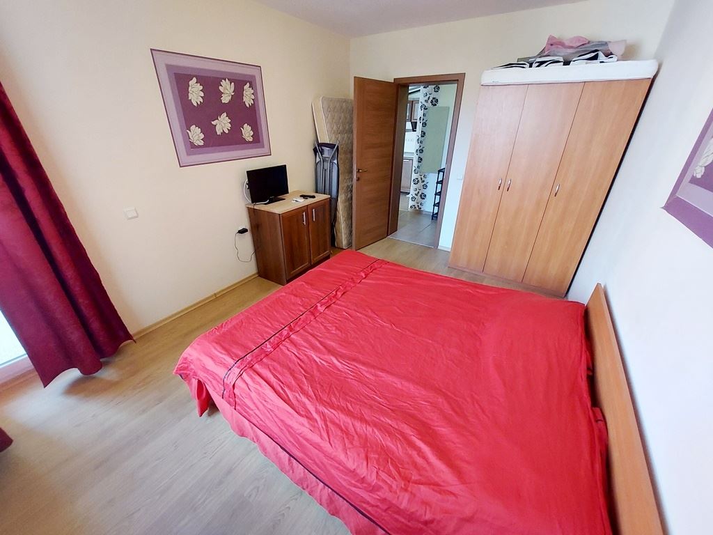 Bright comfortable one-bedroom apartment on the second floor of a large complex with a closed and guarded area. The total area of 65 m2. The complex is located near the biggest Aqua Park in Bulgaria (across the road from the complex). The beautiful beach of Sunny Beach resort is within 10-15 minutes walking distance. Less than 500 meters from the center of the resort. The complex is the most "green" complex in the resort of Sunny Beach. Infrastructure includes two restaurants with European and Bulgarian cuisine; nine swimming pools for adults and children, with monitoring of the safety of vacationers by lifeguards and free sun beds at the pools, two waterslides, billiards and table tennis, supermarket, stores, playgrounds with swings and slides, outdoor fitness equipment, tennis club, two office-reception (order all kinds of services, tours, etc.) and much more. Classic two-bedroom apartment is offered with furniture and equipment. The complex is designed for year-round residence.
