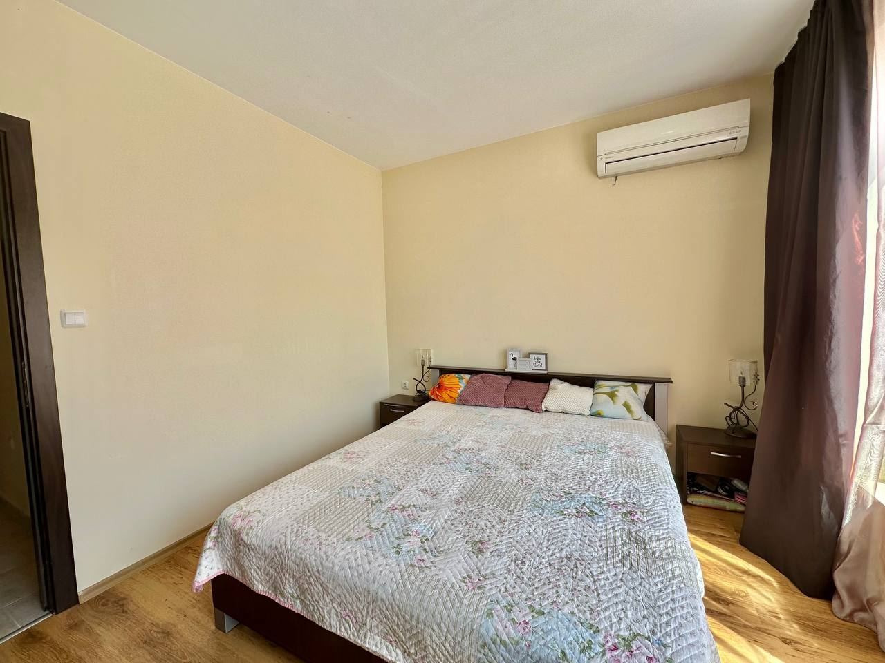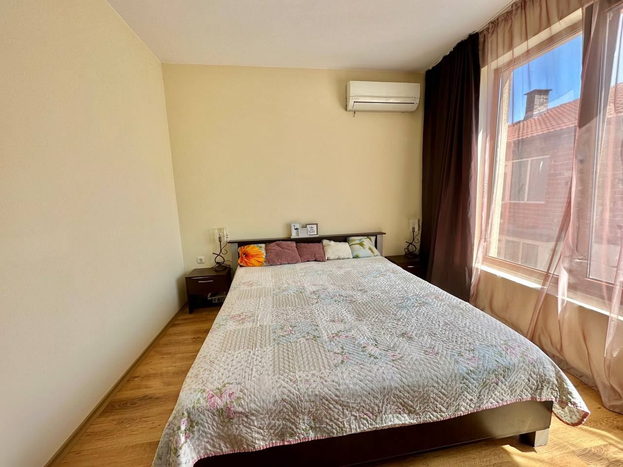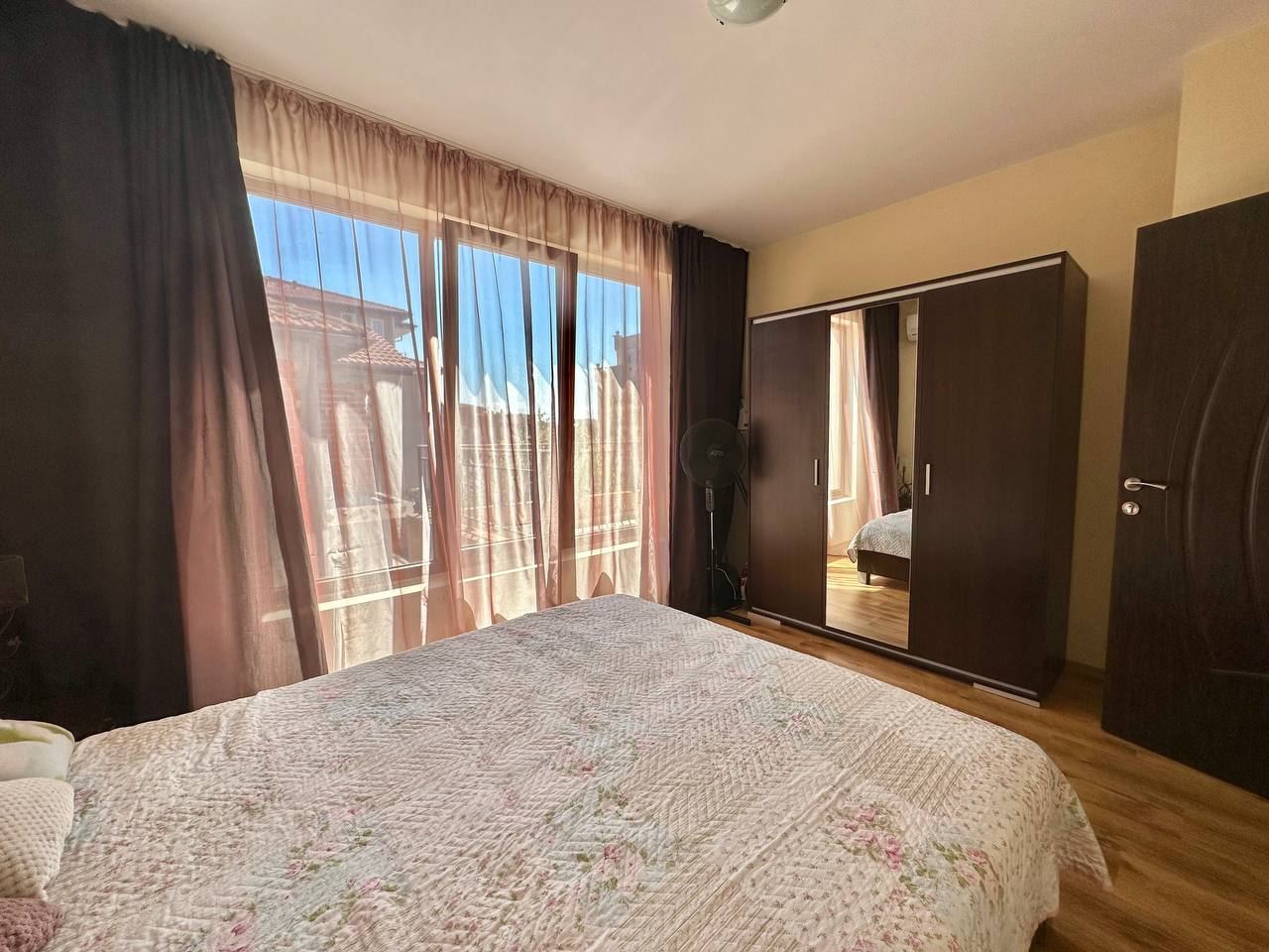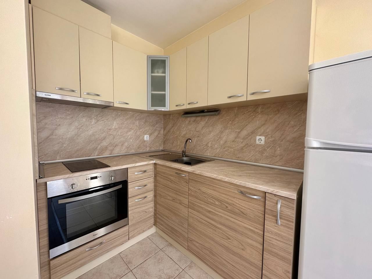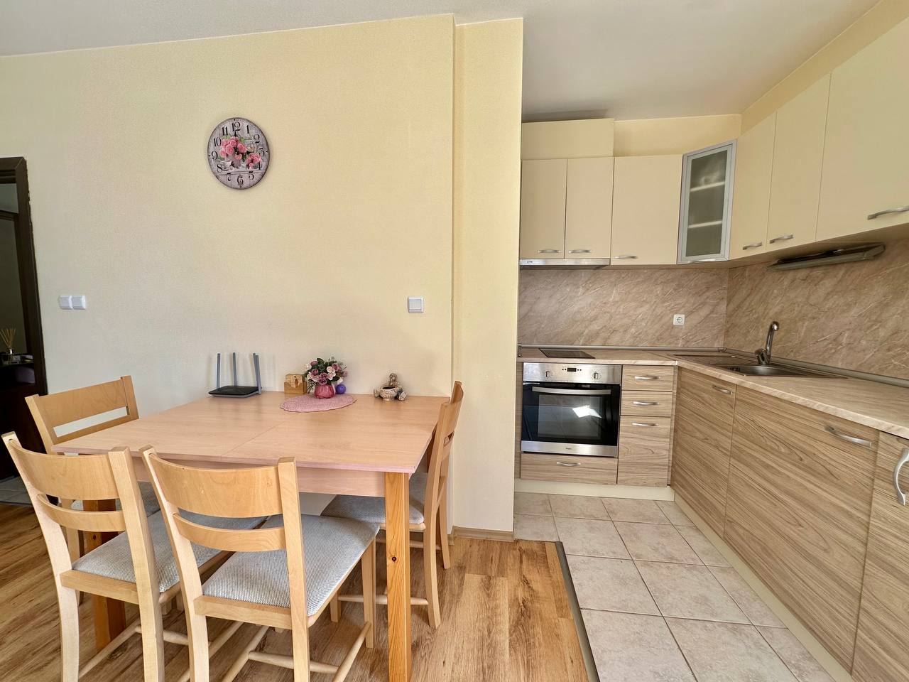 Spacious and bright one bedroom apartment in a residential building in a cozy resort town Ravda. From the house to the beach, as well as to the center and year-round infrastructure, about five minutes walk. The apartment is located on the second floor of the building. Living area is 59 m2. It consists of an entrance hall, living room with kitchenette and dining area, bedroom, bright bathroom with WC and a spacious terrace. The apartment is in very good condition, offered with furniture, appliances and equipment. No fees and service charges! An excellent choice for permanent residence and vacation.