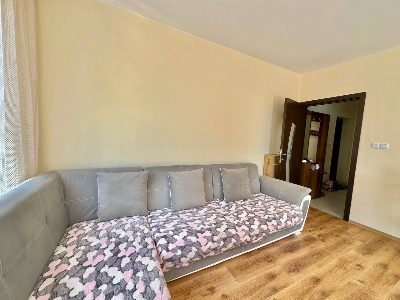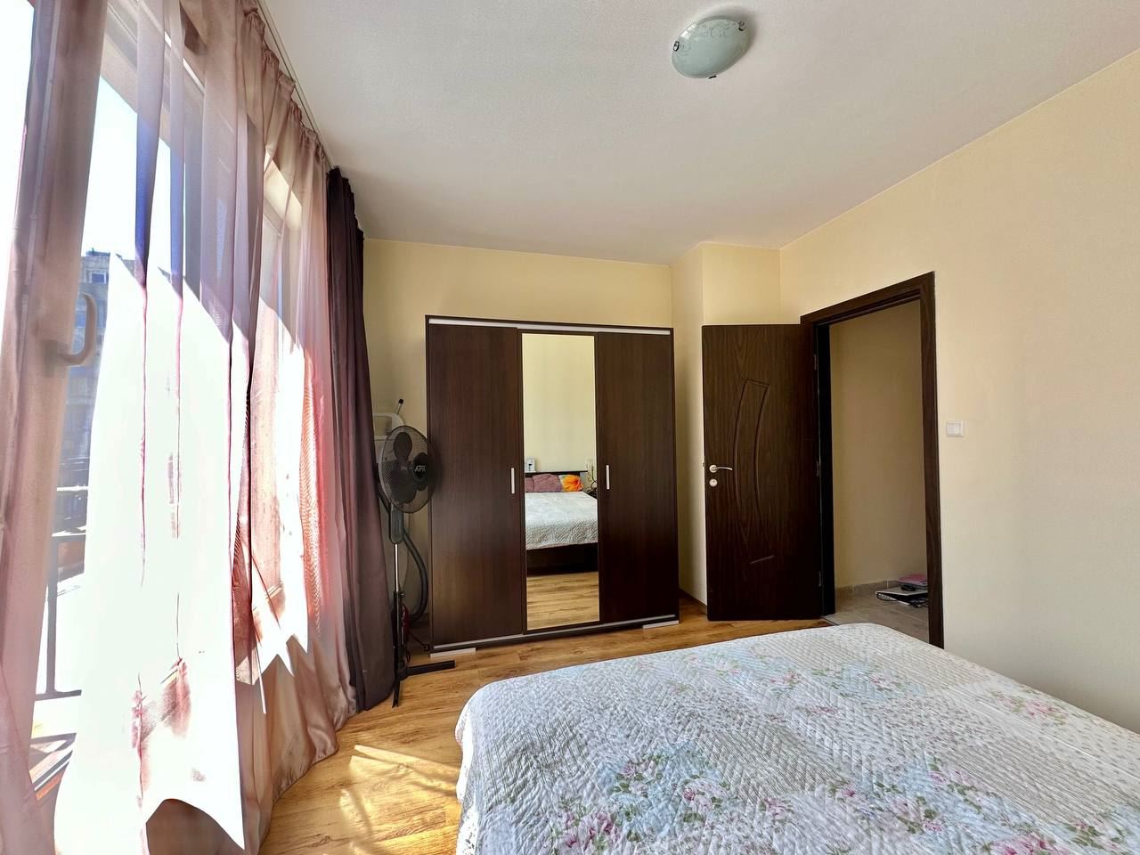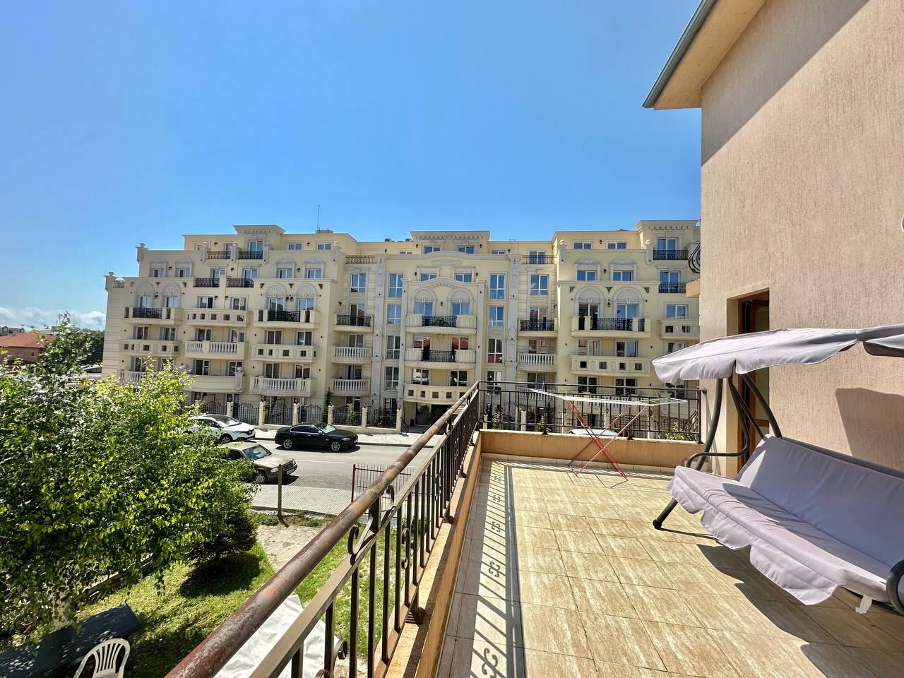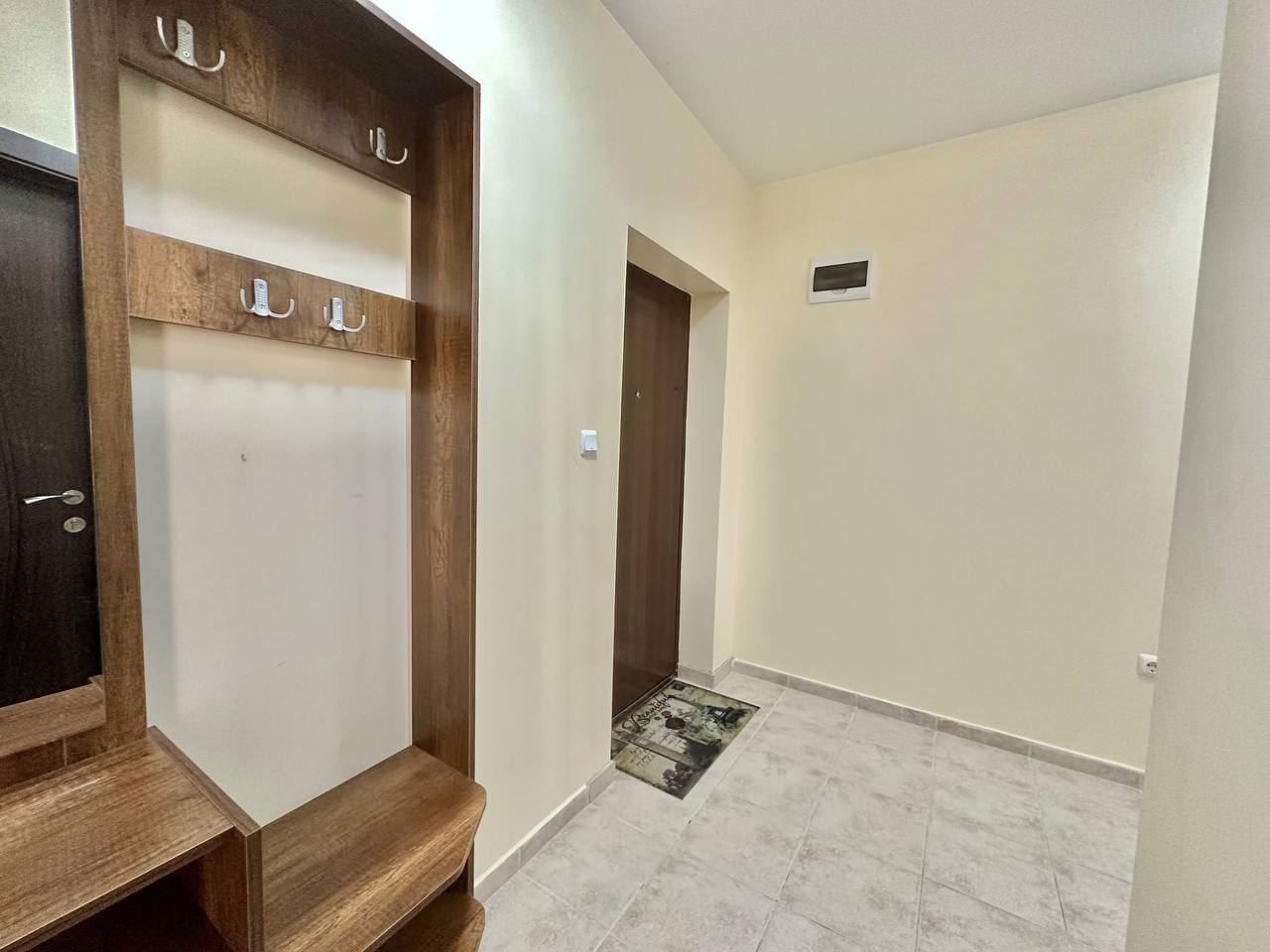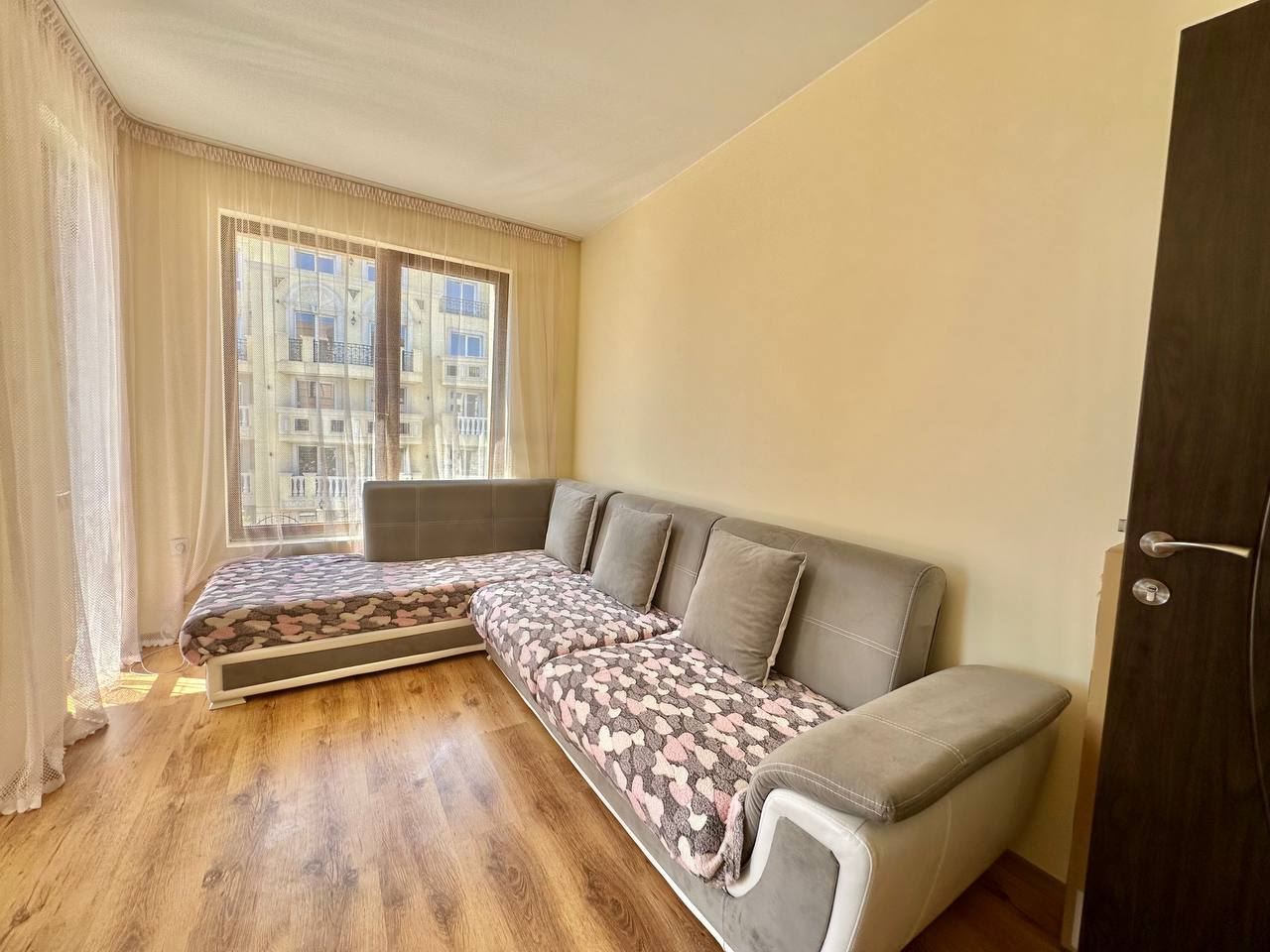 Spacious and bright one bedroom apartment in a residential building in a cozy resort town Ravda. From the house to the beach, as well as to the center and year-round infrastructure, about five minutes walk. The apartment is located on the second floor of the building. Living area is 59 m2. It consists of an entrance hall, living room with kitchenette and dining area, bedroom, bright bathroom with WC and a spacious terrace. The apartment is in very good condition, offered with furniture, appliances and equipment. No fees and service charges! An excellent choice for permanent residence and vacation.