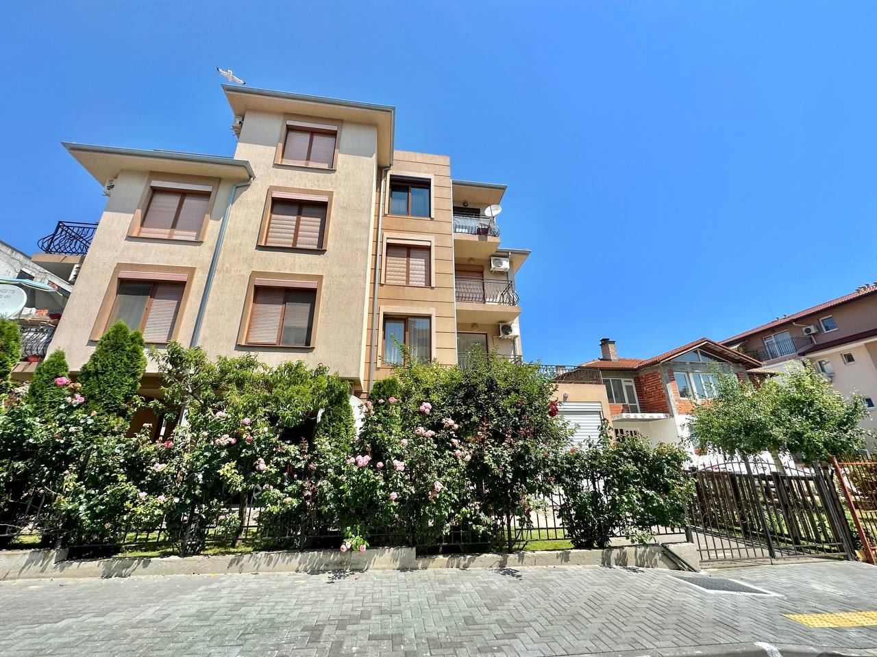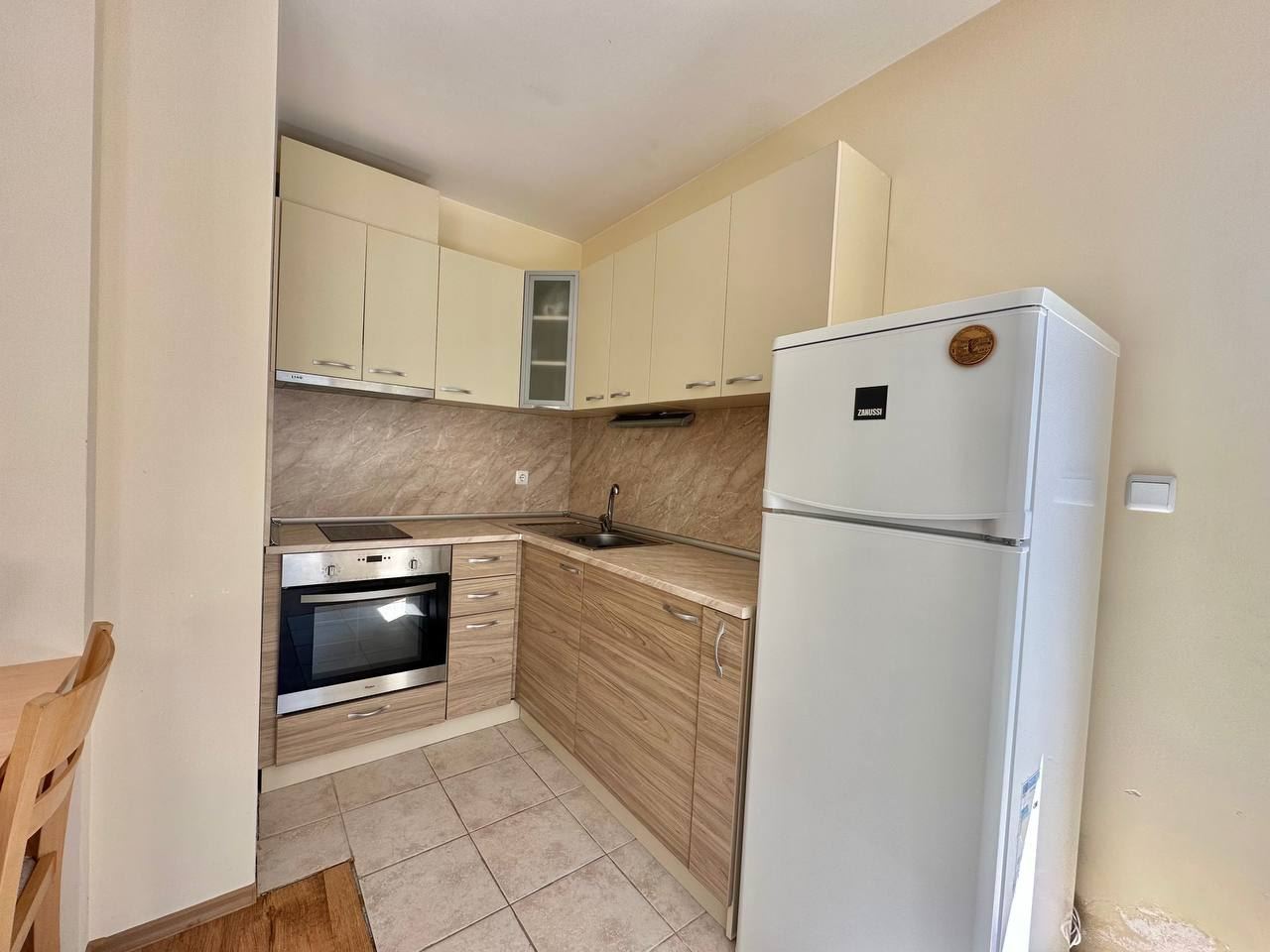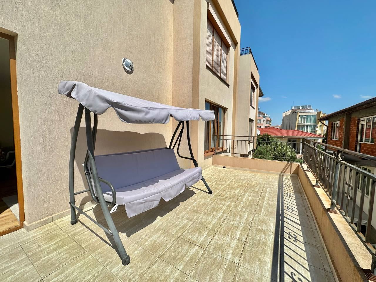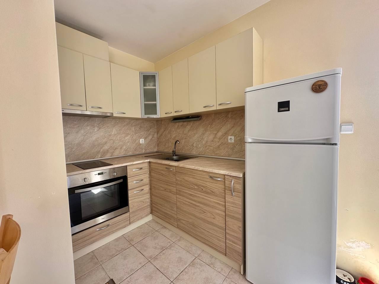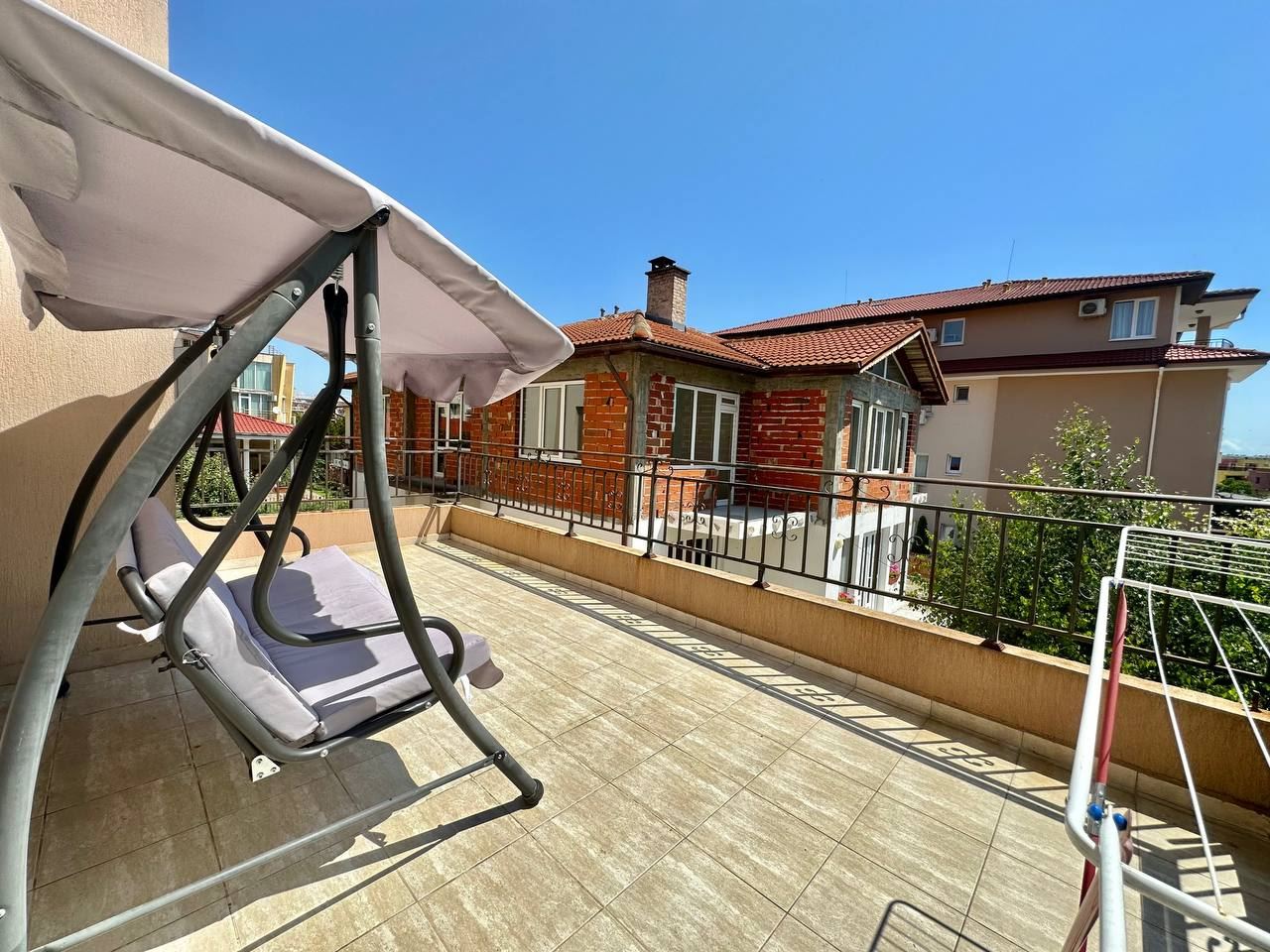 Spacious and bright one bedroom apartment in a residential building in a cozy resort town Ravda. From the house to the beach, as well as to the center and year-round infrastructure, about five minutes walk. The apartment is located on the second floor of the building. Living area is 59 m2. It consists of an entrance hall, living room with kitchenette and dining area, bedroom, bright bathroom with WC and a spacious terrace. The apartment is in very good condition, offered with furniture, appliances and equipment. No fees and service charges! An excellent choice for permanent residence and vacation.