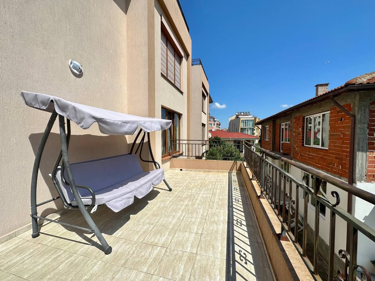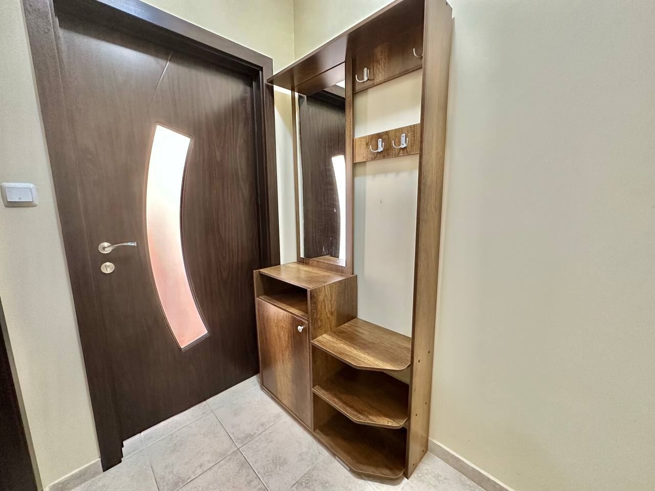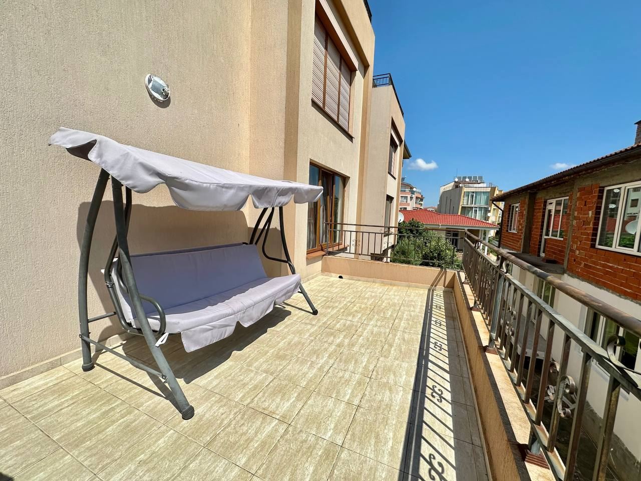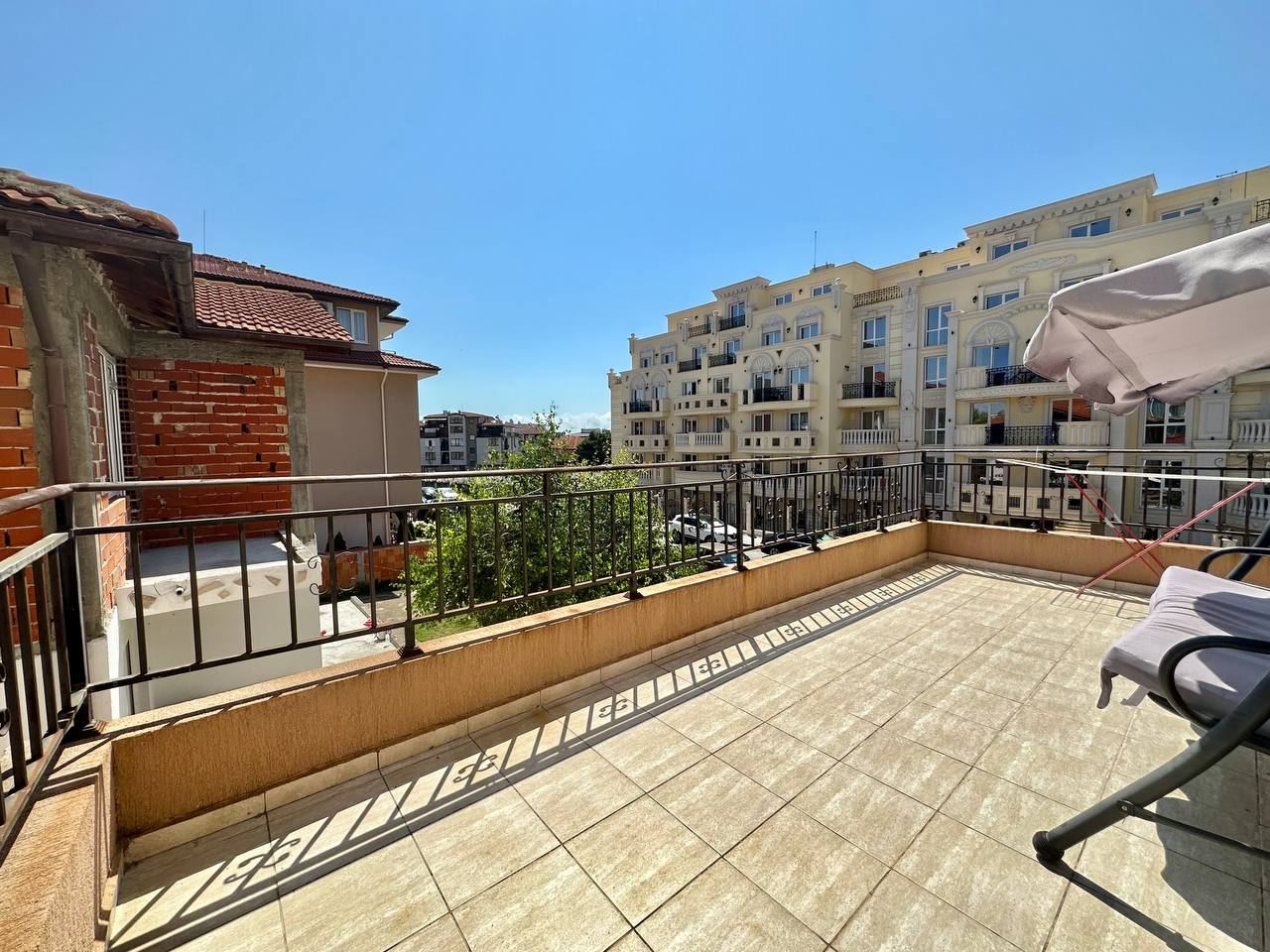 Spacious and bright one bedroom apartment in a residential building in a cozy resort town Ravda. From the house to the beach, as well as to the center and year-round infrastructure, about five minutes walk. The apartment is located on the second floor of the building. Living area is 59 m2. It consists of an entrance hall, living room with kitchenette and dining area, bedroom, bright bathroom with WC and a spacious terrace. The apartment is in very good condition, offered with furniture, appliances and equipment. No fees and service charges! An excellent choice for permanent residence and vacation.