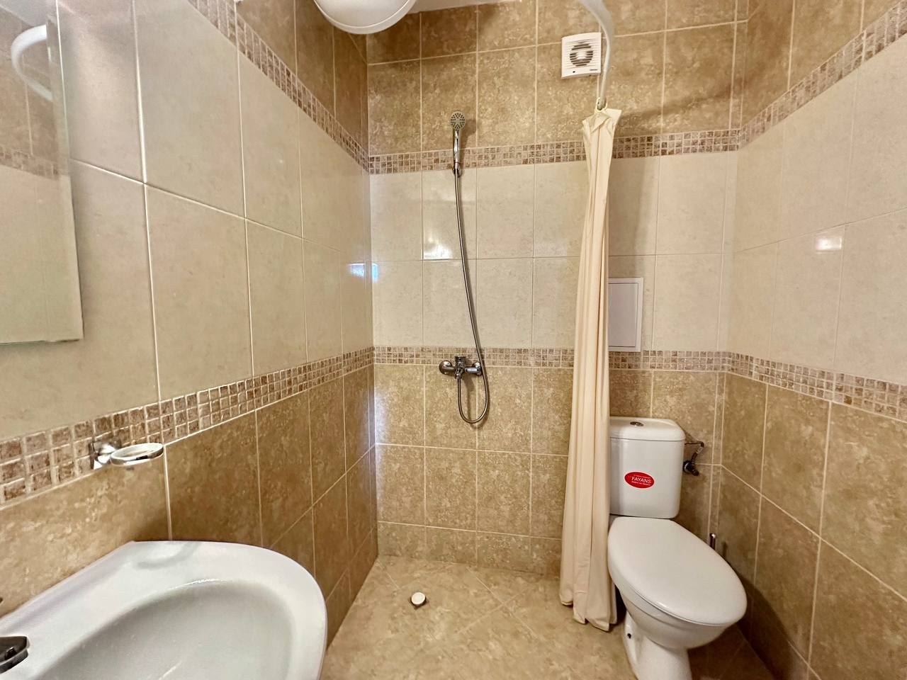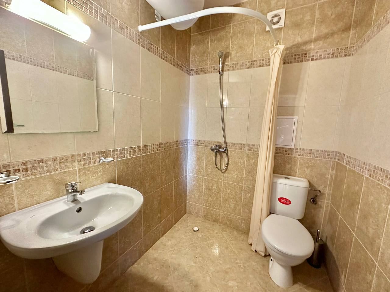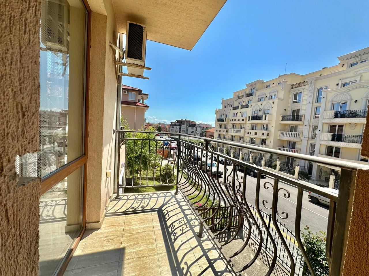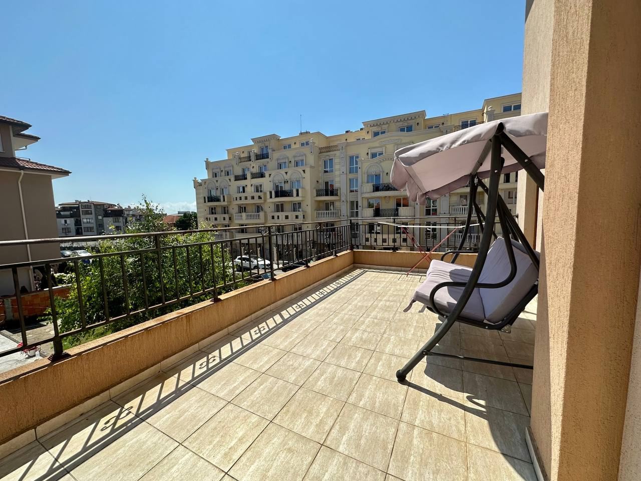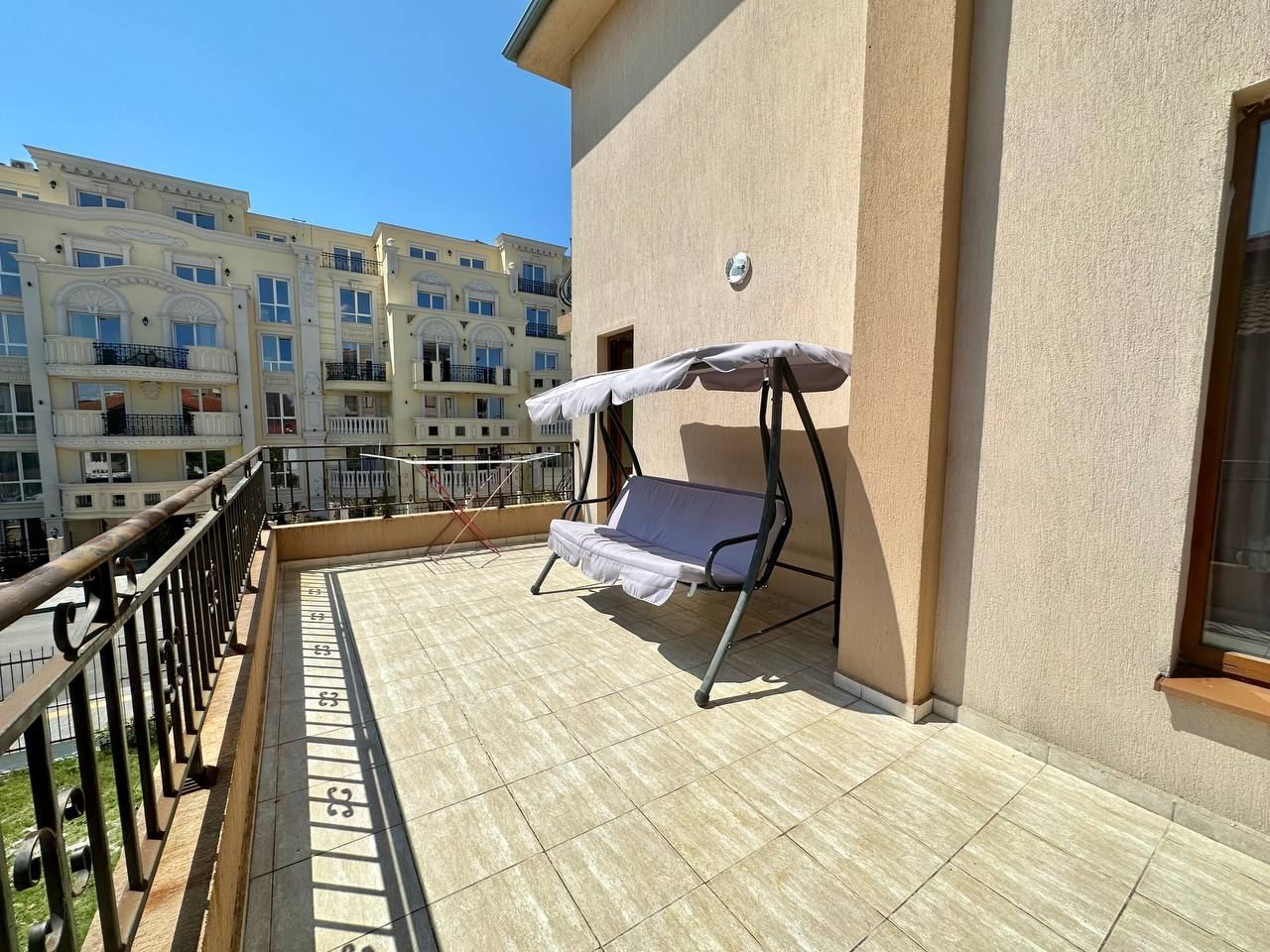 Spacious and bright one bedroom apartment in a residential building in a cozy resort town Ravda. From the house to the beach, as well as to the center and year-round infrastructure, about five minutes walk. The apartment is located on the second floor of the building. Living area is 59 m2. It consists of an entrance hall, living room with kitchenette and dining area, bedroom, bright bathroom with WC and a spacious terrace. The apartment is in very good condition, offered with furniture, appliances and equipment. No fees and service charges! An excellent choice for permanent residence and vacation.