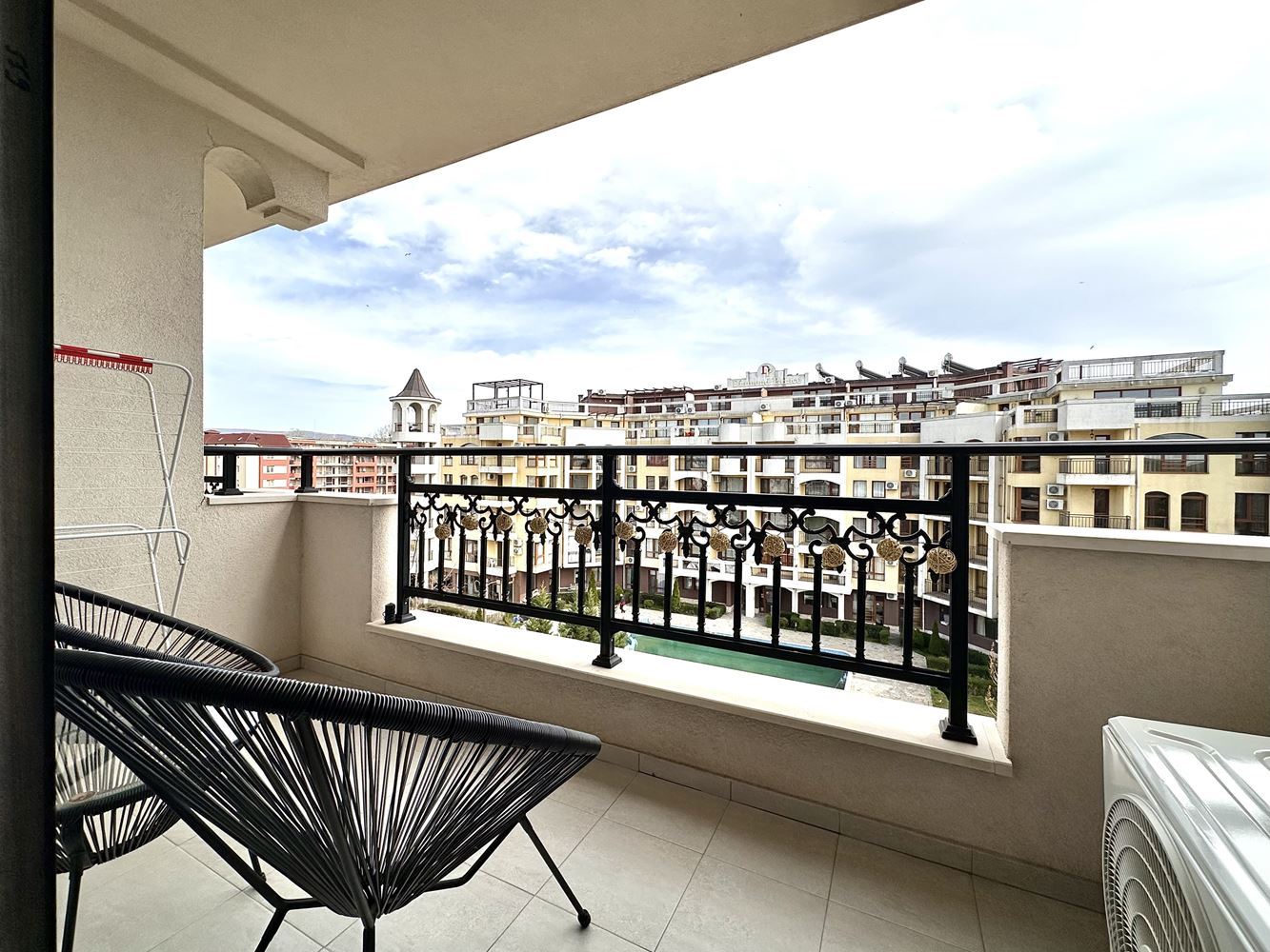 For sale is a charming studio in a beautifully built complex, located in the southern part of the popular resort complex Sunny Beach. This modern property is located on the fifth floor, offering its occupants spectacular views and a comfortable living space with a total area of 39,26 m². The studio includes a bright and spacious living area combining comfort and style. The kitchen corner is functional and fully equipped. The adjoining balcony offers an excellent opportunity to relax with a cup of coffee in the morning or simply enjoy the fresh sea air. The bathroom is modern and made with quality materials.