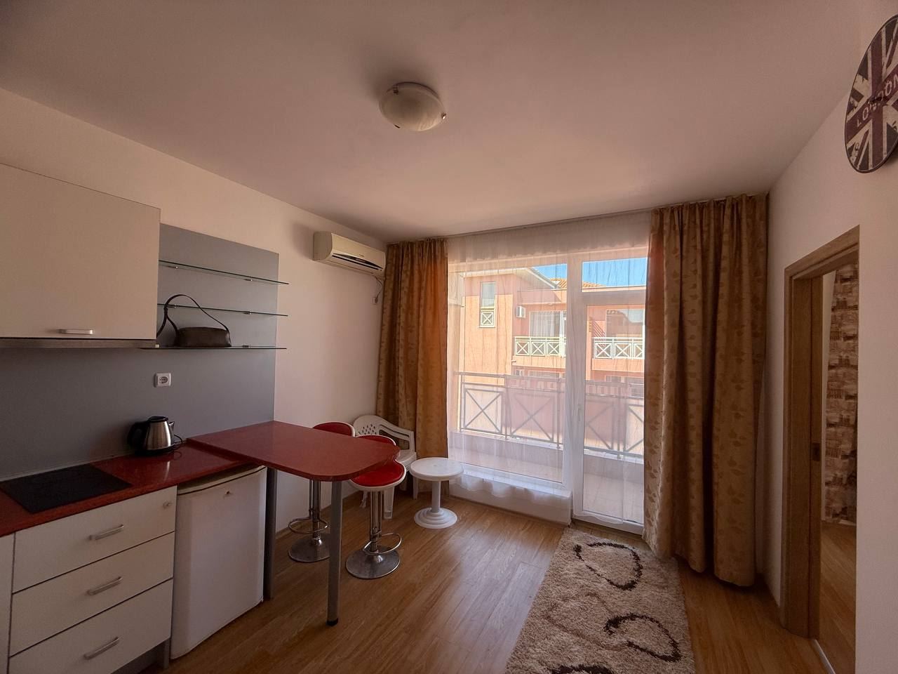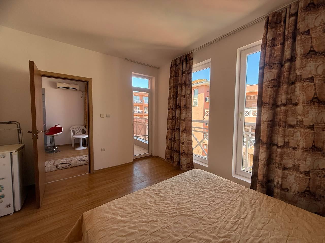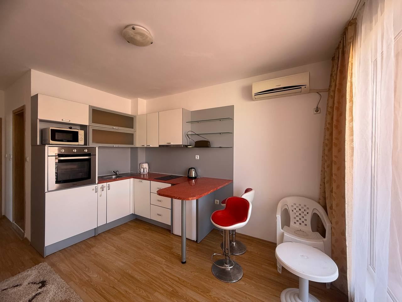 We present to your attention a modern two bedroom apartment located in a prestigious gated complex in the popular resort of Sunny Beach. With a total area of 68 m2, this apartment is a great option for families looking for coziness near the sea. The apartment consists of three functional rooms - a spacious living area, two cozy bedrooms and a modern equipped bathroom. For the convenience of the residents, there are two balconies that offer pleasant views of the surrounding nature and great conditions for outdoor relaxation.