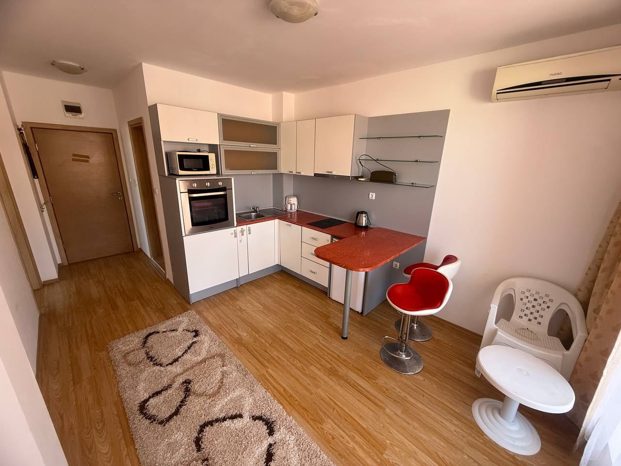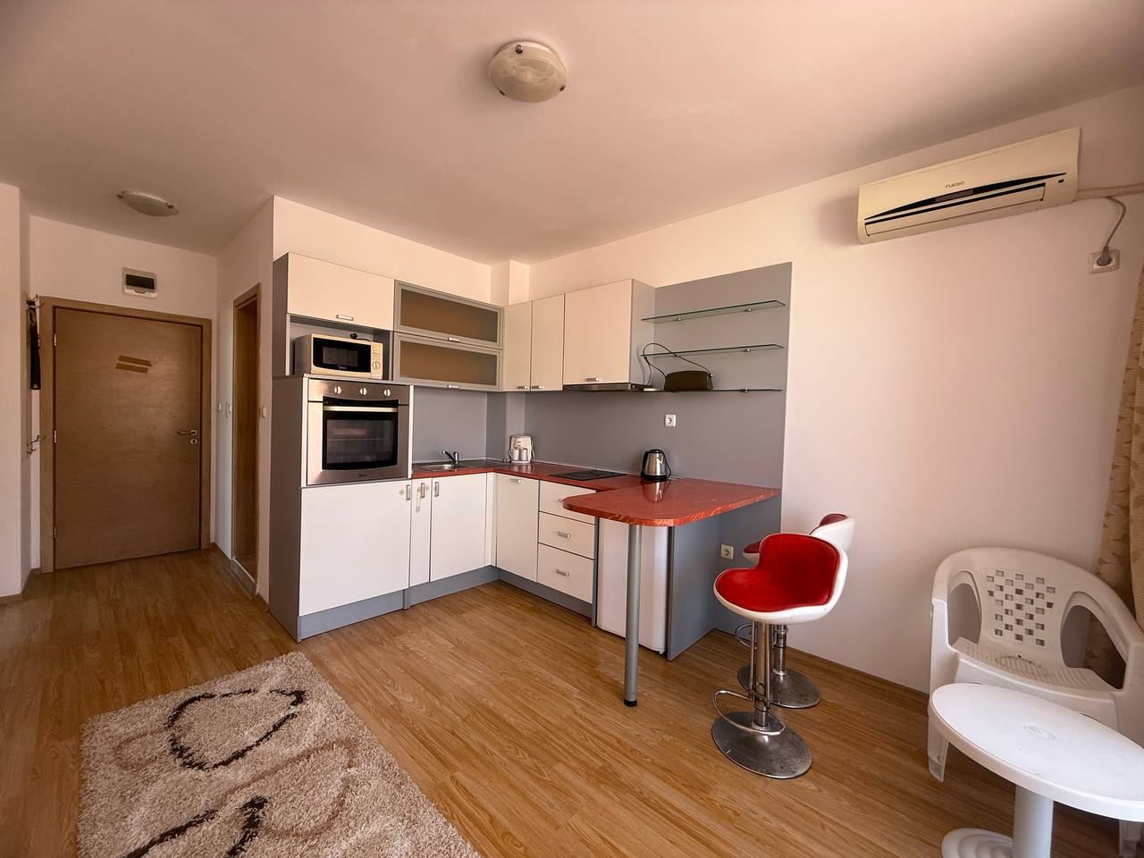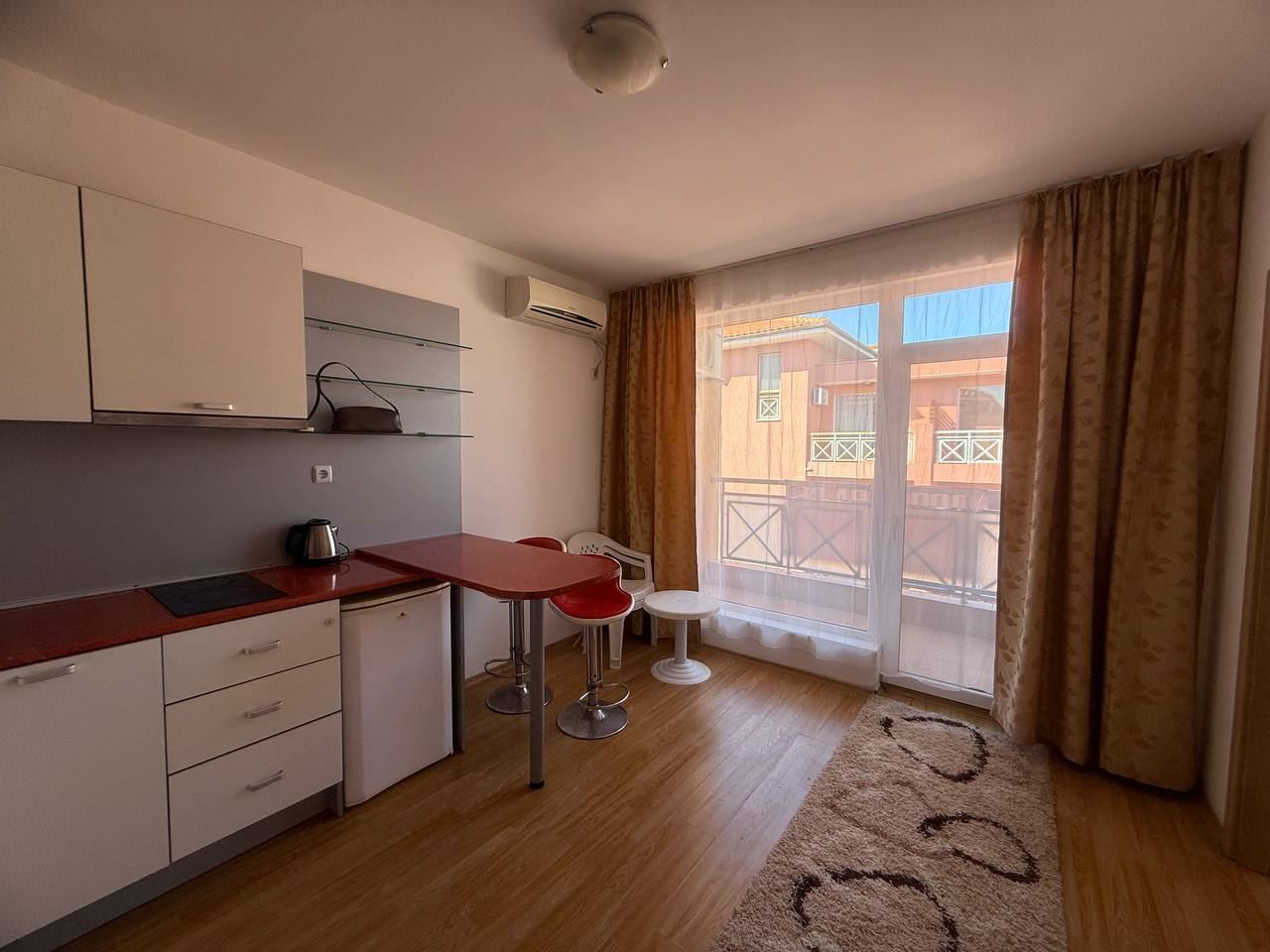 We present to your attention a modern two bedroom apartment located in a prestigious gated complex in the popular resort of Sunny Beach. With a total area of 68 m2, this apartment is a great option for families looking for coziness near the sea. The apartment consists of three functional rooms - a spacious living area, two cozy bedrooms and a modern equipped bathroom. For the convenience of the residents, there are two balconies that offer pleasant views of the surrounding nature and great conditions for outdoor relaxation.