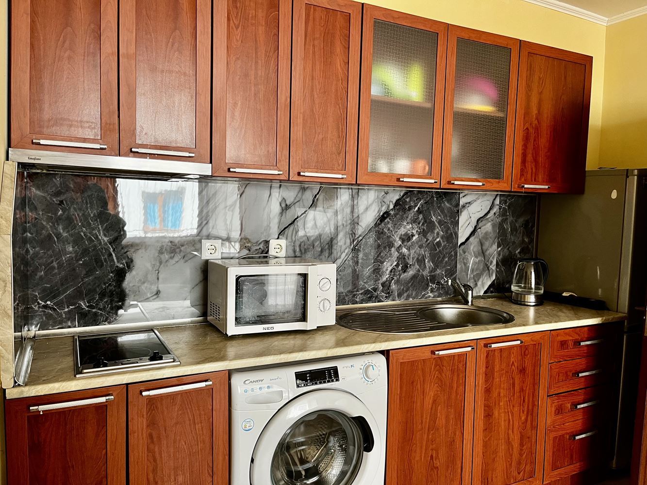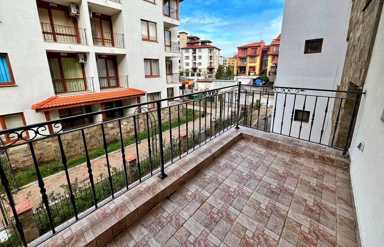 Comfortable and cozy two-bedroom apartment in a landscaped complex located in a new area between Ravda and Nessebar. This spacious apartment is located on the second floor and offers an area of 90 m2. It consists of a spacious living room with kitchen and dining area, a corridor, two cozy bedrooms, two equipped bathrooms and a balcony overlooking the courtyard.