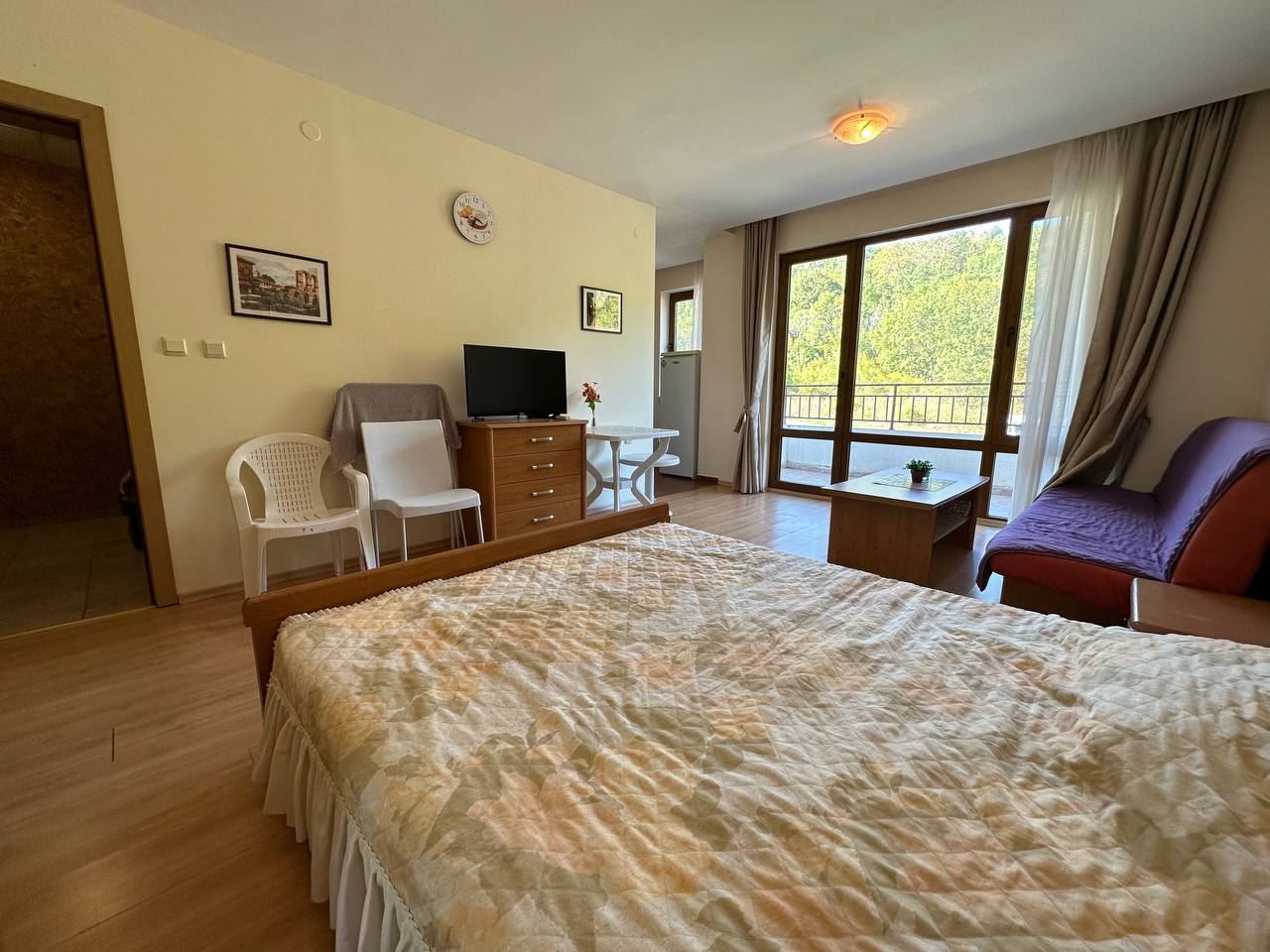 We present to you an opportunity for investment in a comfortable and stylish property - a large studio located in the prestigious resort of Elenite. This spacious studio with an area of 53m2 offers a high quality of life combined with priceless sea views and direct access to the beach, as it is located on the sea front. The property is located on the third floor, with an elevator for your convenience. The studio consists of one spacious room which is cleverly divided into functional areas for sleeping, cooking and relaxing. The magic of the sea breeze can be felt from your private balcony where you can enjoy your morning coffee or evening sunsets.