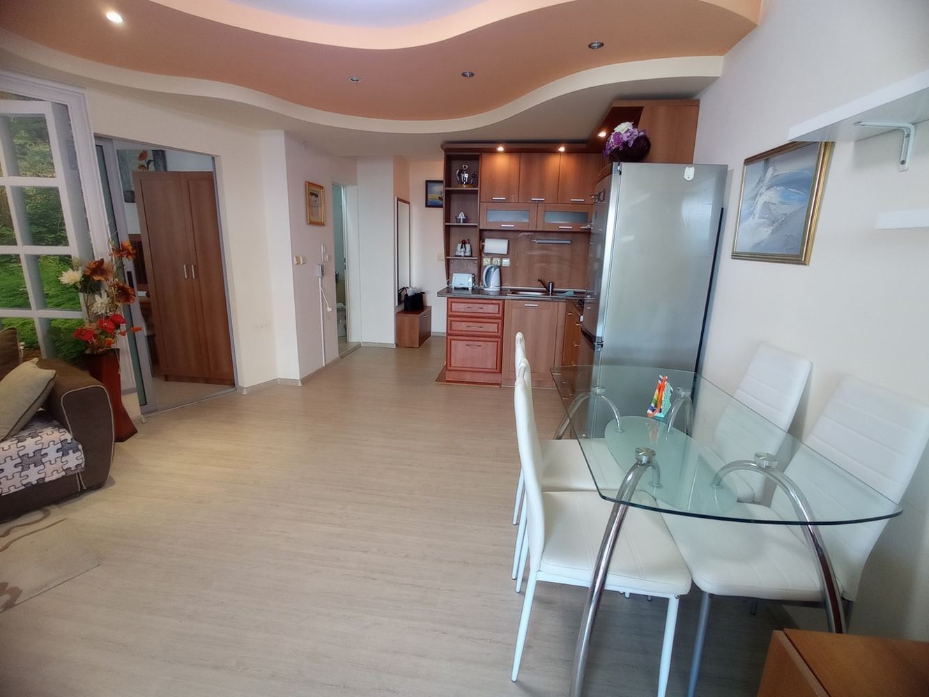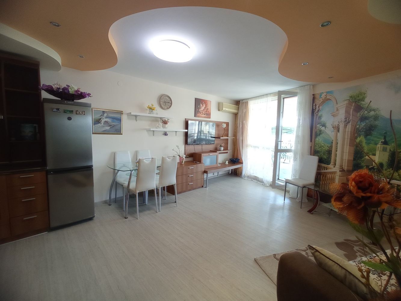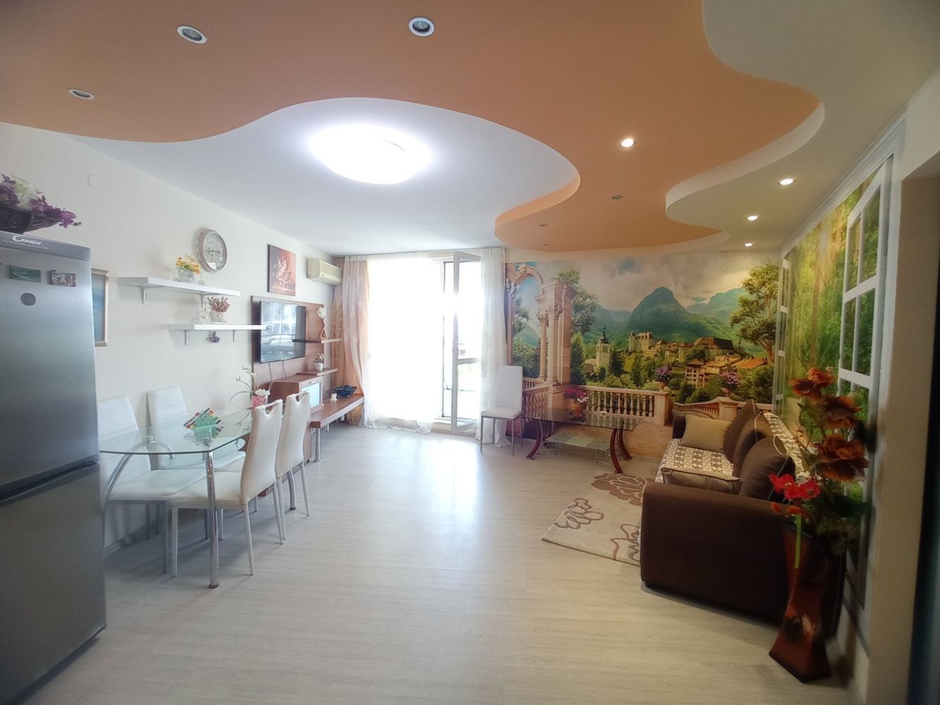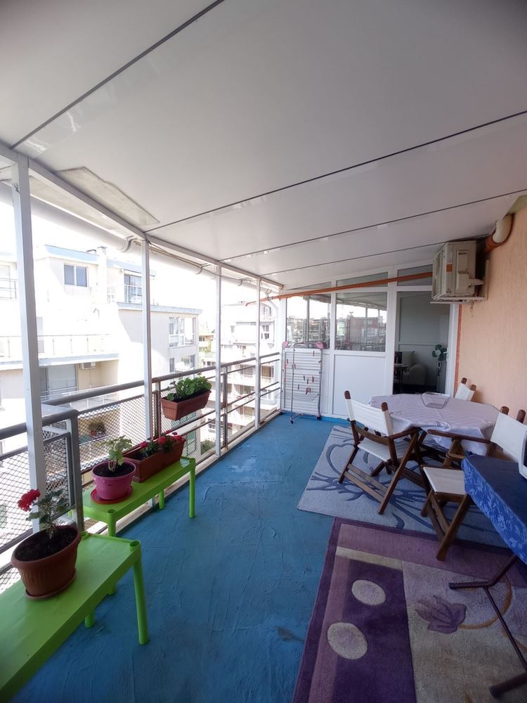 Huge one-bedroom apartment of 94 m2 on the fifth floor of a block of flats 50 metres from the sea with low maintenance fees for the common parts. The flat consists of an entrance hall, spacious living room with kitchen area, bedroom, bathroom with toilet, large terrace overlooking the city. The comfortable flat is fully furnished and equipped with the necessary appliances. All urban and resort infrastructure, which provides comfortable living and recreation, is within walking distance. All year round accommodation is possible.