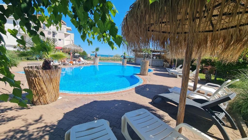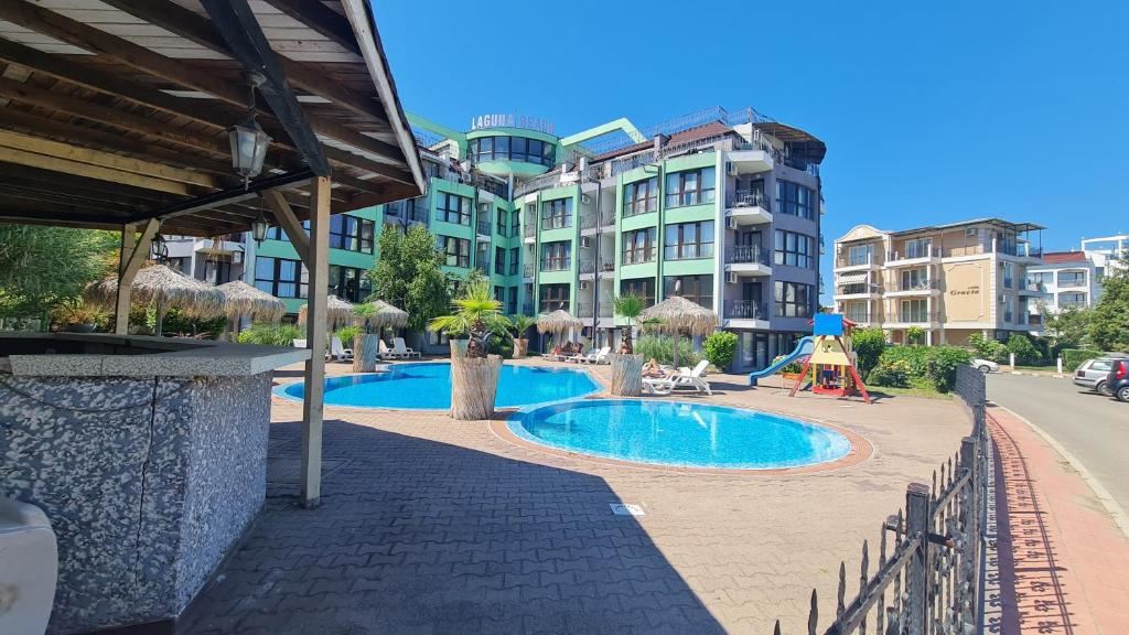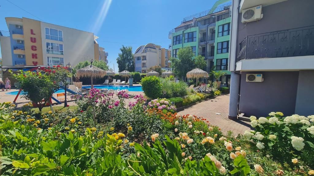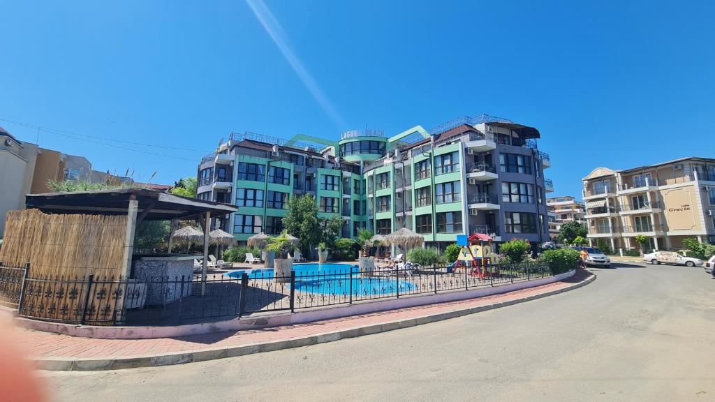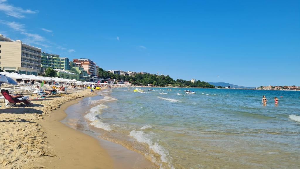 This cozy one bedroom apartment on the first line just 50 meters from the sea in the resort village of Ravda offers great opportunities for comfortable living or relaxation. With a total area of 40,50 square meters, this apartment is ideal for a couple, a young family or for retirement living. Its location on the parterre floor provides easy access to the swimming pool, making it ideal for those who appreciate relaxing by the water. This apartment is being sold fully furnished, which means you don't need to worry about buying furniture and equipment. The complex has a swimming pool and a reception desk. The presence of a permanent security guard ensures your safety and peace of mind. The location just 50 meters from the sea means that you can enjoy easy access to the beach and all the joys of a seaside vacation.